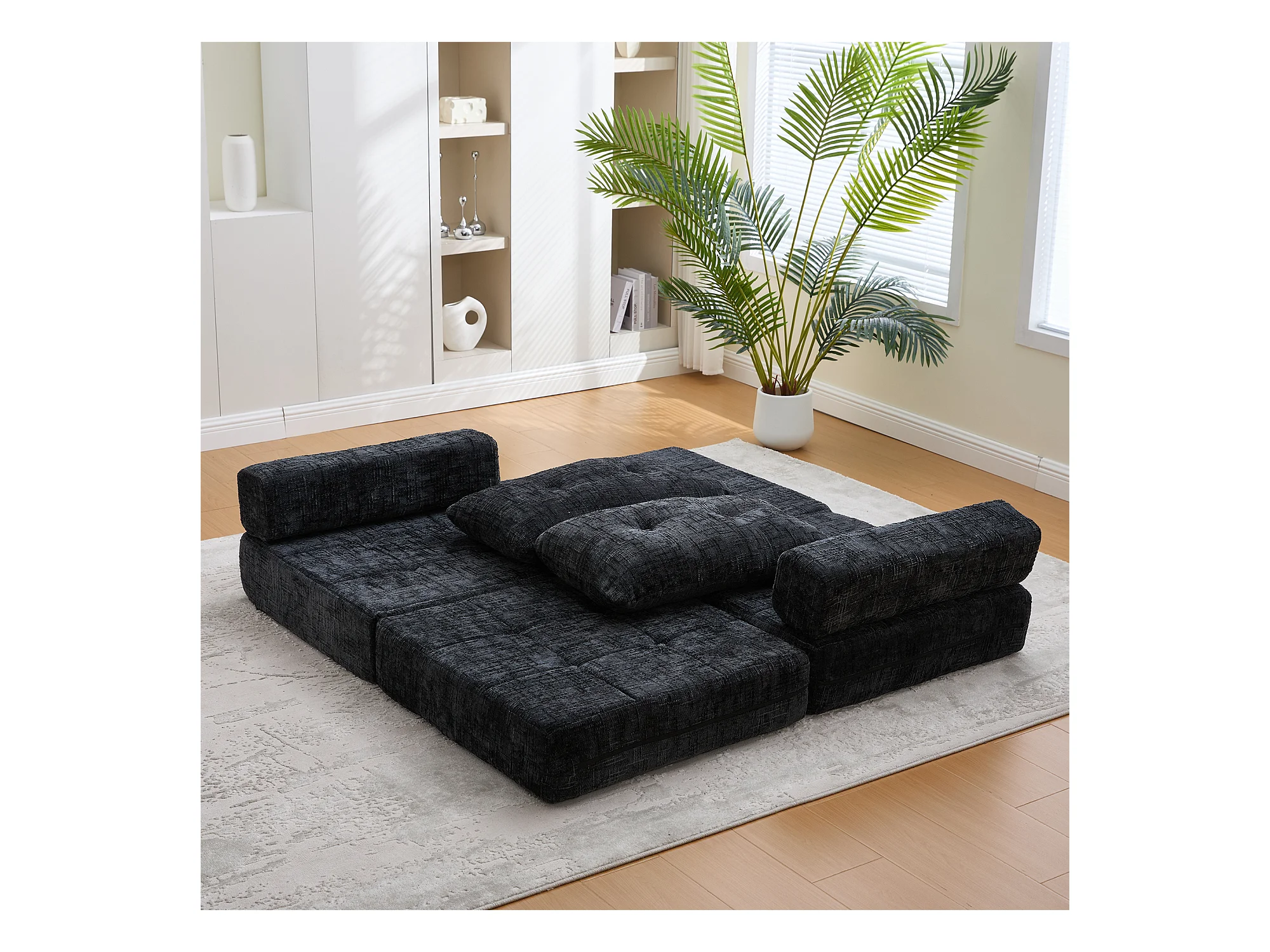 Canapé 1 place noir - Canapé pliant avec dossier et coussins - chenille