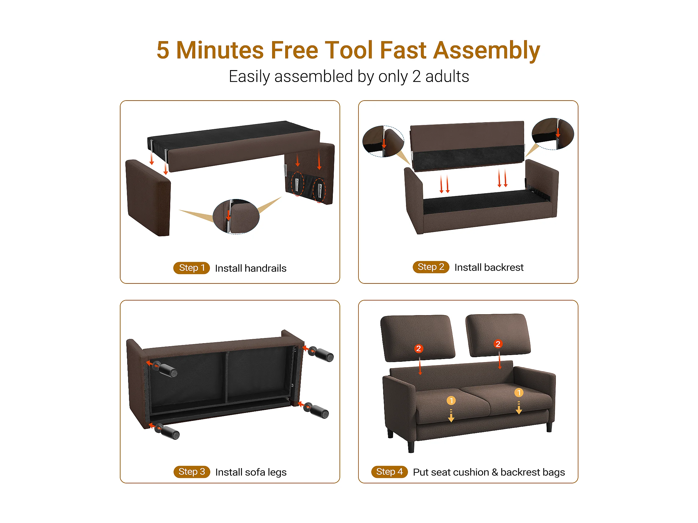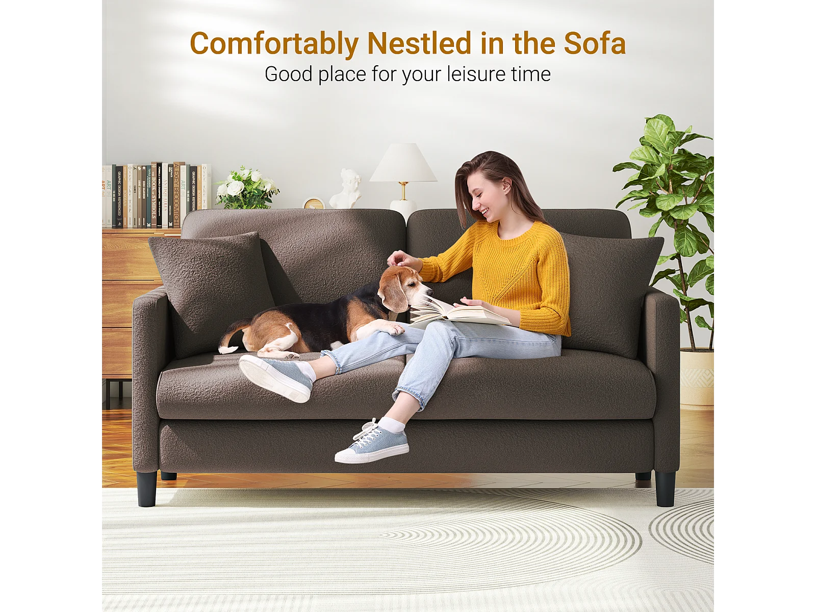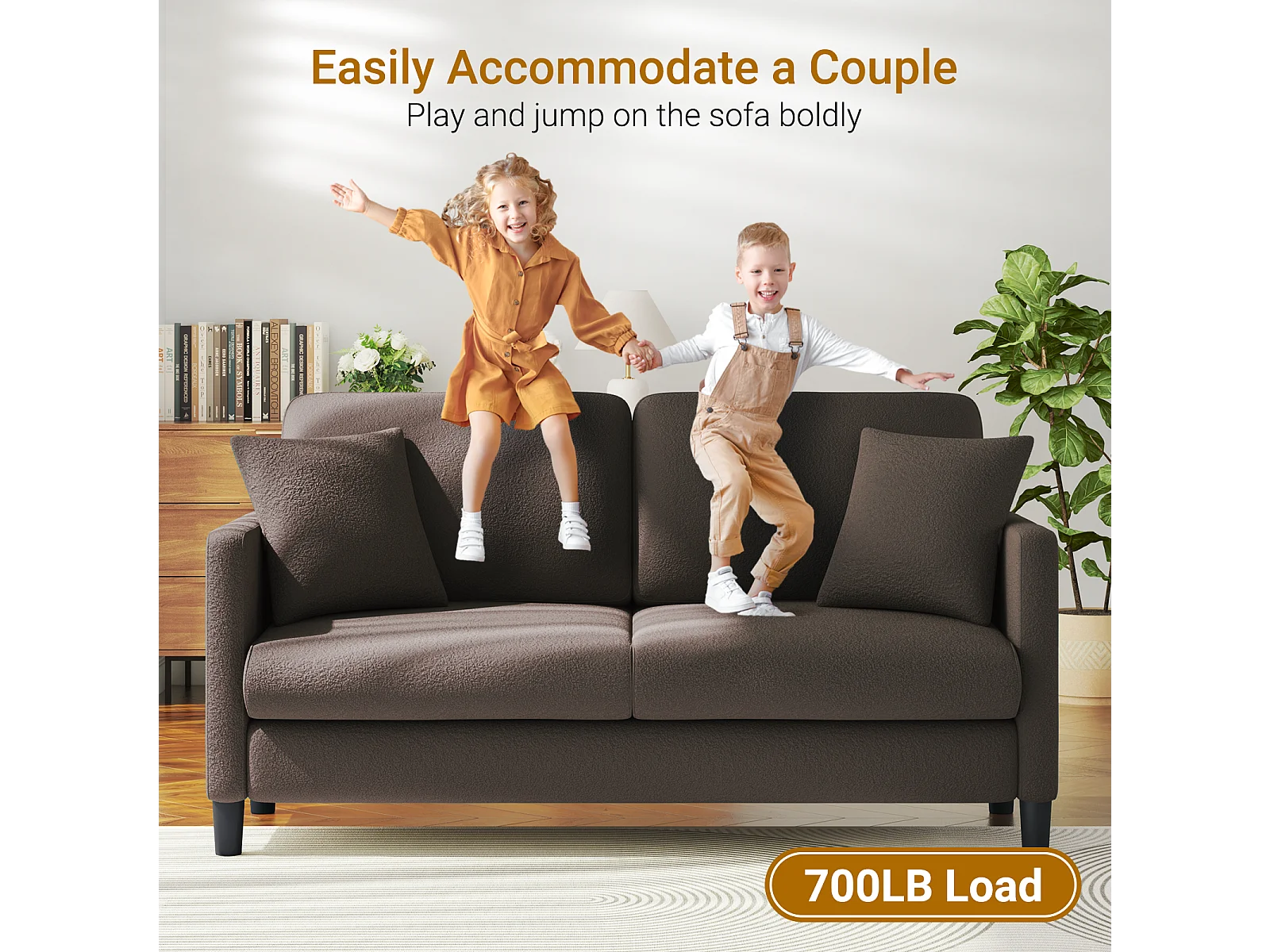 Canapé 2/3 Places en Velours Teddy,Canapé Droit Confort en Bois Massif,Loveseat avec Accoudoirs,165x78x89cm,Marron
