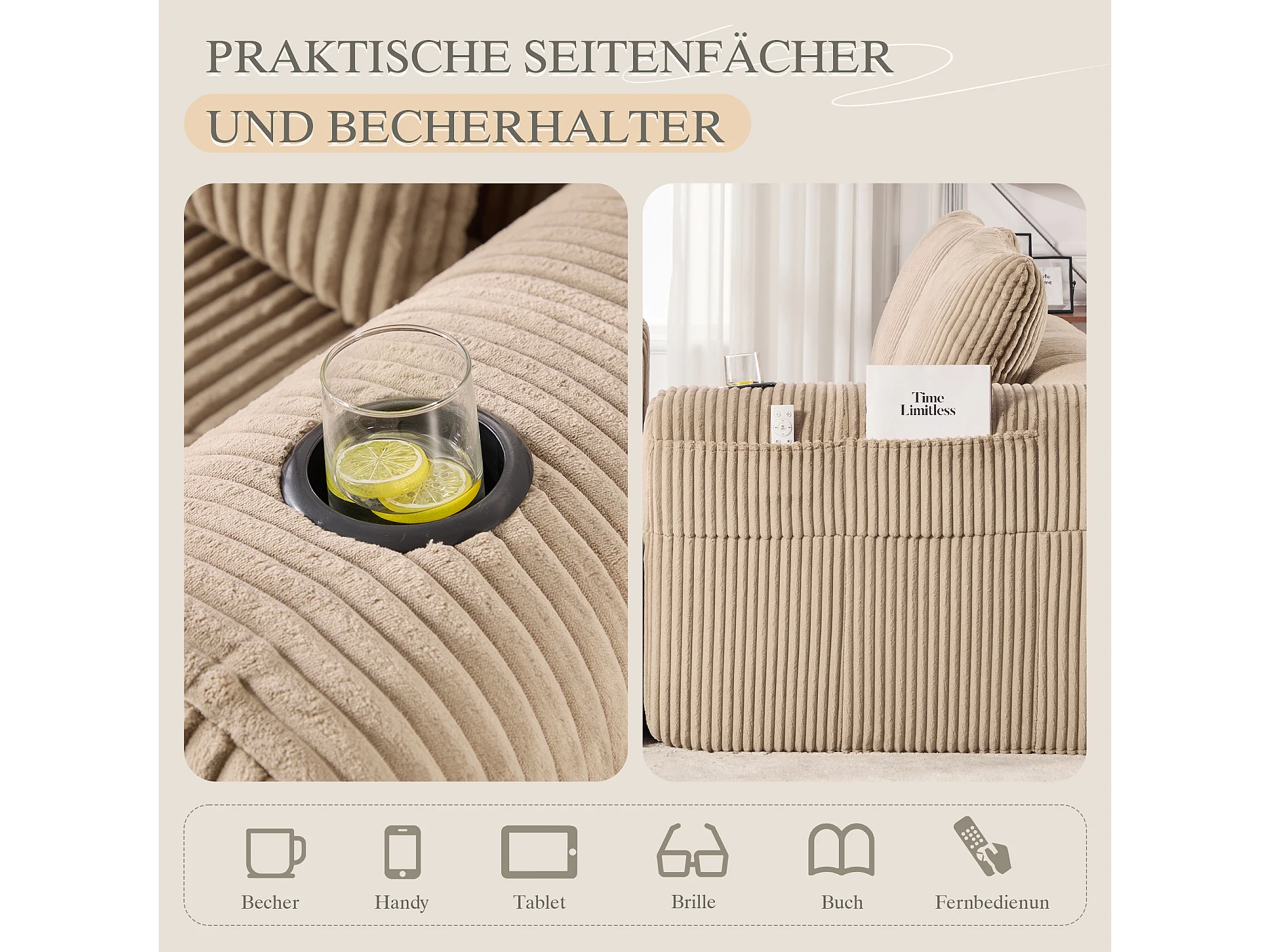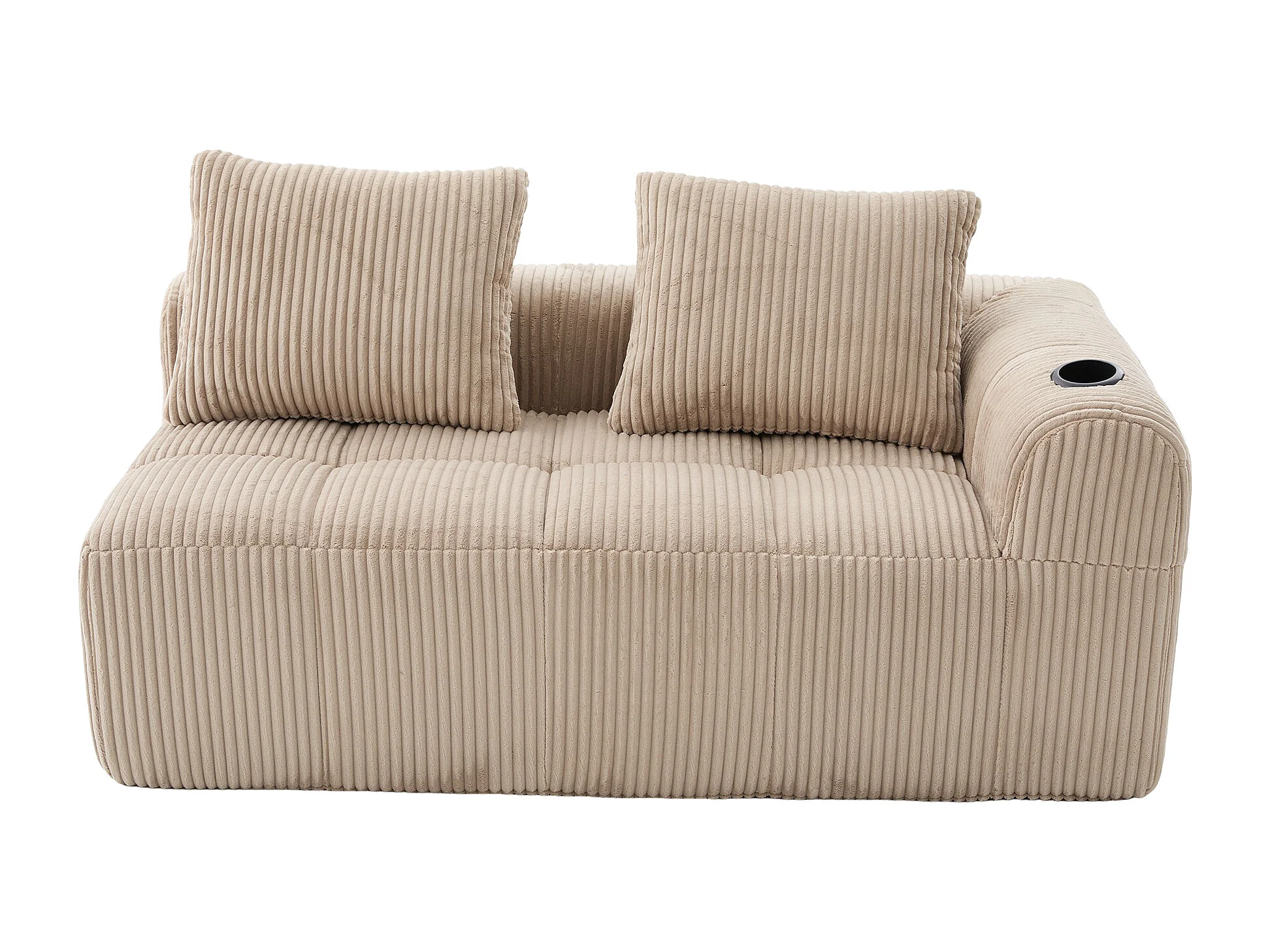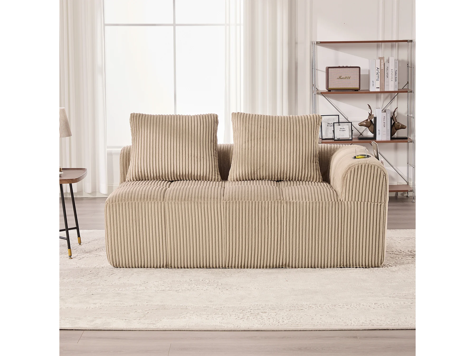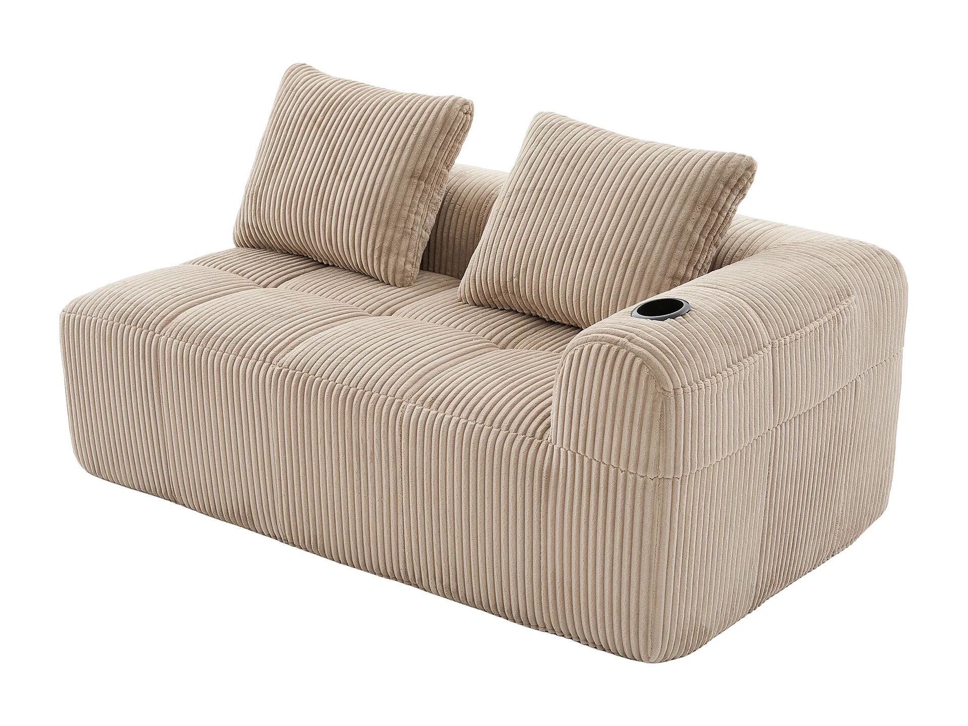 Canapé 2 place avec coussin et poche latérale - Velours côtelé - Couleur kaki
