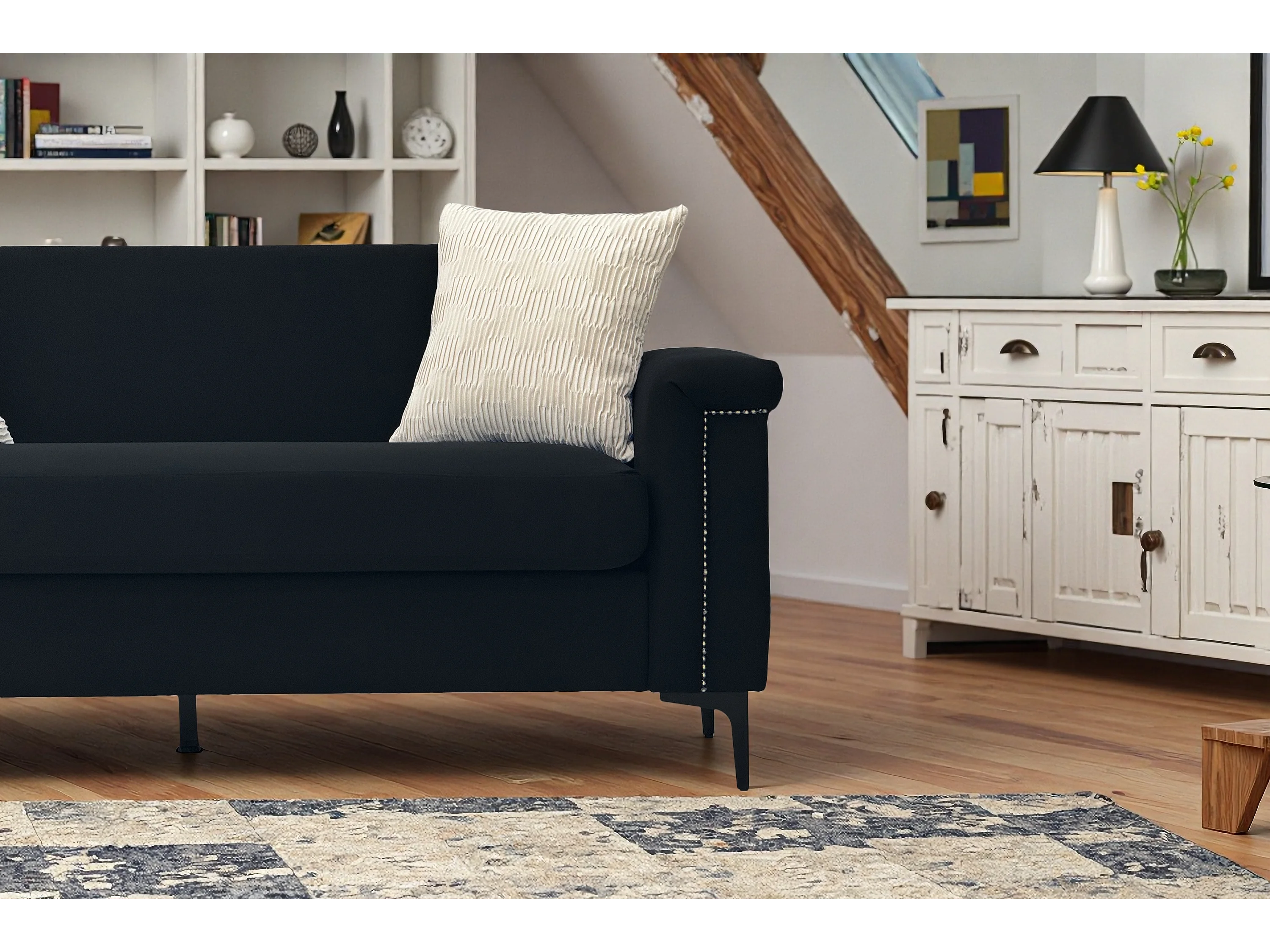 Canapé 2 places 172x72x82cm Canapé scandinave Design minimaliste Confort durable Bois massif Salon Noir