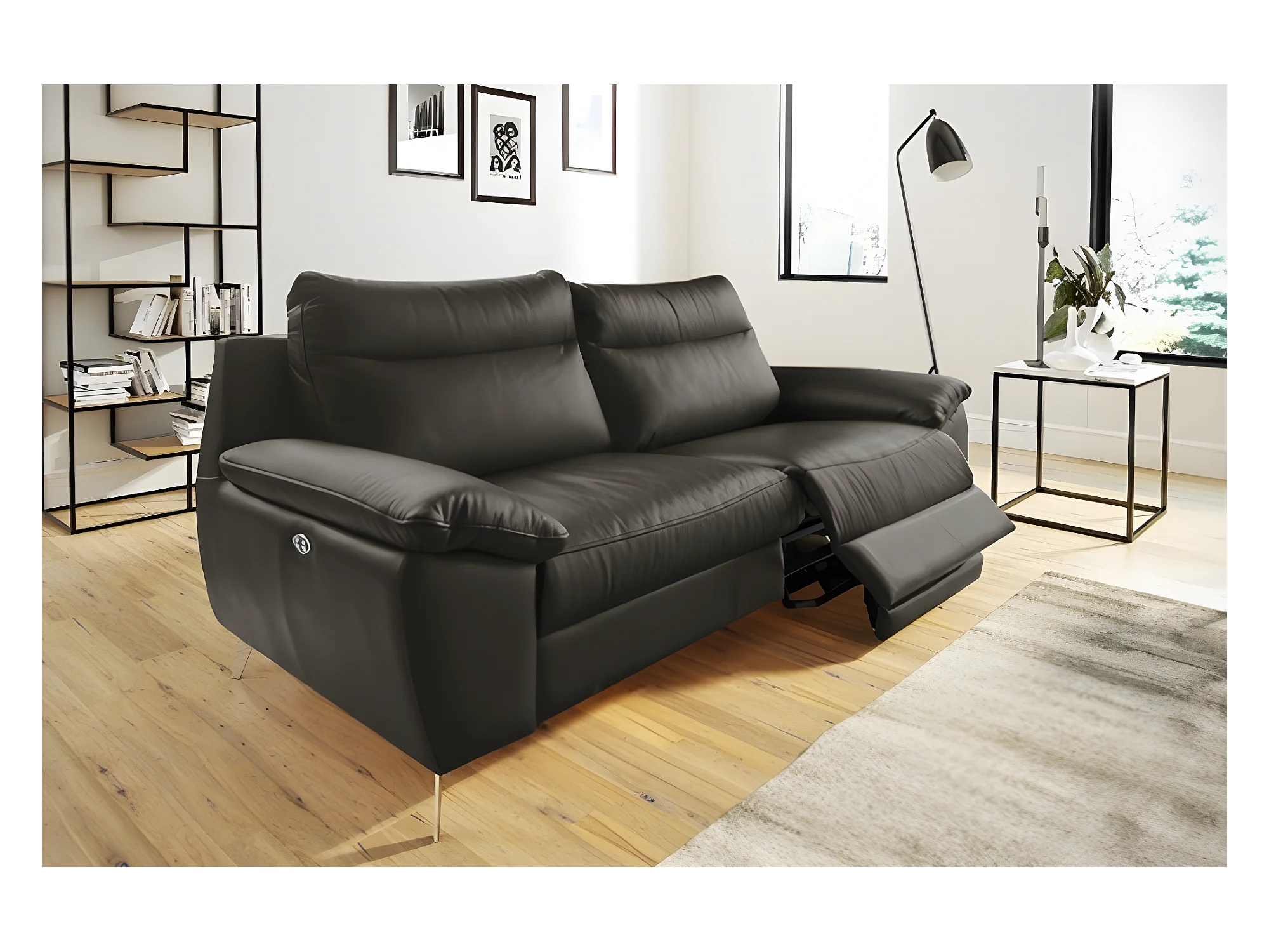 Canapé 2 places avec 2 relax électriques PERINI 100% tout cuir épais de luxe italien, anthracite