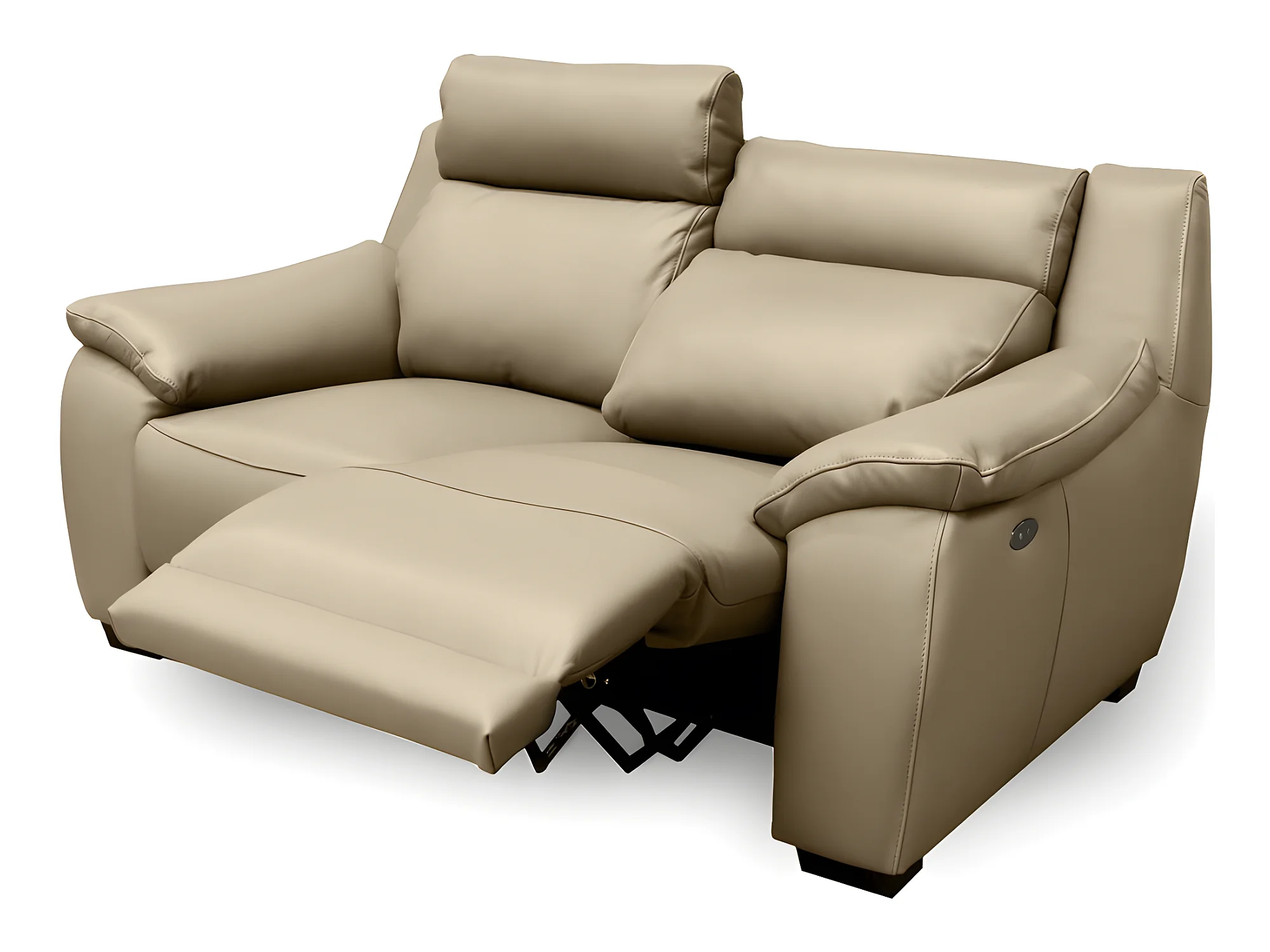 Canapé 2 places avec 2 relax en 100% tout cuir épais luxe italien - 2 relax électriques, beige. BERN