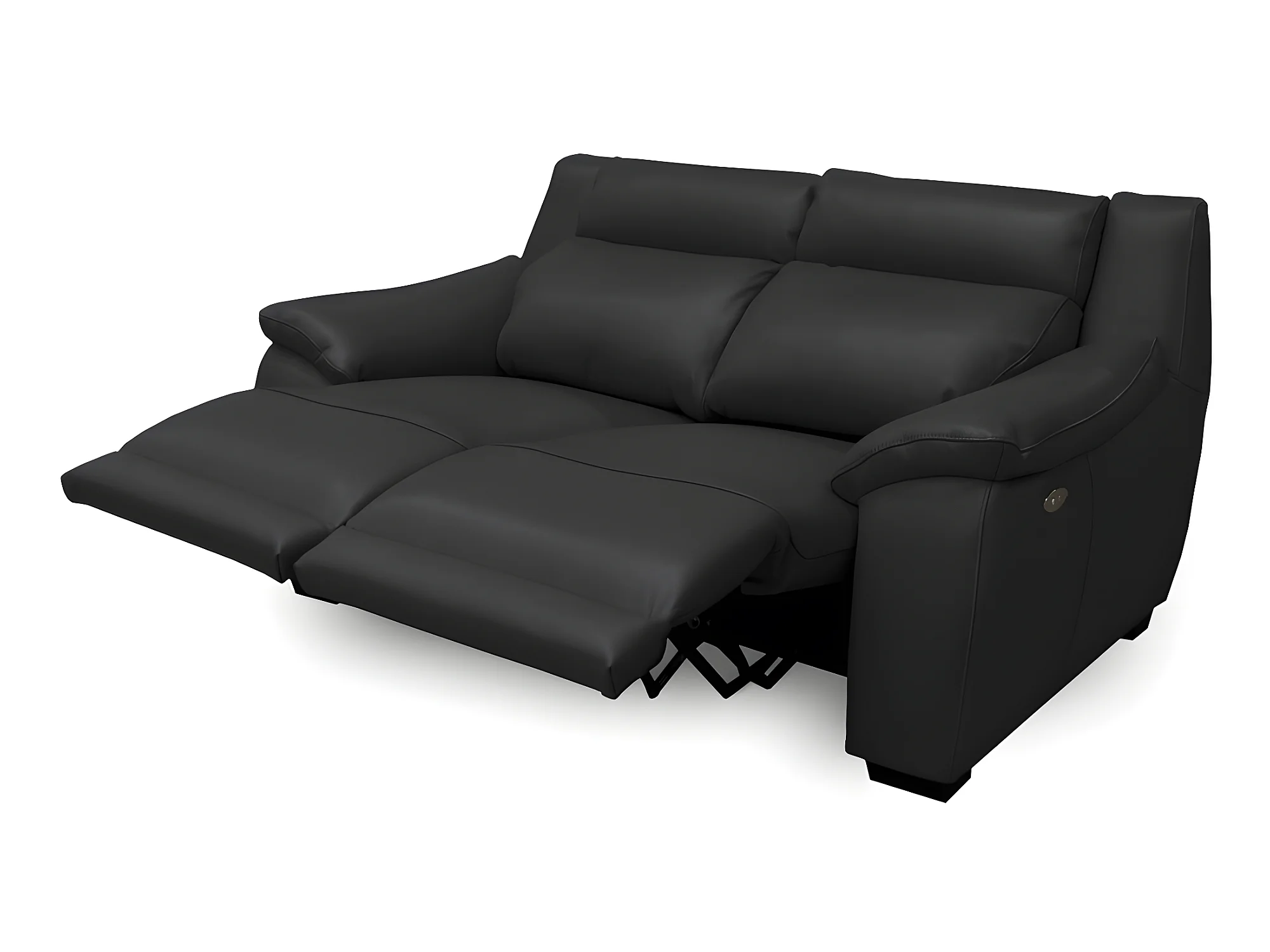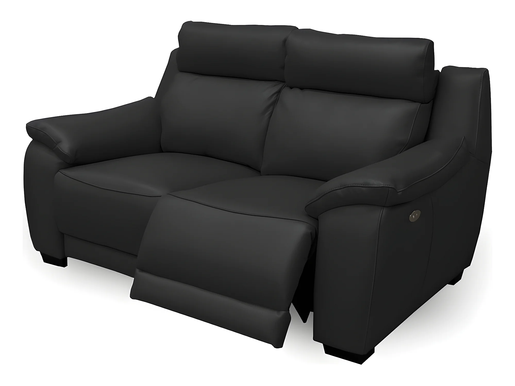 Canapé 2 places avec 2 relax électriques PERINI 100% tout cuir épais de luxe italien, noir