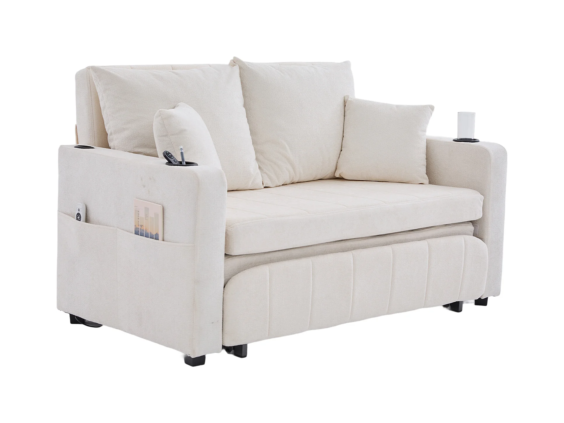 Canapé 2 places avec 4 coussins - Canapé relaxation avec porte-gobelet et poches latérales - chenille beige