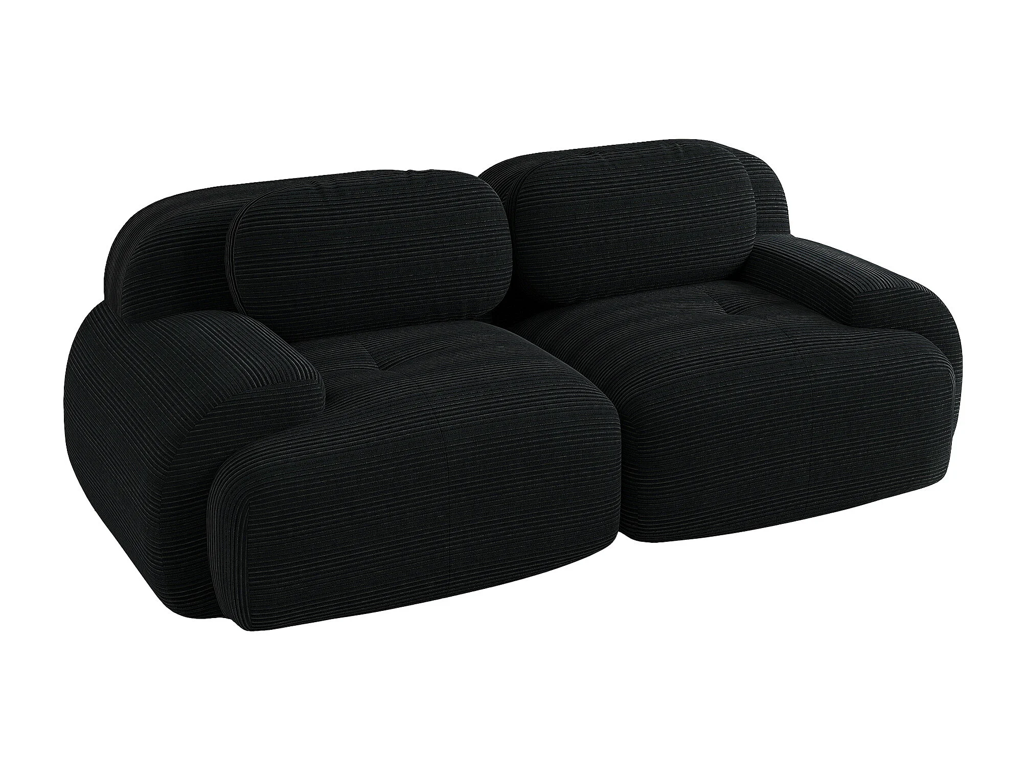 Canapé 2 places avec accoudoirs courbés et dossier rembourré - velours côtelé noir