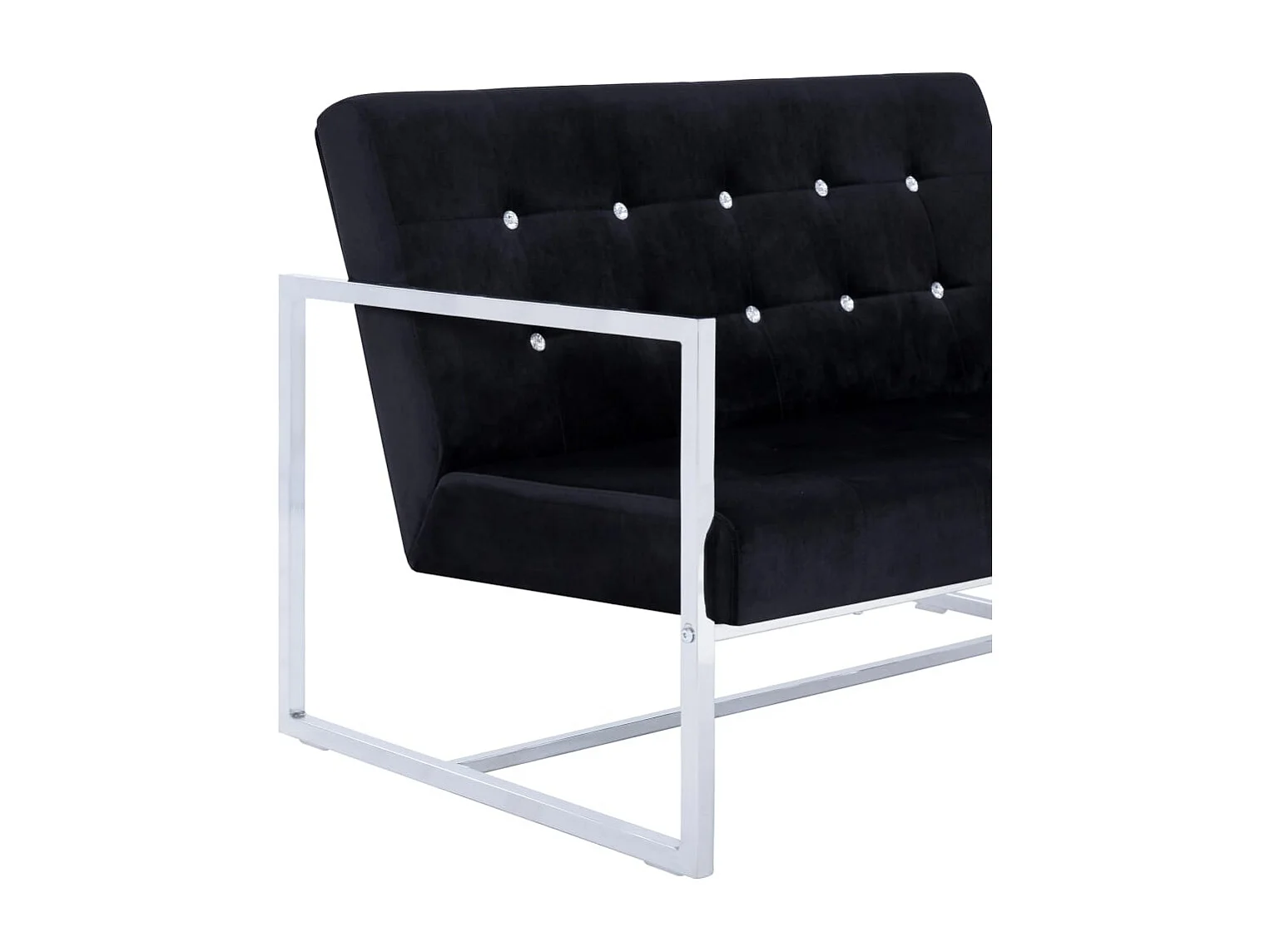 Canapé 2 places avec accoudoirs Noir Chrome et velours