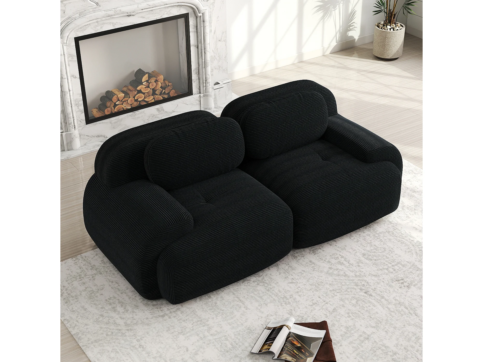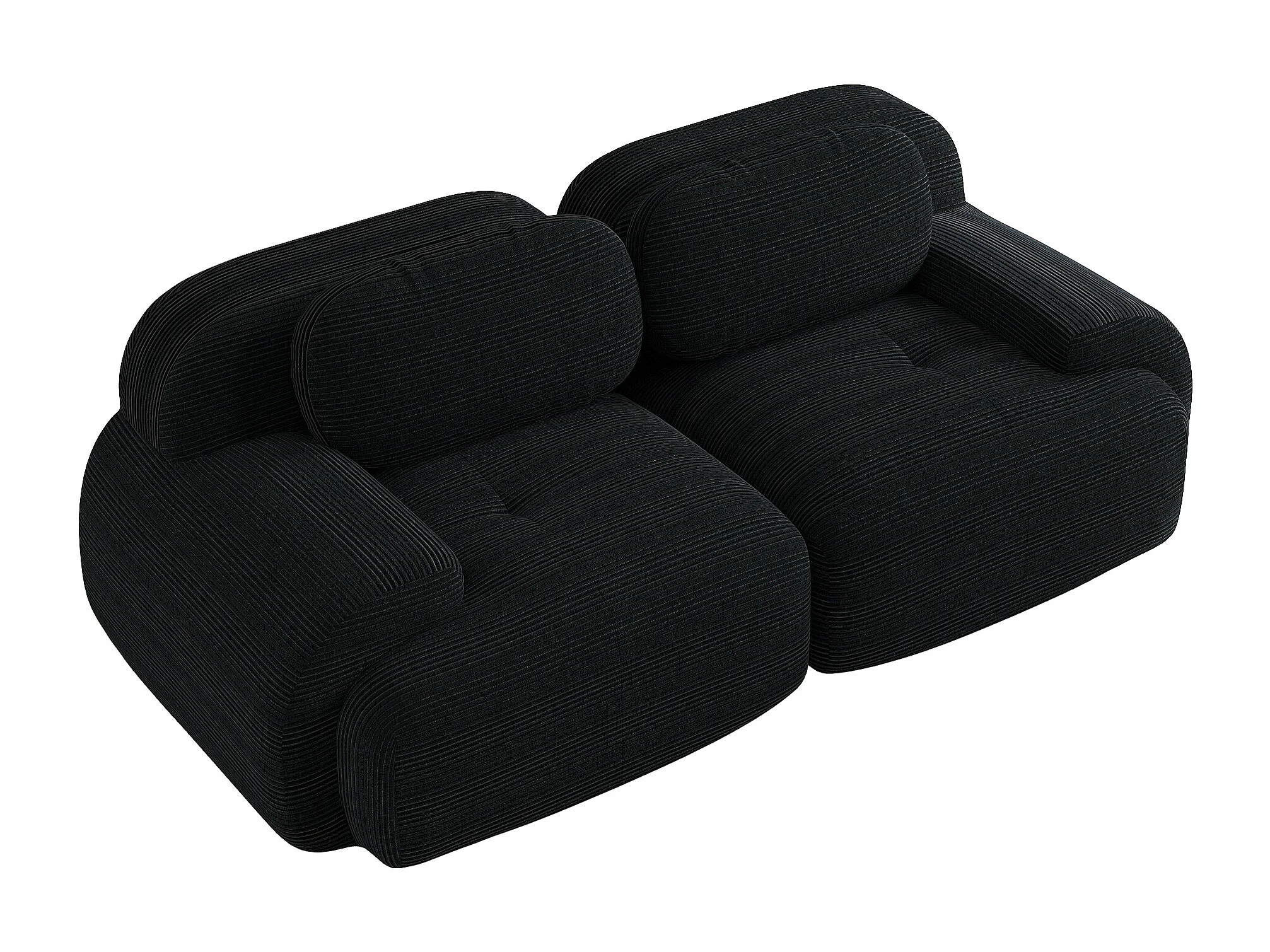 Canapé 2 places avec coussins - Canapé droit avec accoudoirs incurvés et coussins décoratifs - velours côtelé noir