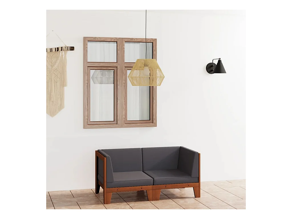 Canapé 2 places avec coussins gris foncé Bois d'acacia massif REO17754