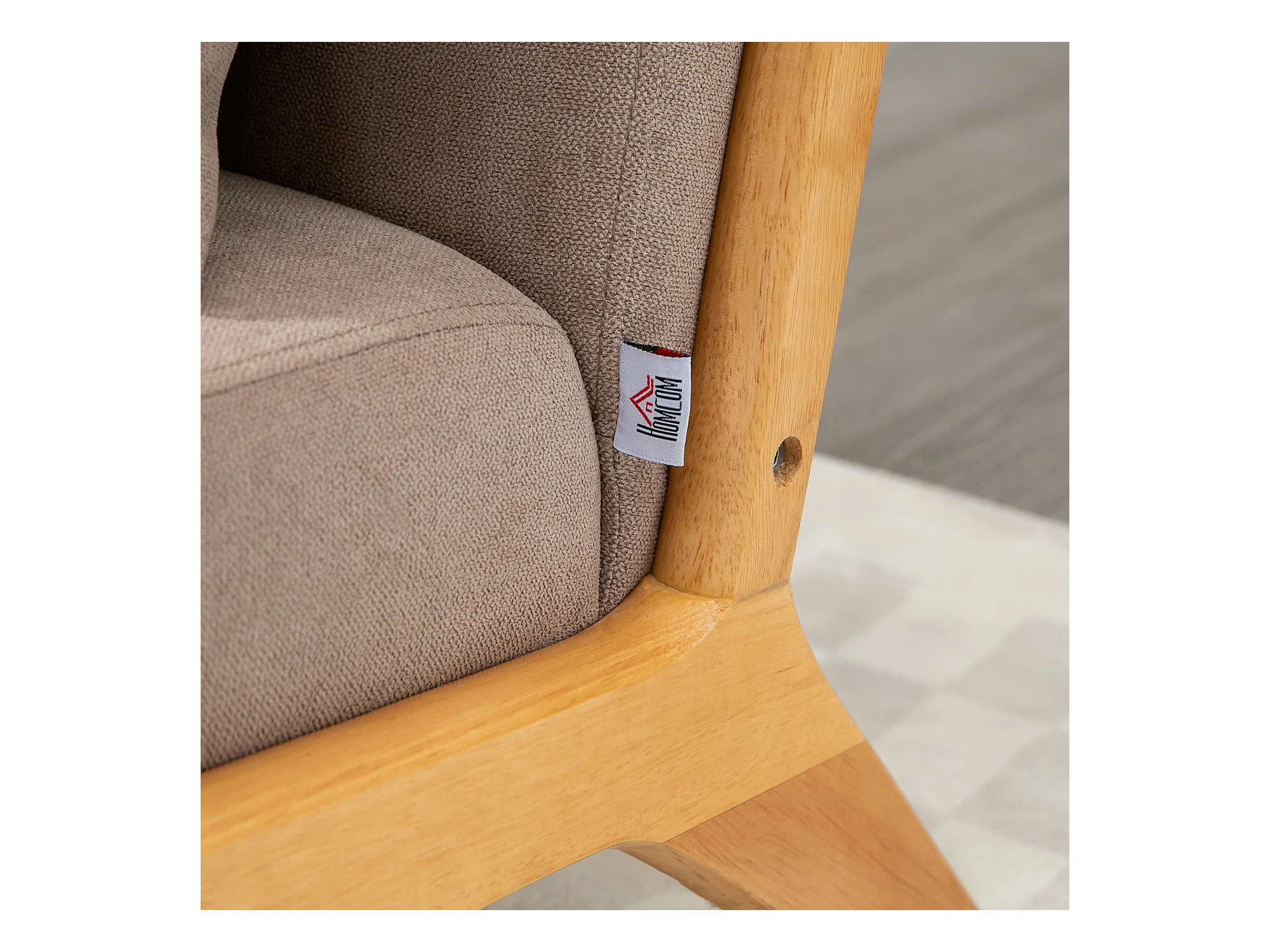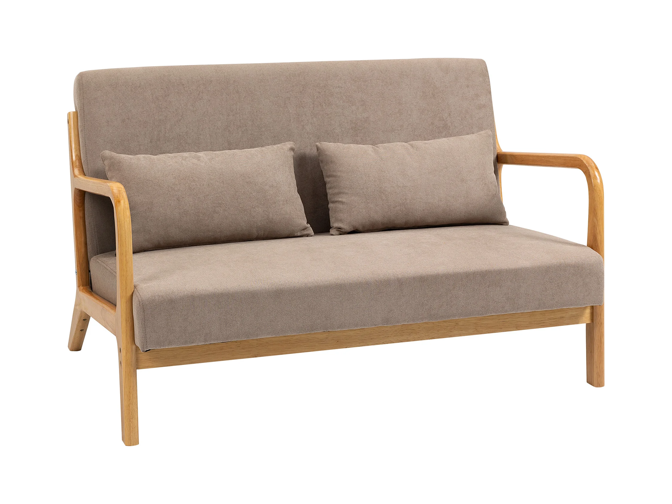Canapé 2 places en tissu avec coussins amovibles, bois de caoutchouc, gris (117x62x78 cm)