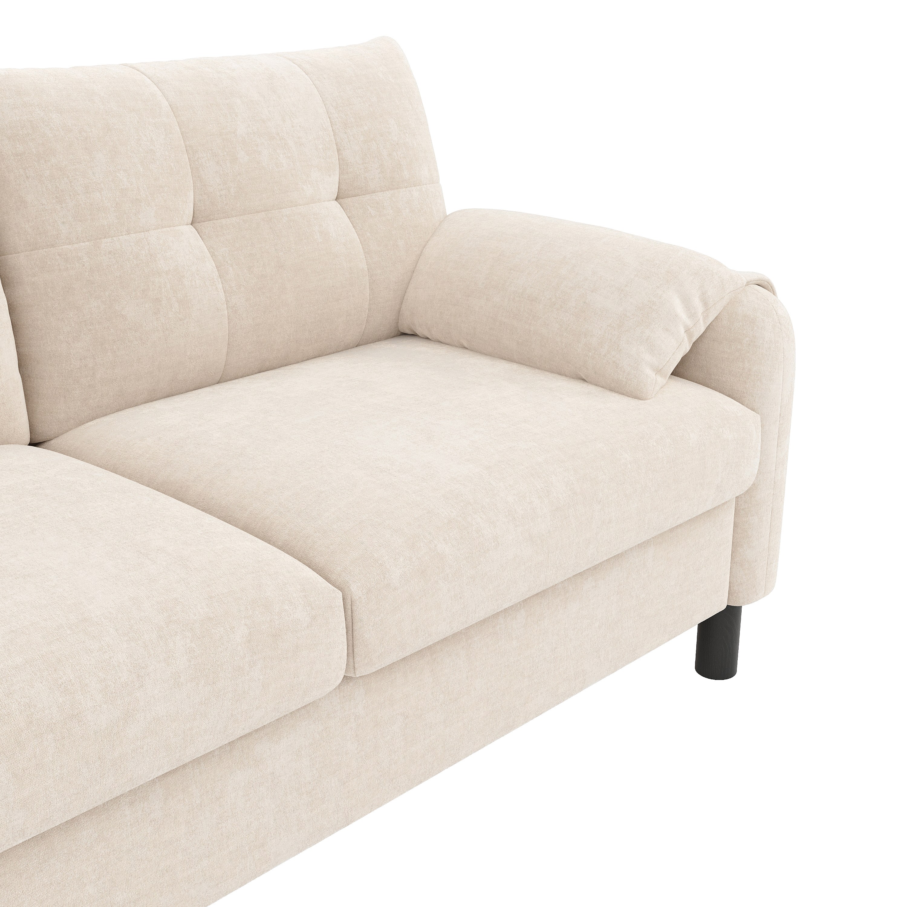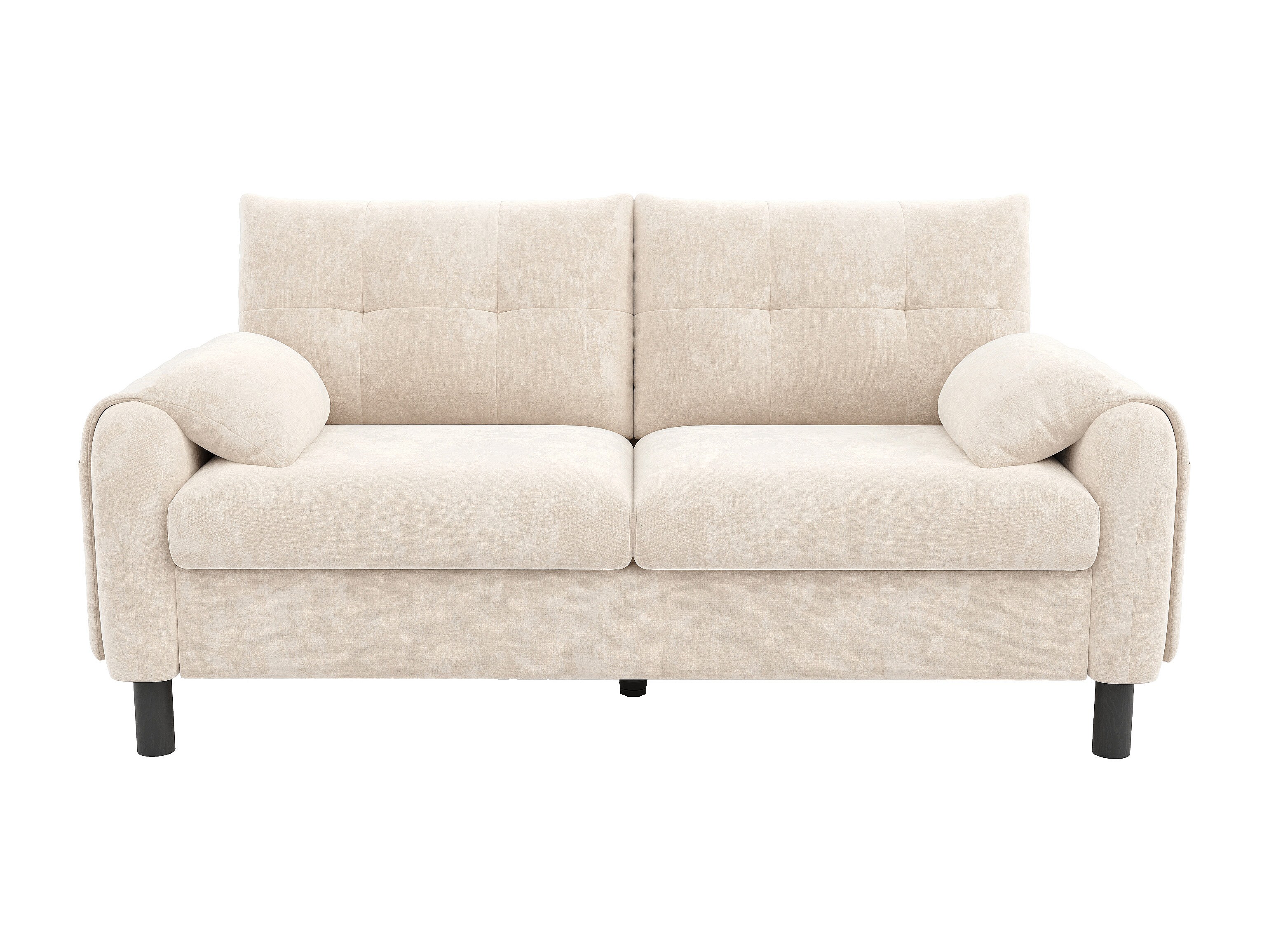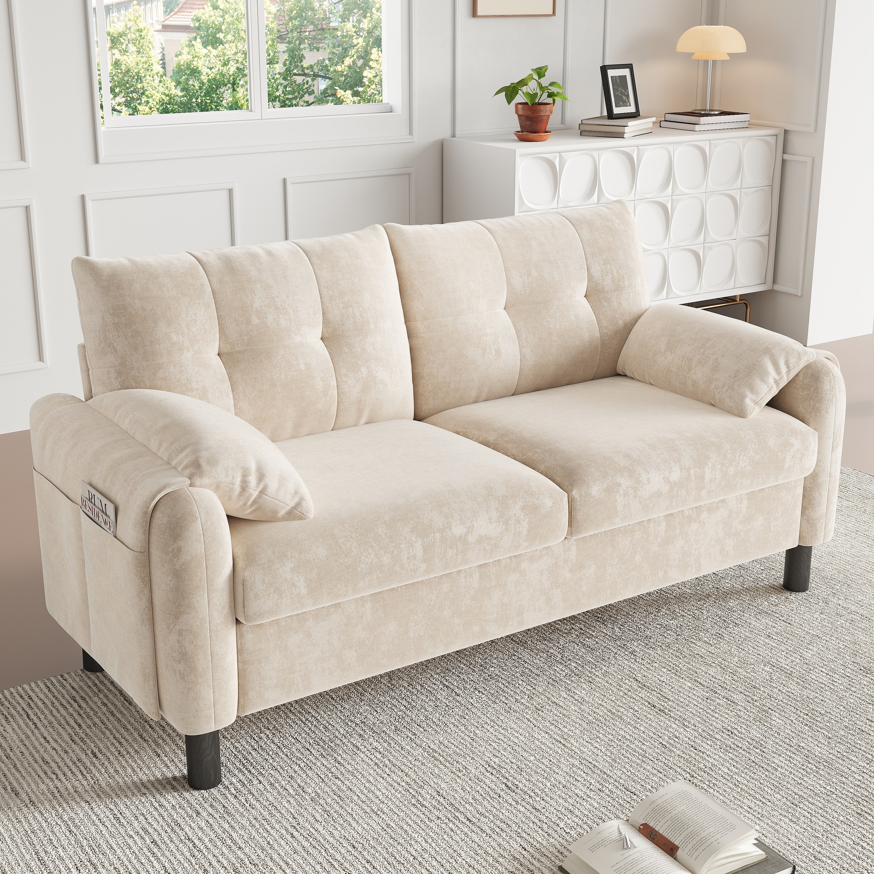 Canapé 2 places avec dossier rembourré - Canapé droit avec poches latérales et accoudoirs - chenille beige