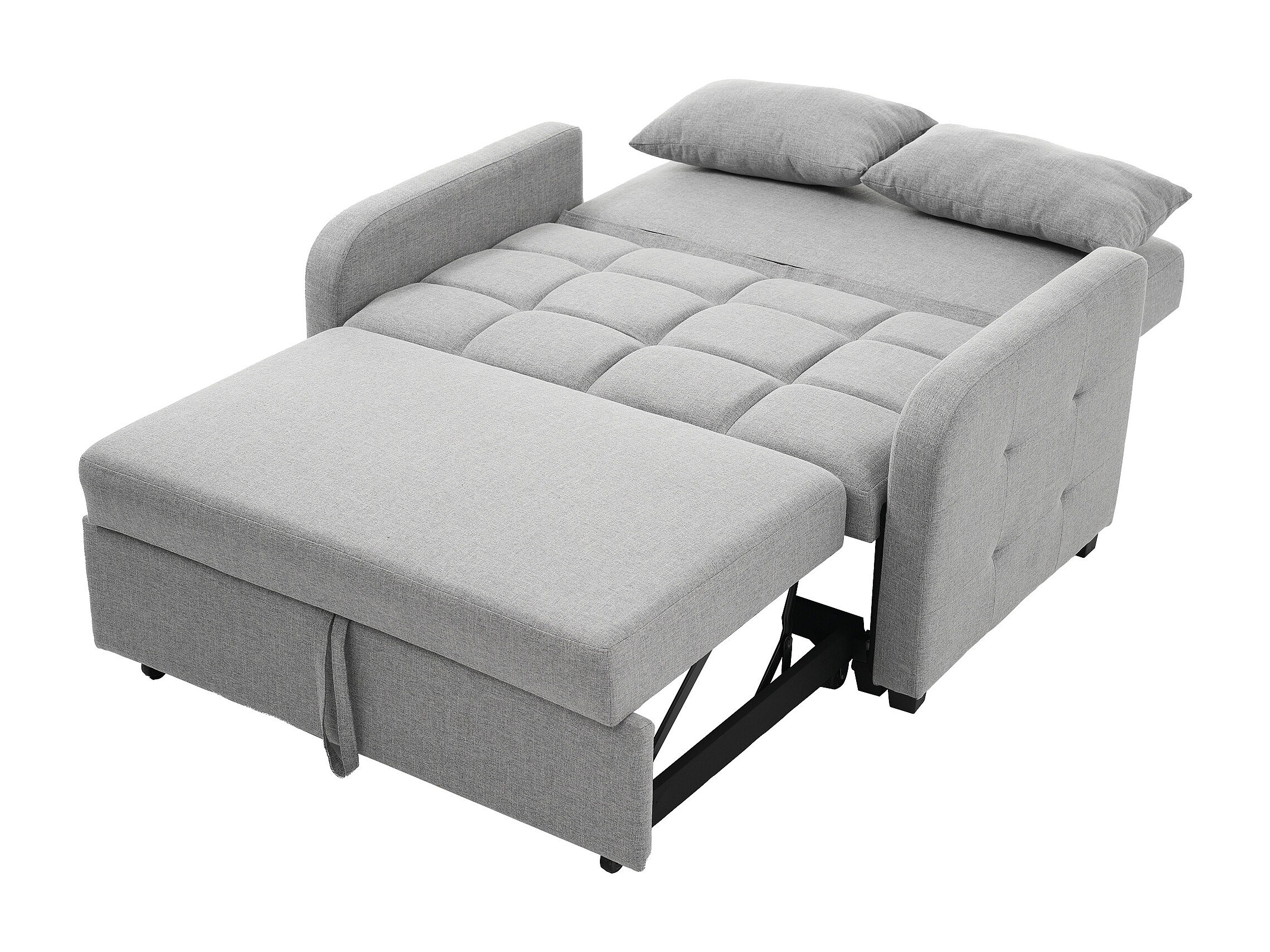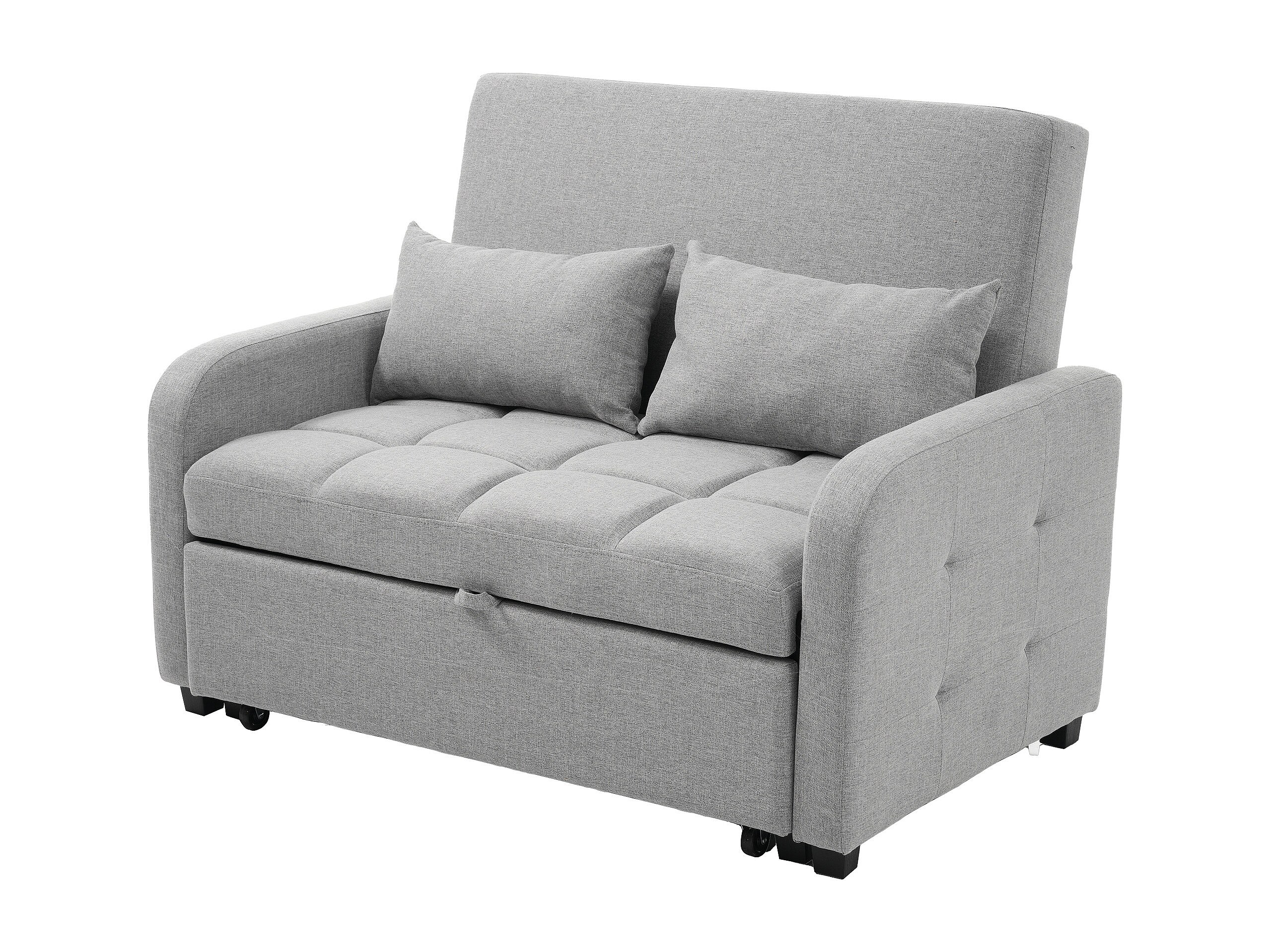 Canapé 2 places avec fonction gigogne - Canapé relaxation avec dossier réglable et 2 coussins - Lin gris