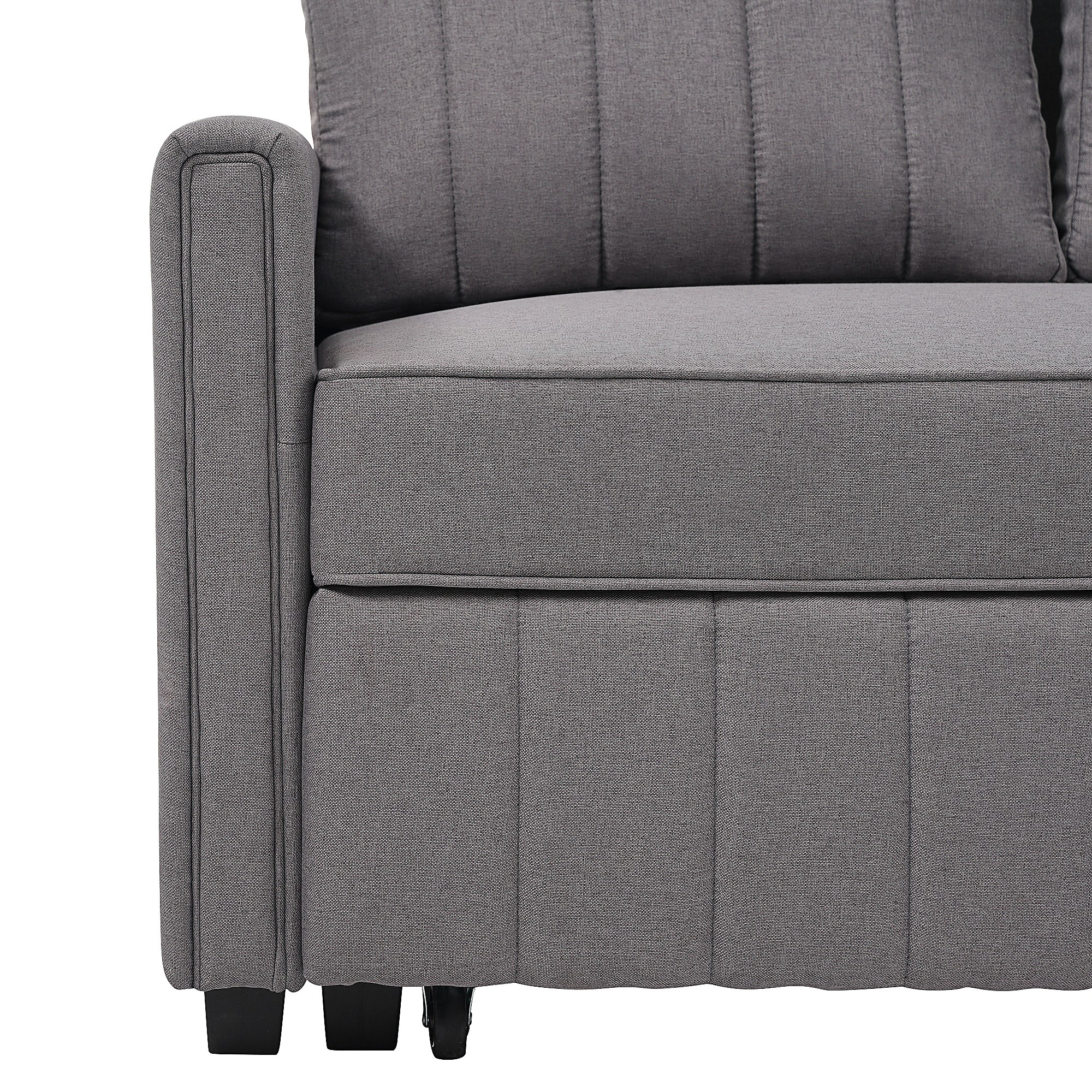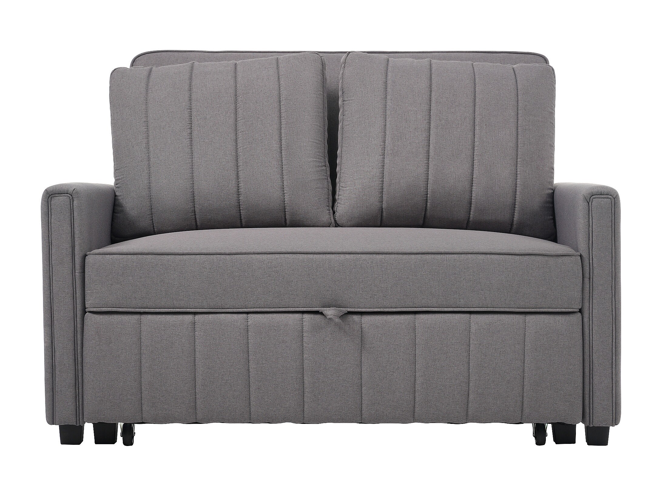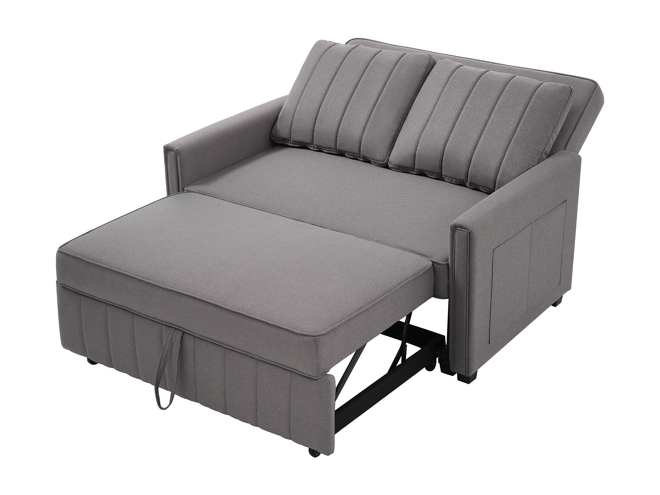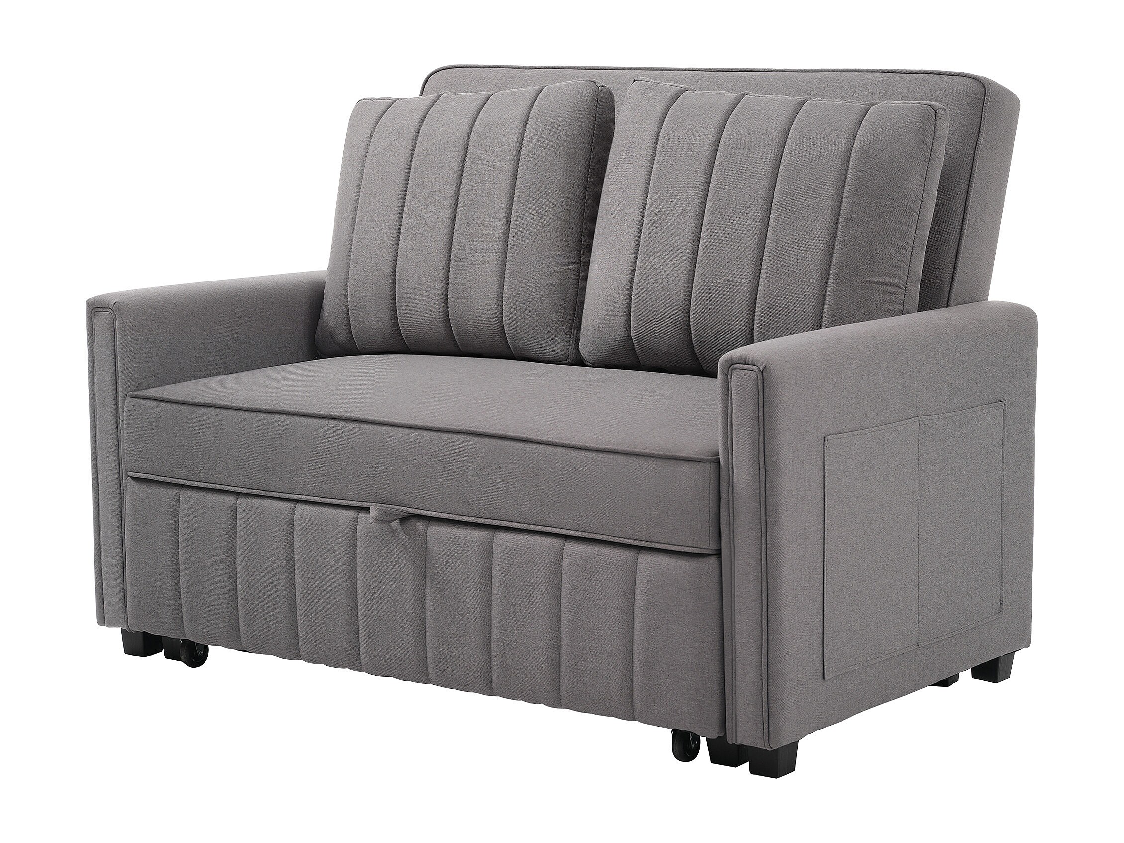 Canapé 2 places avec fonction gigogne - Canapé relaxation avec poches latérales et 2 coussins - Lin gris