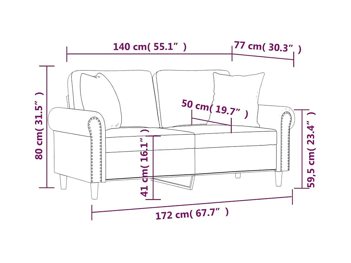 Canapé 2 places avec oreillers bordeaux 140 cm velours
