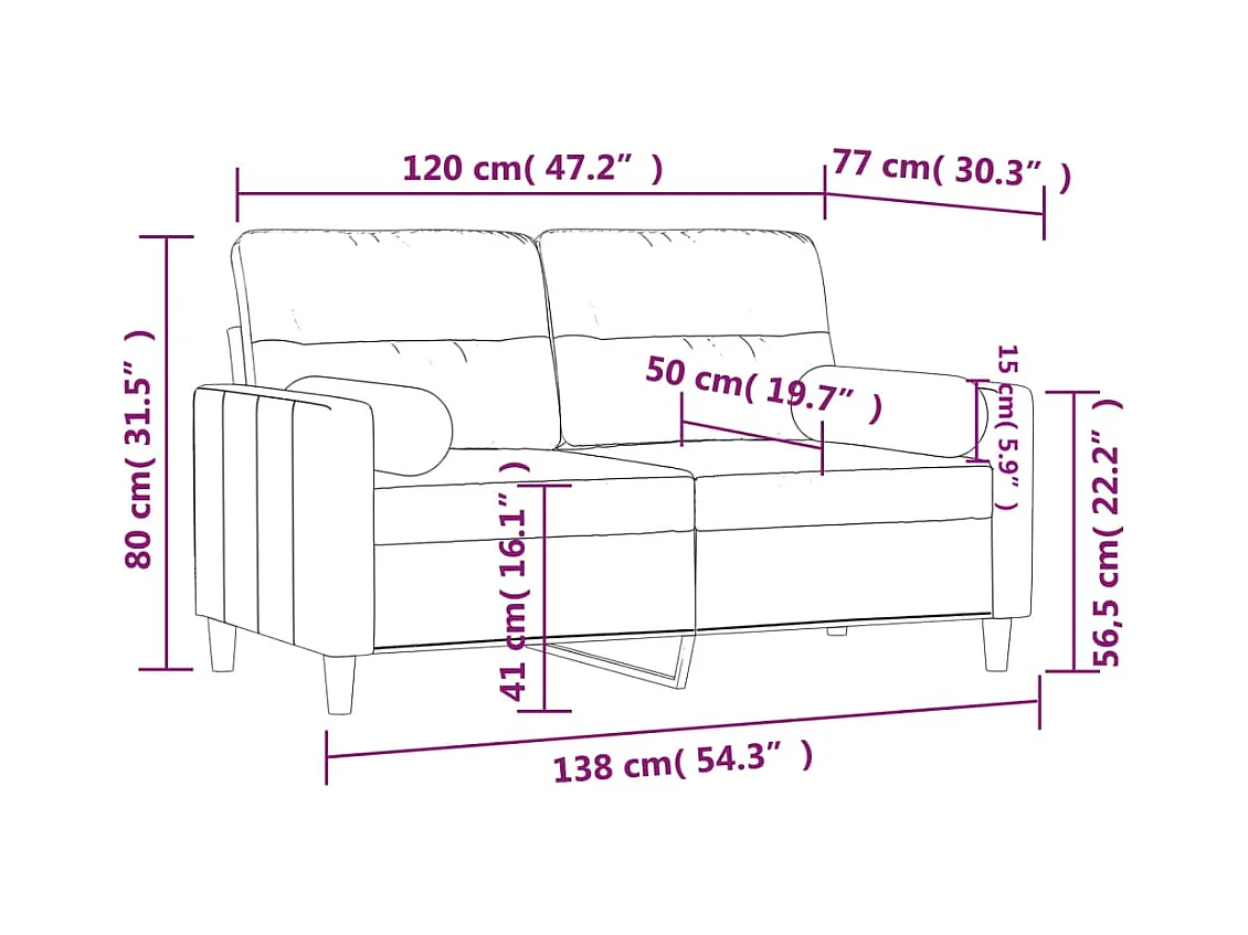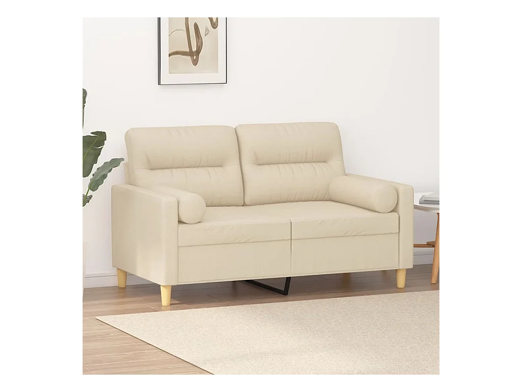 Canapé 2 places avec oreillers décoratifs crème 120 cm tissu