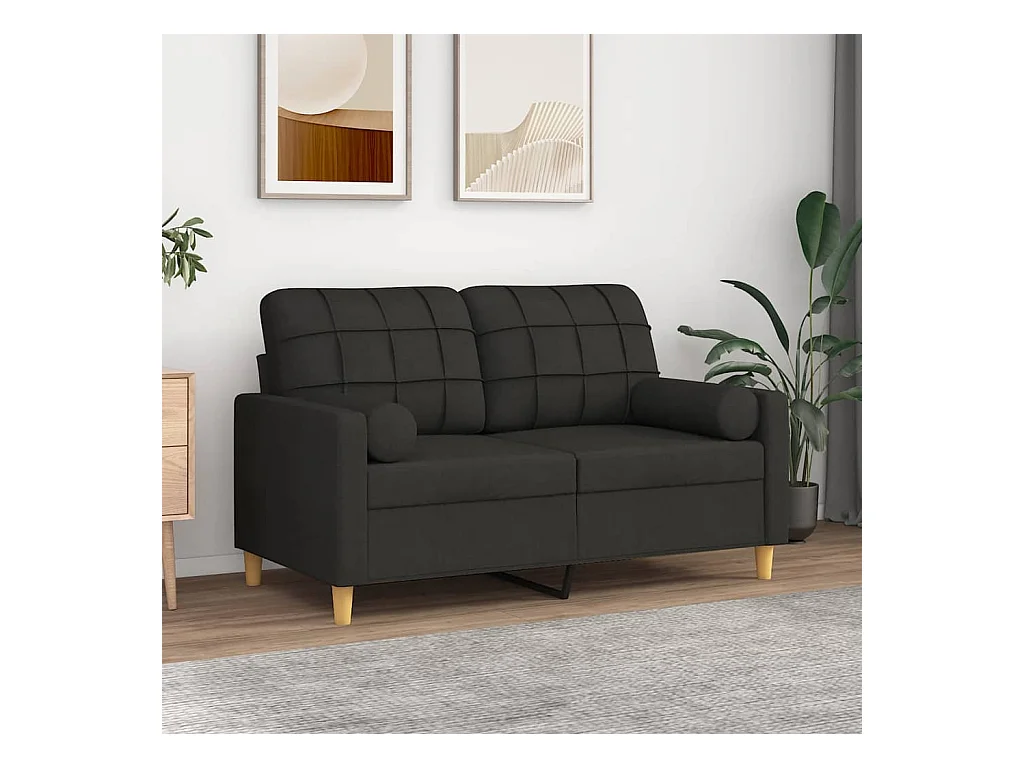 Canapé 2 places avec oreillers décoratifs noir 120 cm tissu
