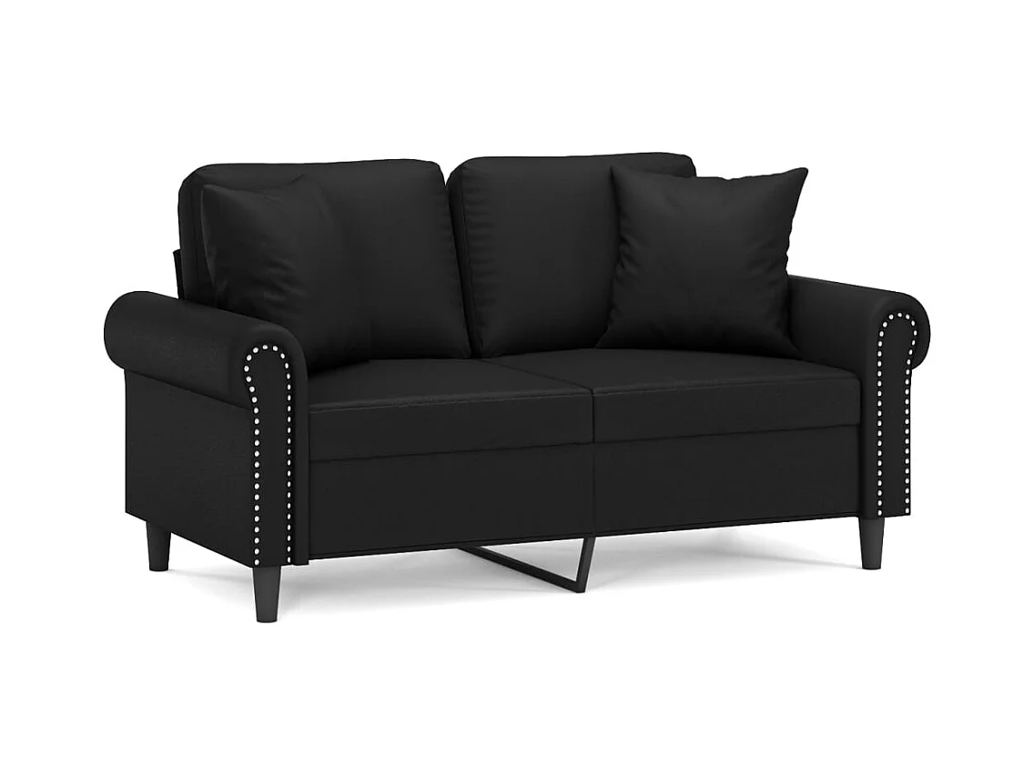 Canapé 2 places avec oreillers décoratifs noir 120cm similicuir REO74544
