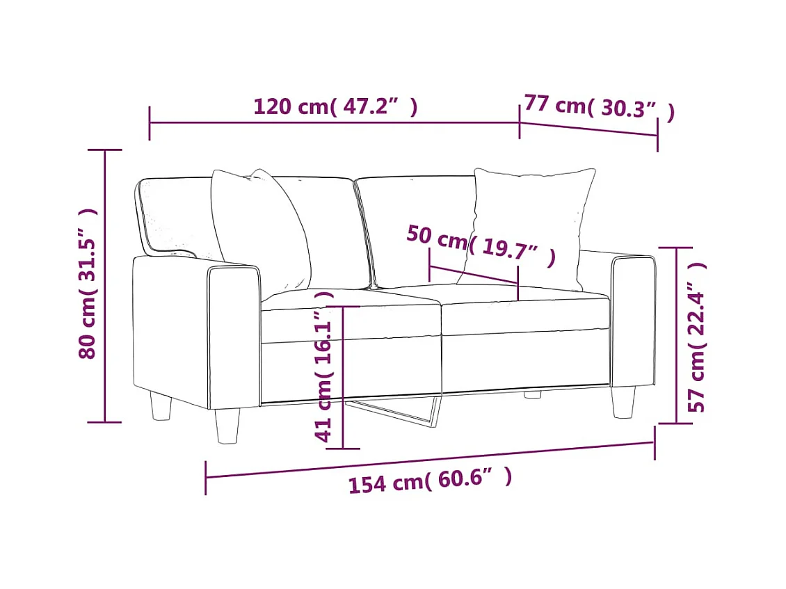 Canapé 2 places avec oreillers gris 120 cm similicuir