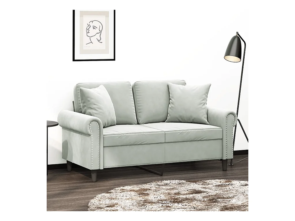 Canapé 2 places avec oreillers gris clair 120 cm velours REO34519