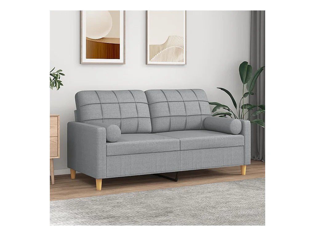 Canapé 2 places avec oreillers gris clair 120 cm tissu