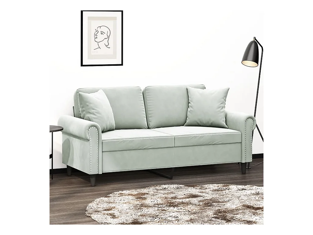 Canapé 2 places avec oreillers gris clair 140 cm velours