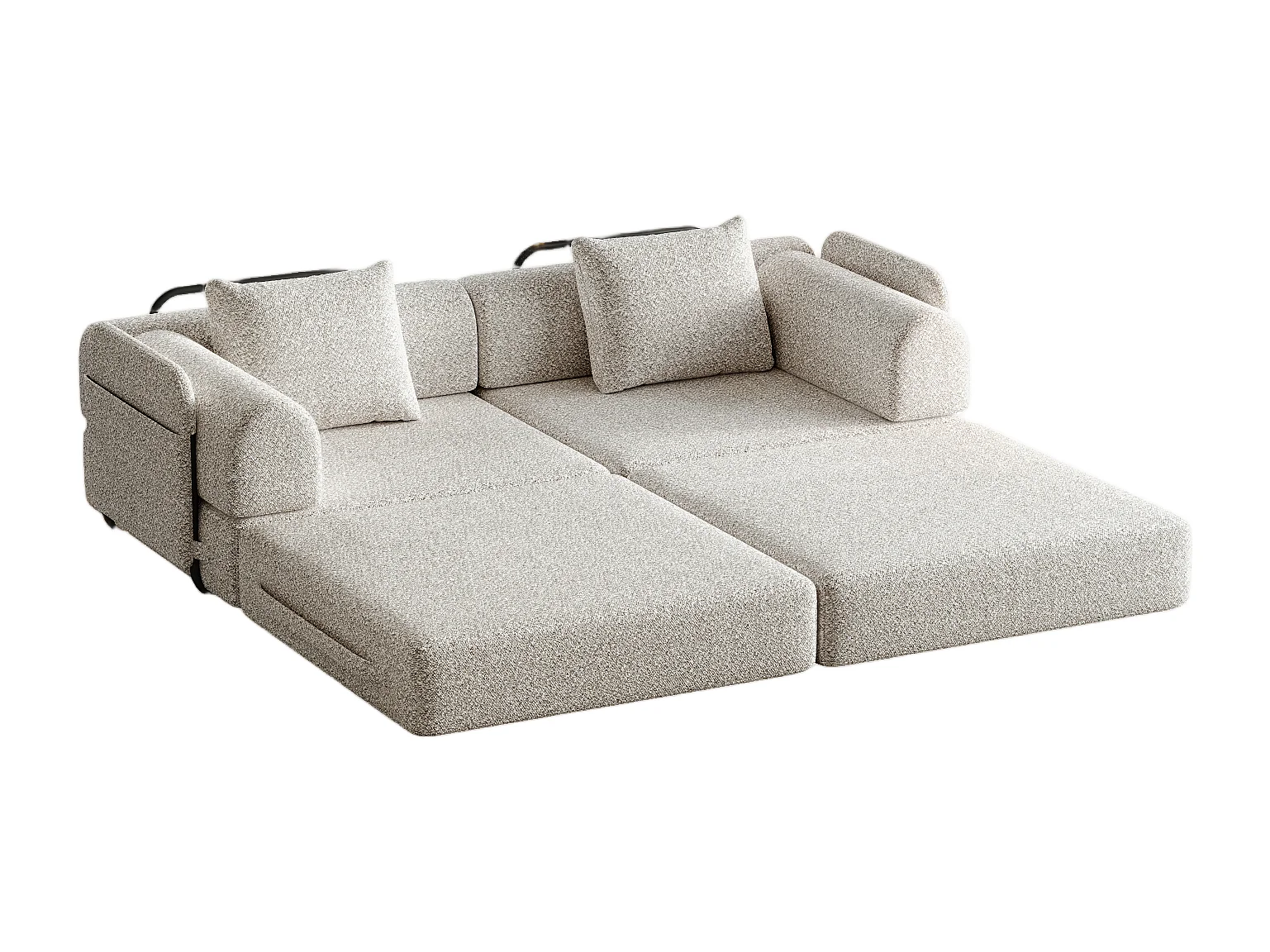 Canapé 2 places, Canapé convertible avec accoudoirs et poches latérales, structure en métal - Chenille kaki
