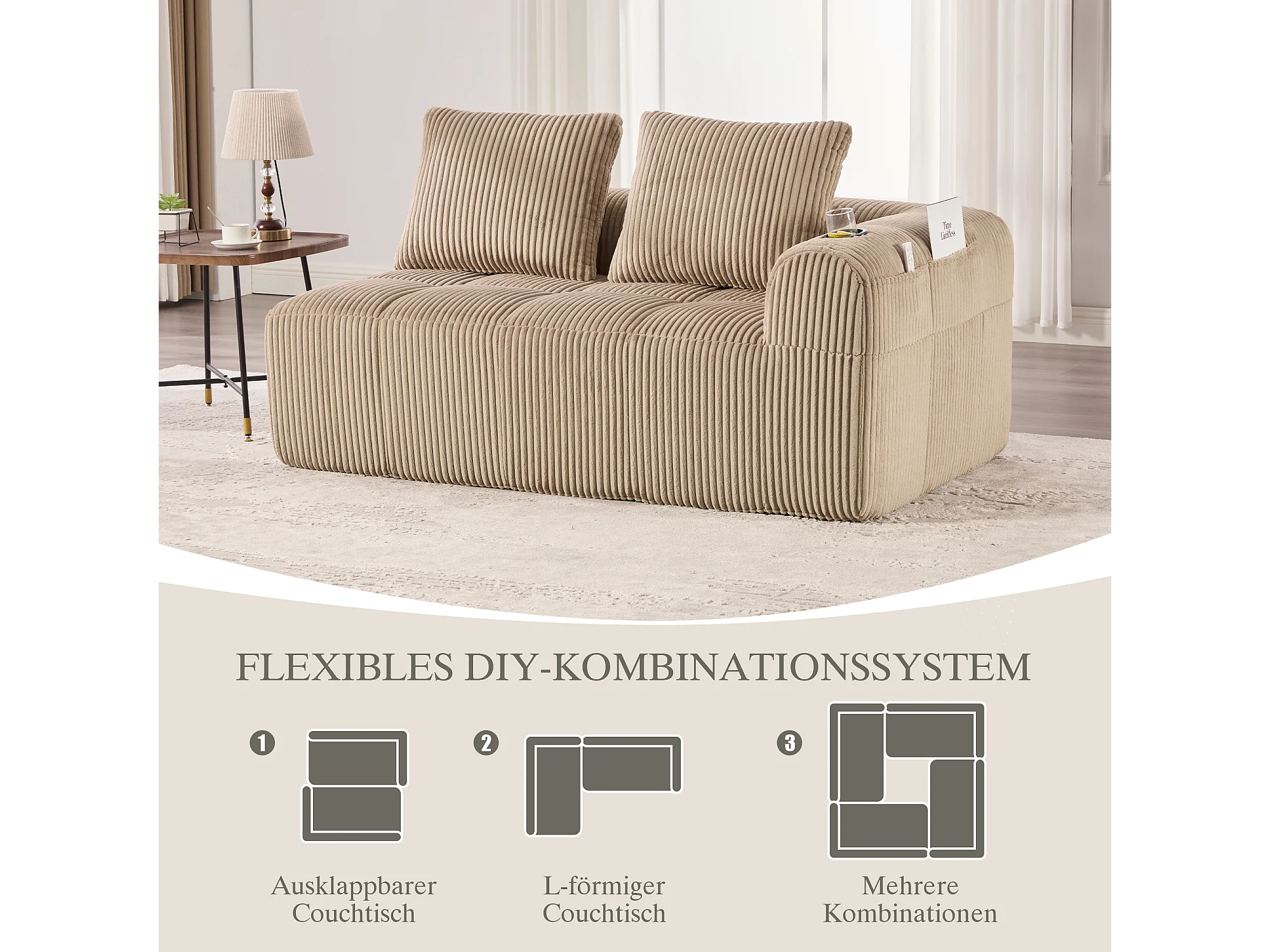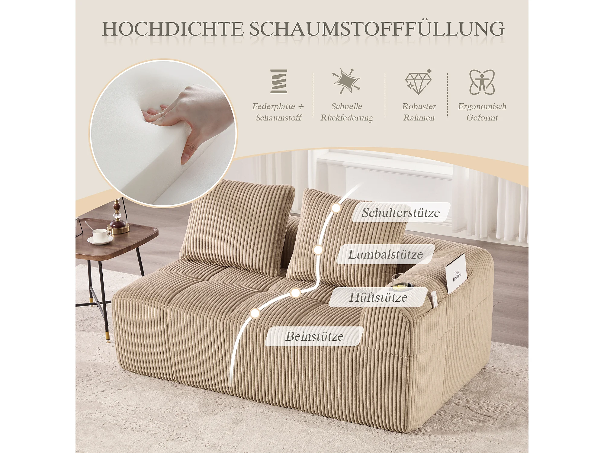 Canapé 2 places confortable - 158 x 93 x 61 cm - aucun assemblage requis - avec coussins de dossier + poche - velours - kaki