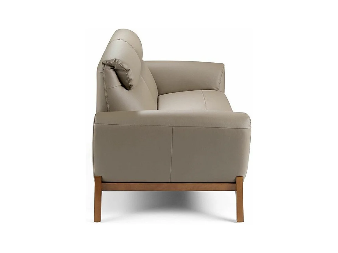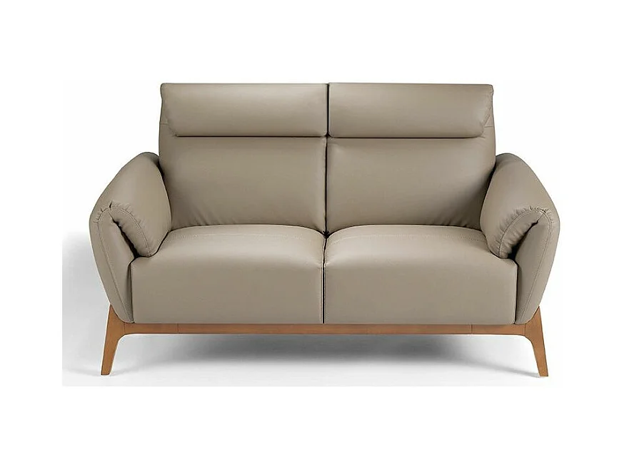 Canapé 2 places cuir et pieds bois noyer Kina-Couleur Cuir Piel blanc