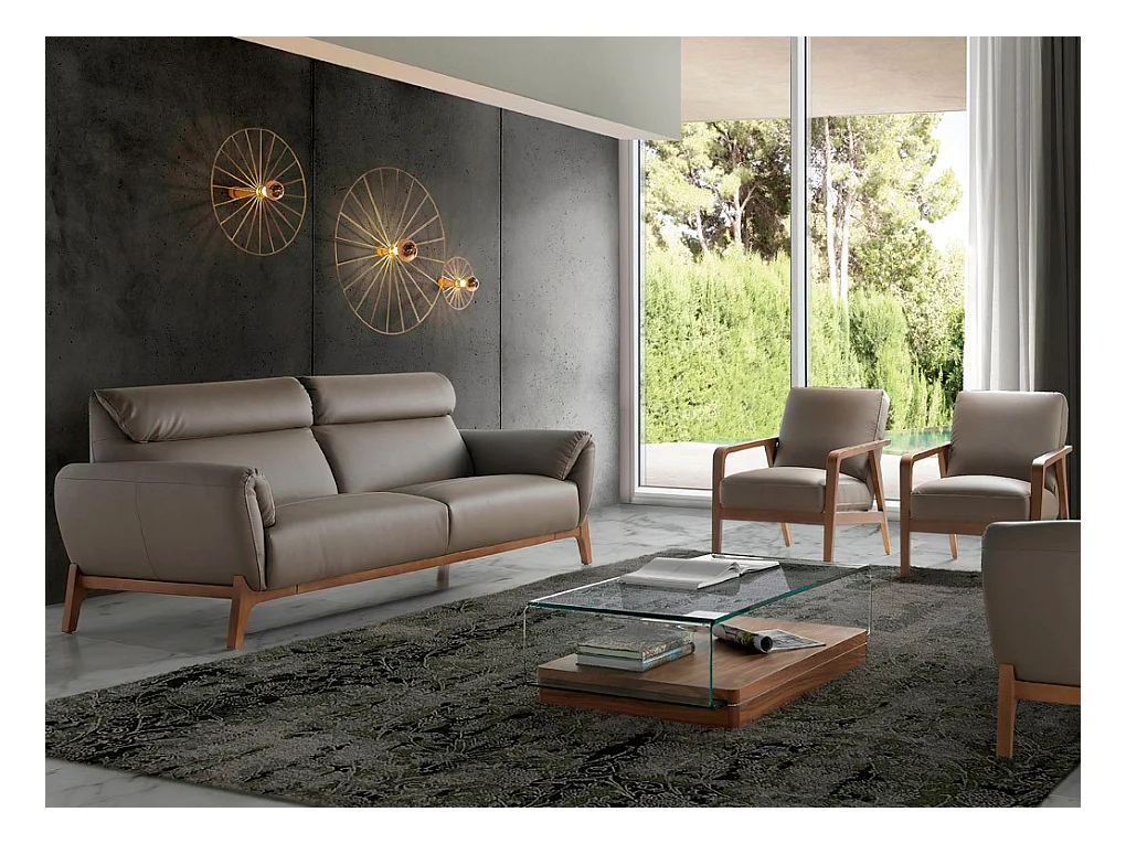 Canapé 3 places bois noyer et cuir Kilane-Couleur Aqua 00 Blanc