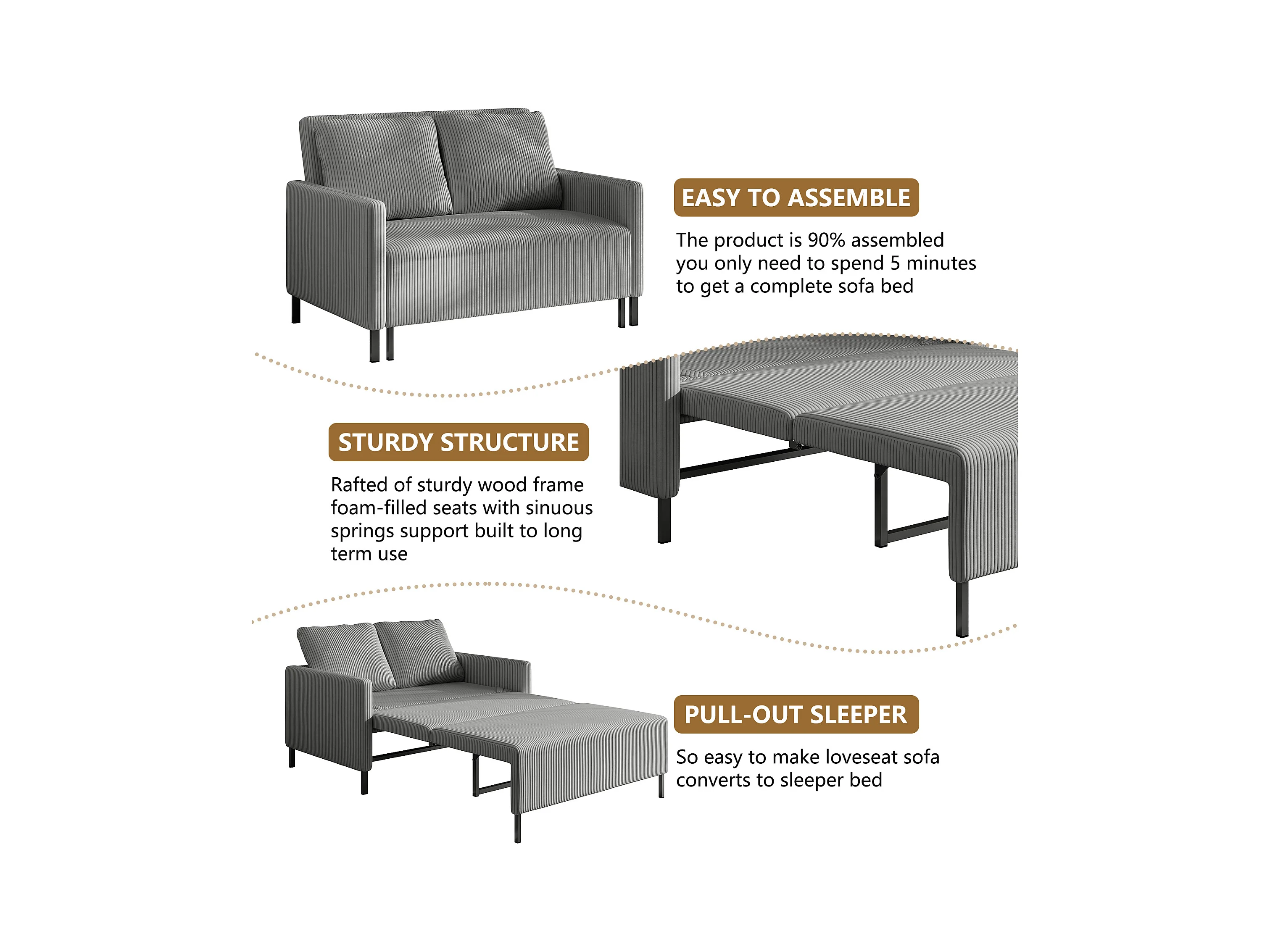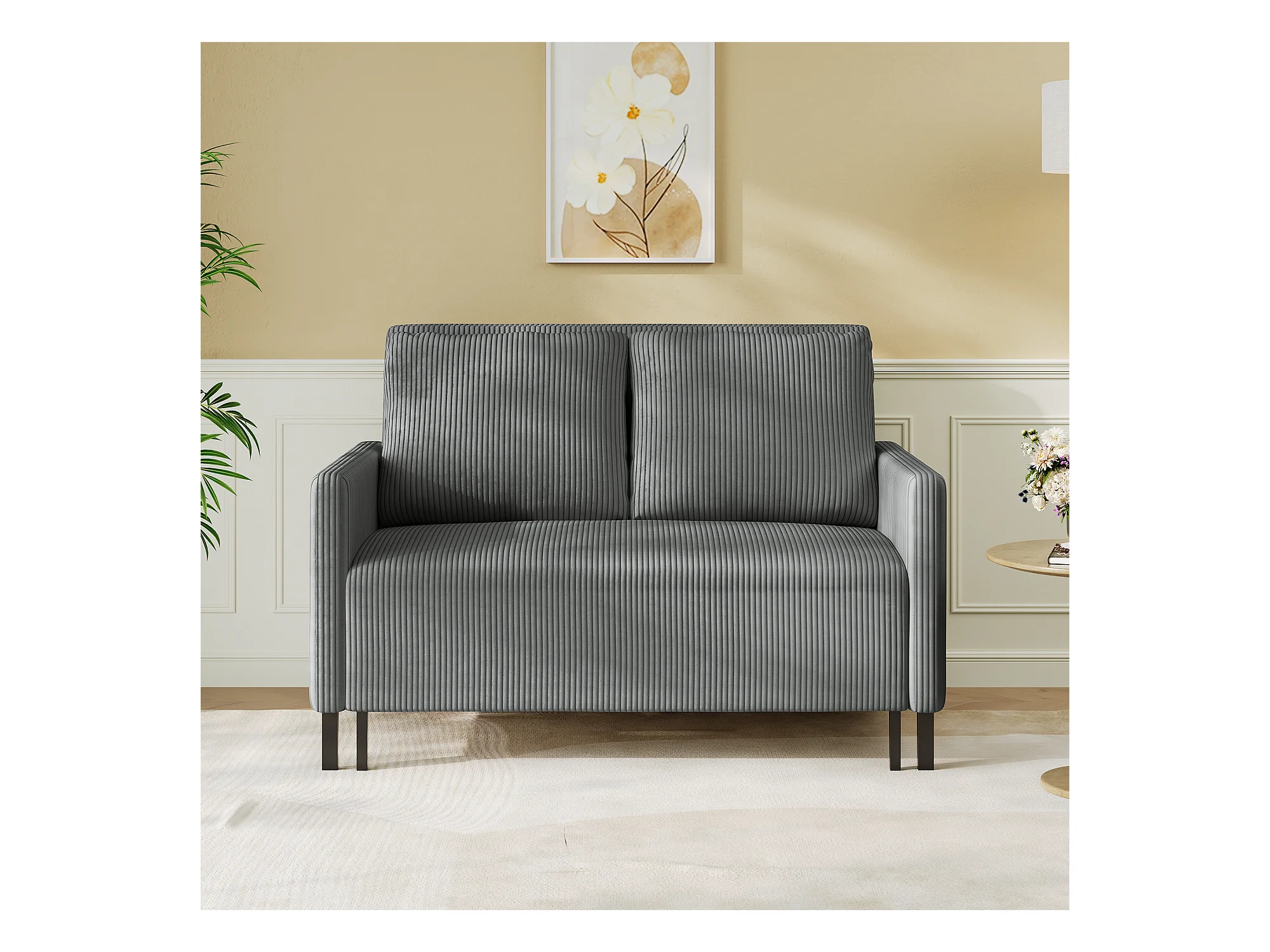 Canapé droit 2 places convertible en velours gris, 2 coussins inclus-180x75x82cm