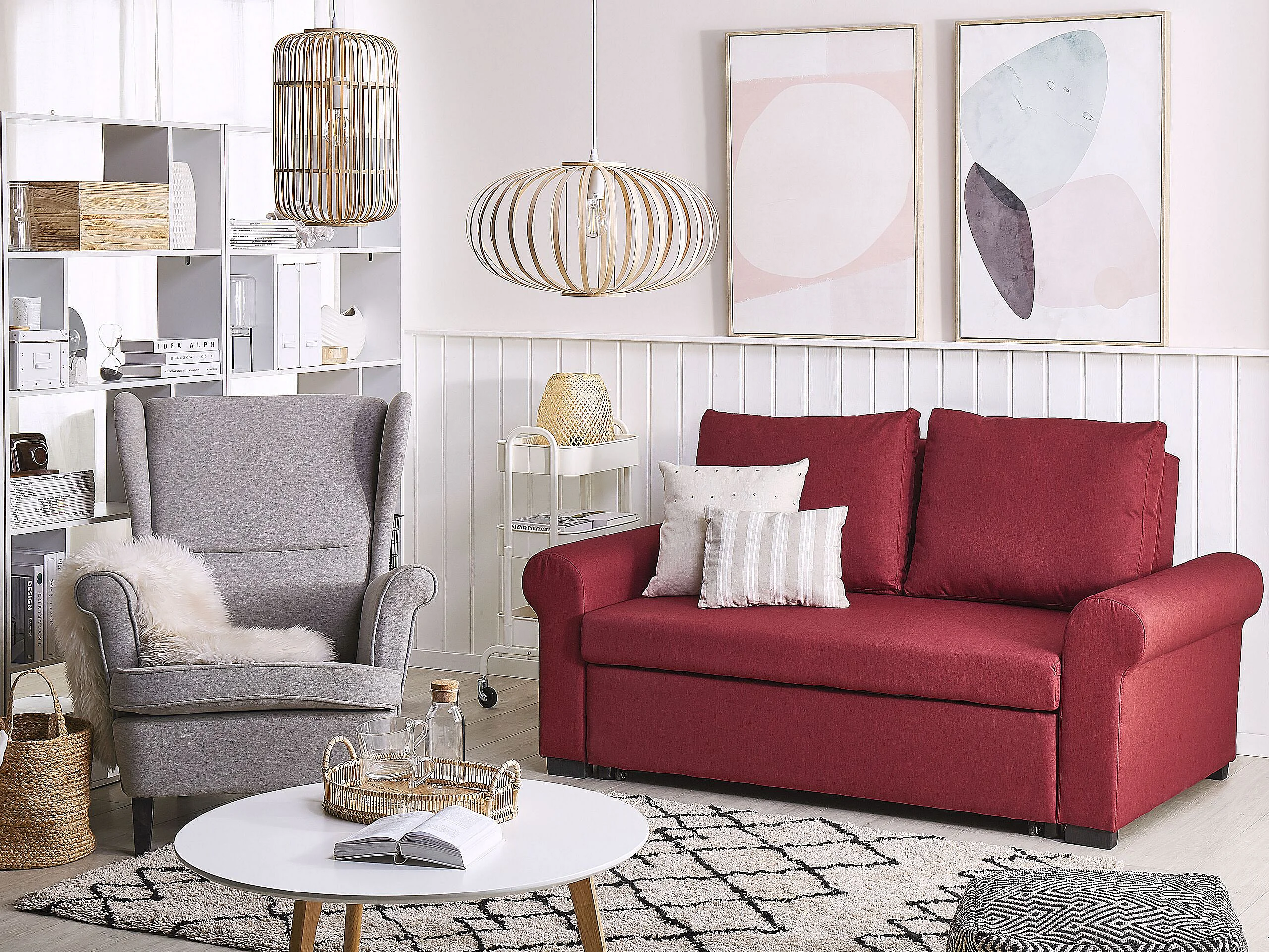Canapé-lit SILDA Tissu Rouge Bordeaux 2 places