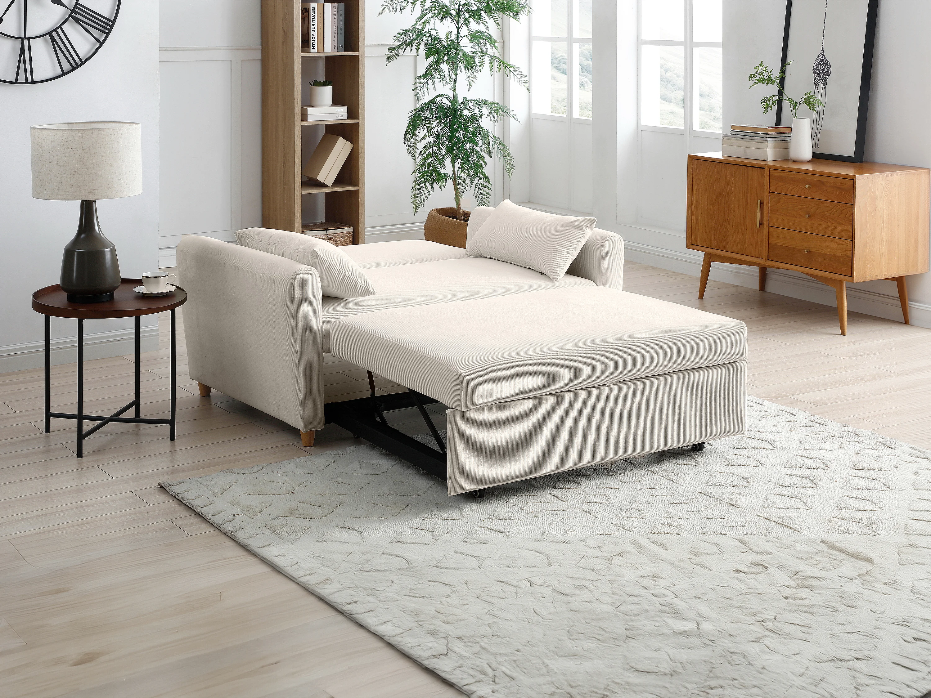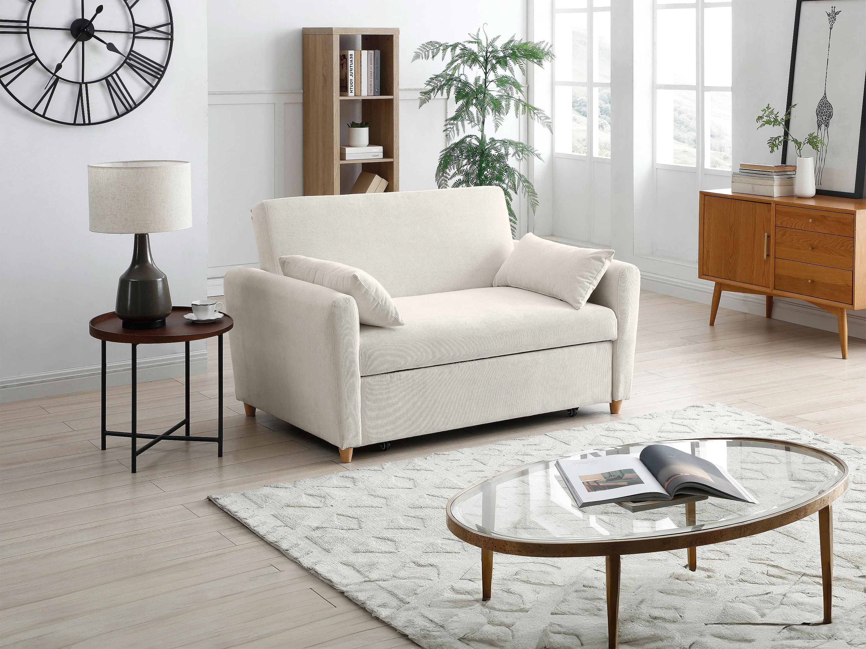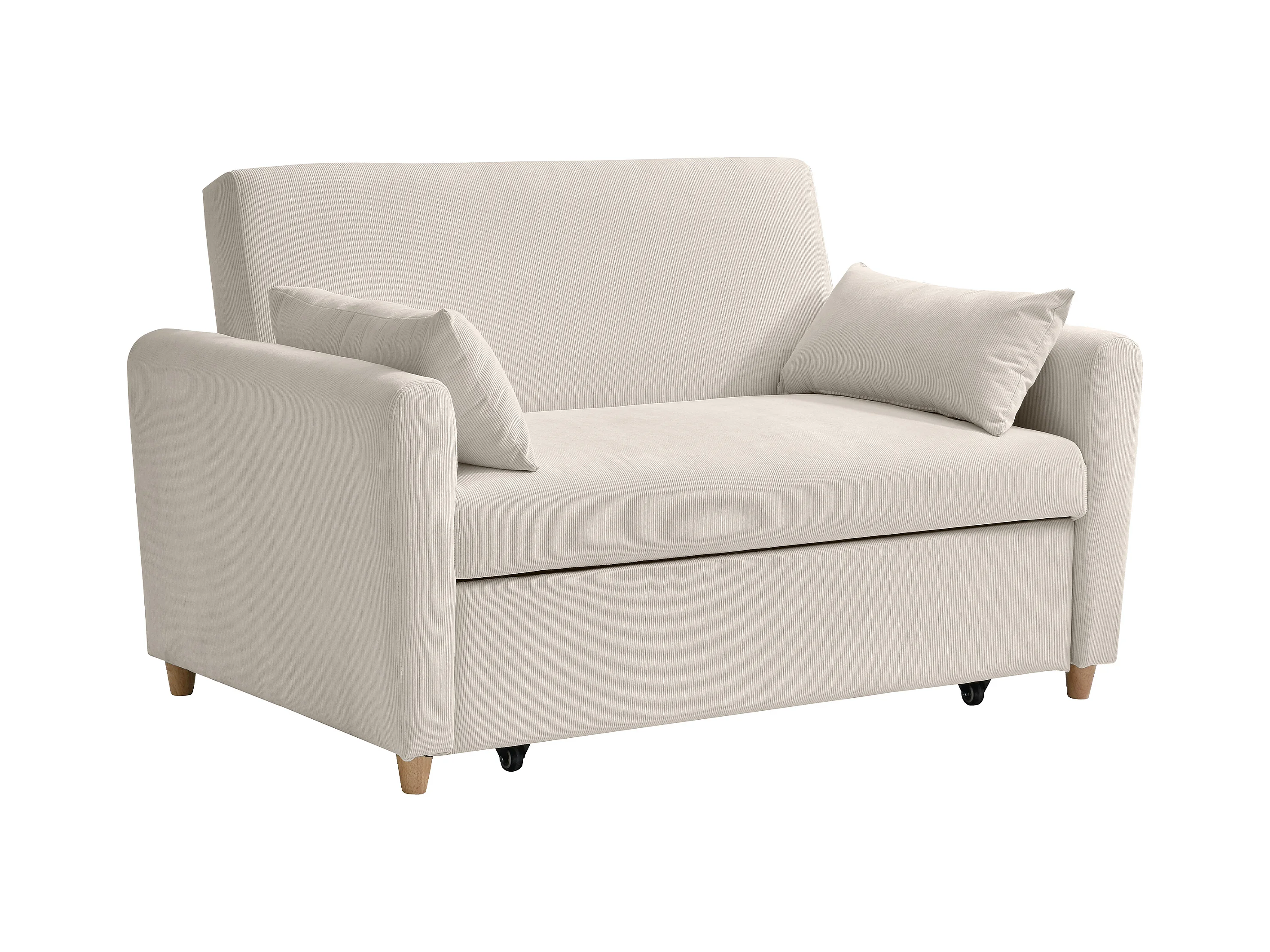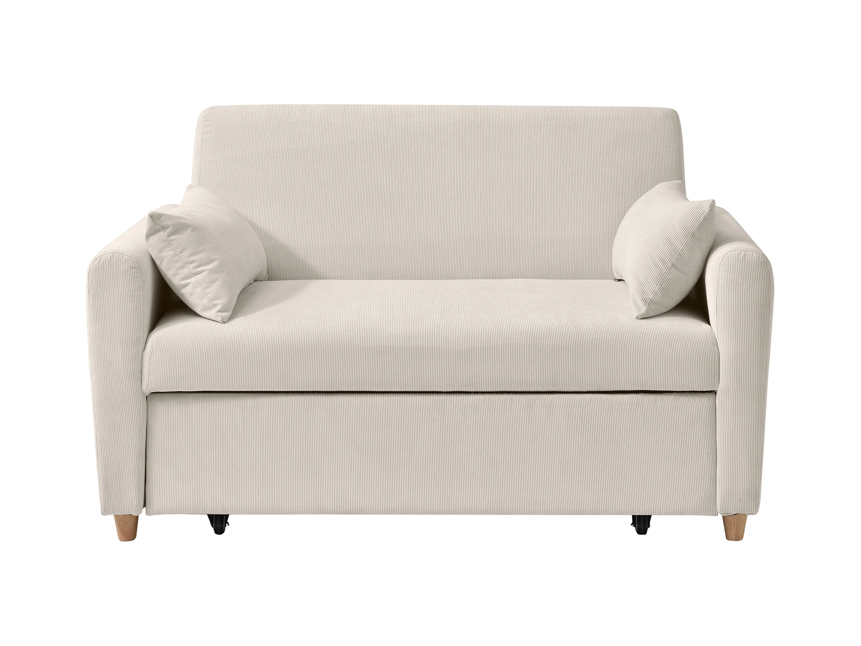 Canapé 2 places convertible en velours côtelé beige AYLA