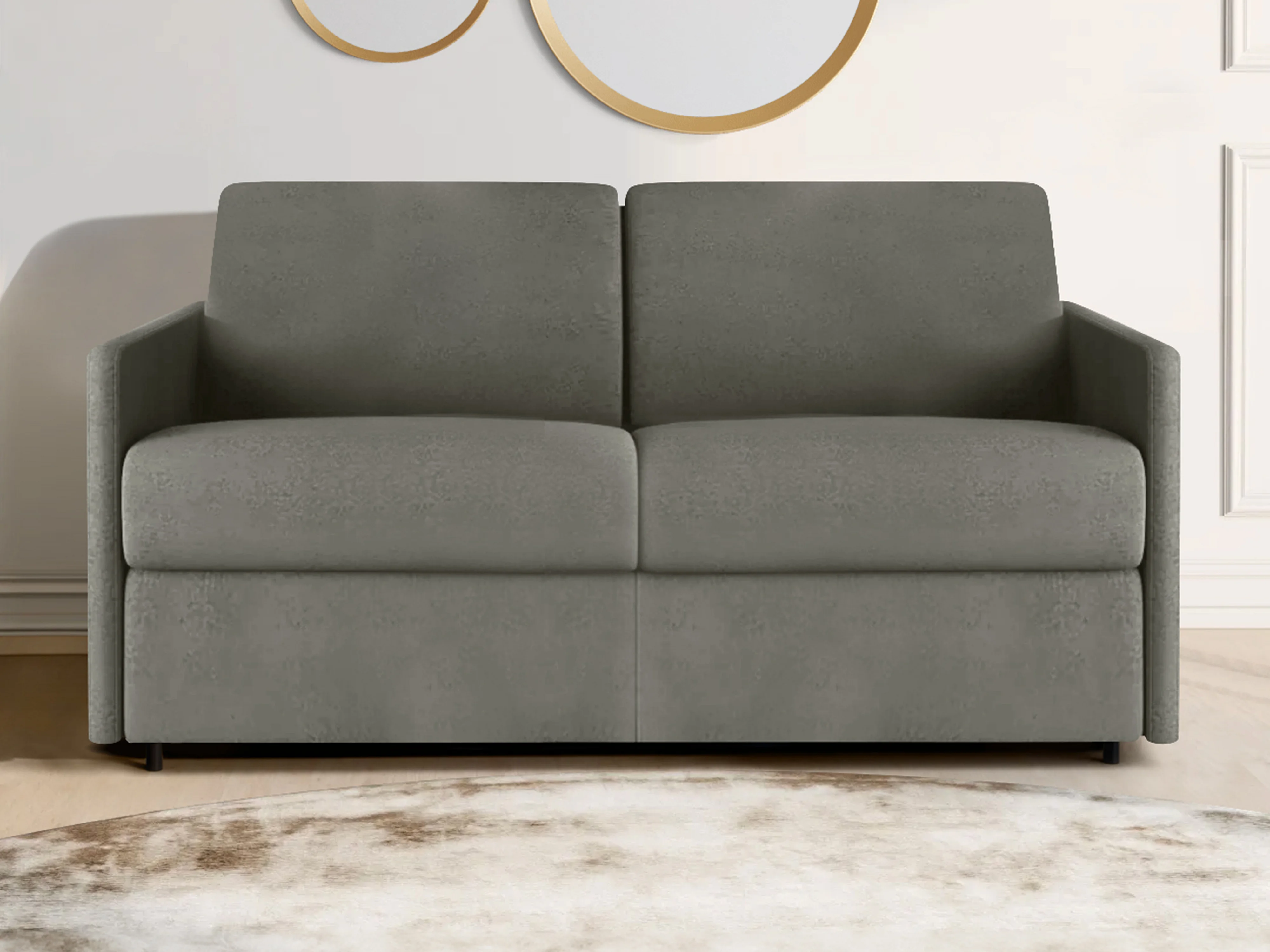 Canapé 2 places convertible express en tissu gris clair - Couchage 120 cm - Matelas 14 cm CALIFE