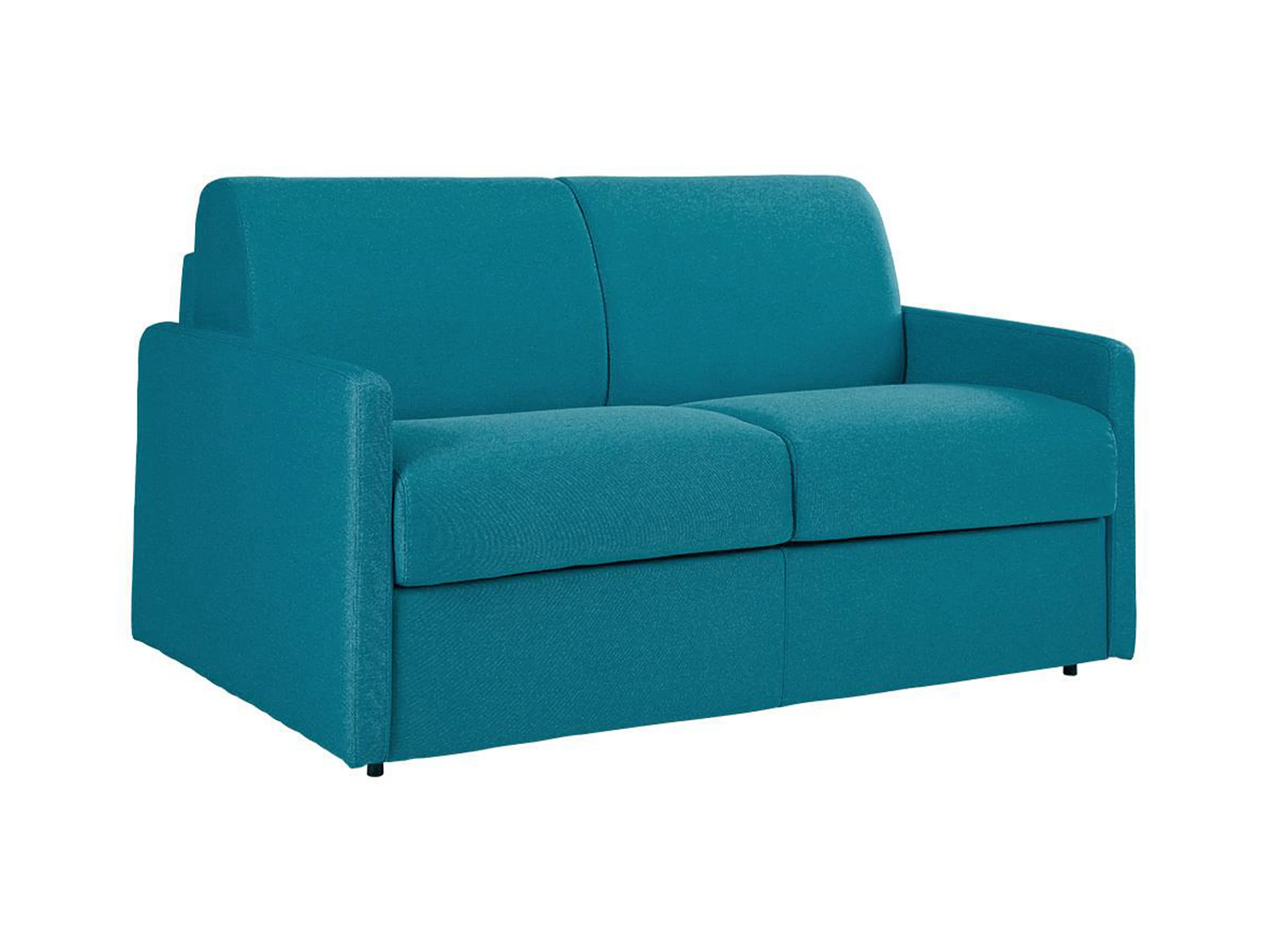 Canapé 2 places convertible express en tissu bleu turquoise - Couchage 120 cm - Matelas 18 cm CALIFE