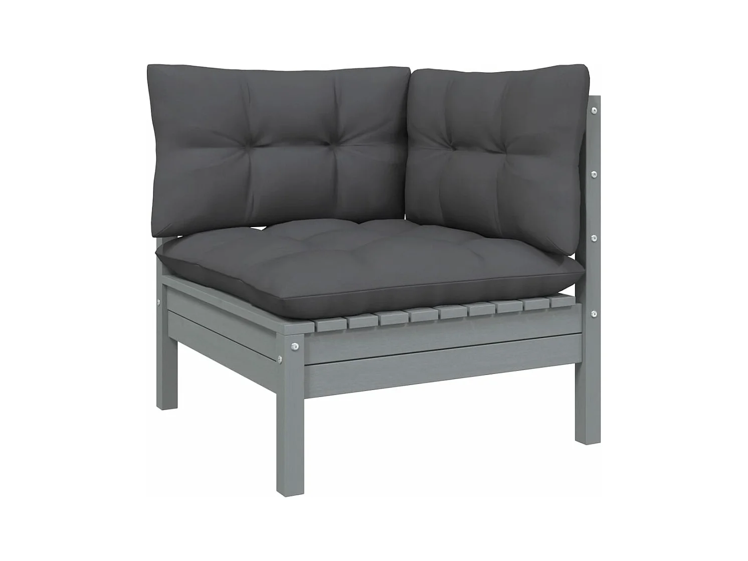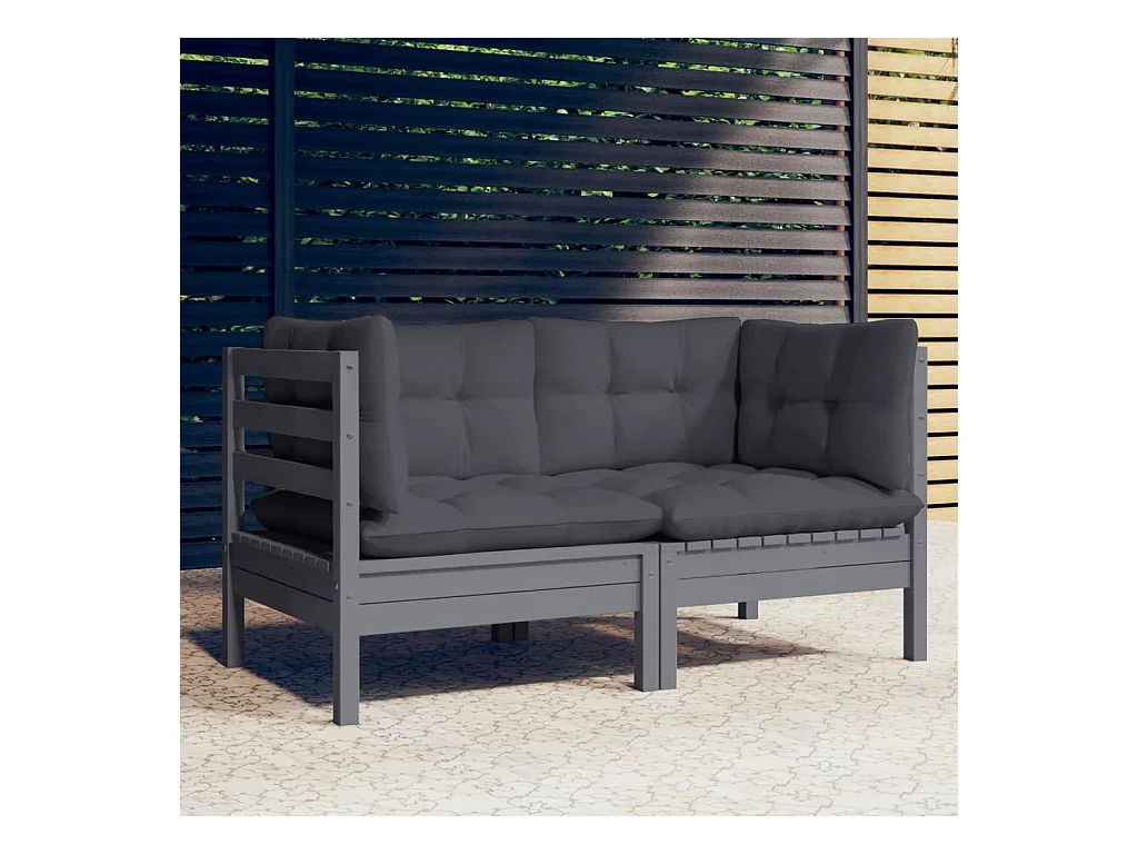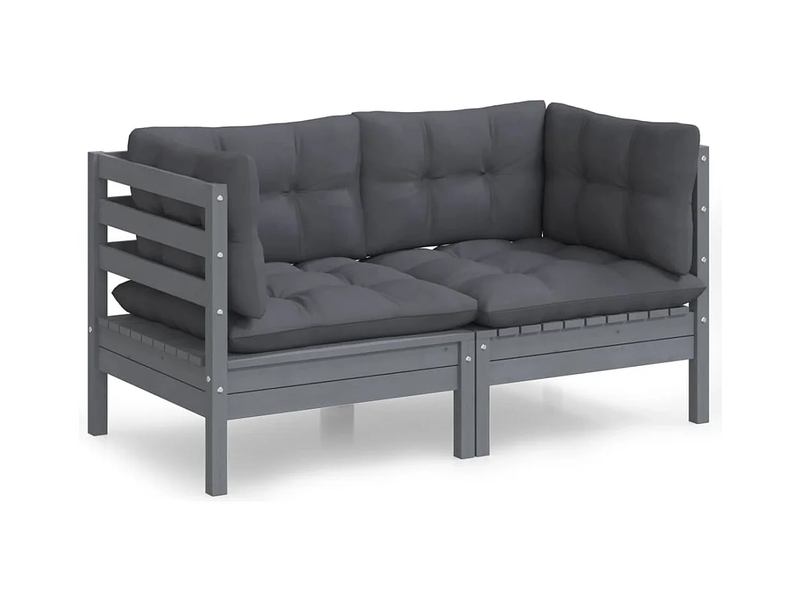 Canapé 2 places de jardin et coussins gris Bois de pin solide REO84859