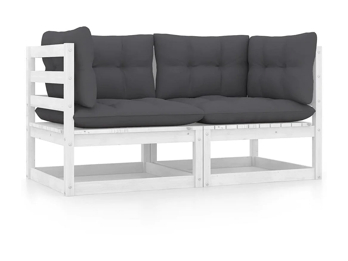 Canapés centraux avec coussins 2 pcs blanc bois de pin massif