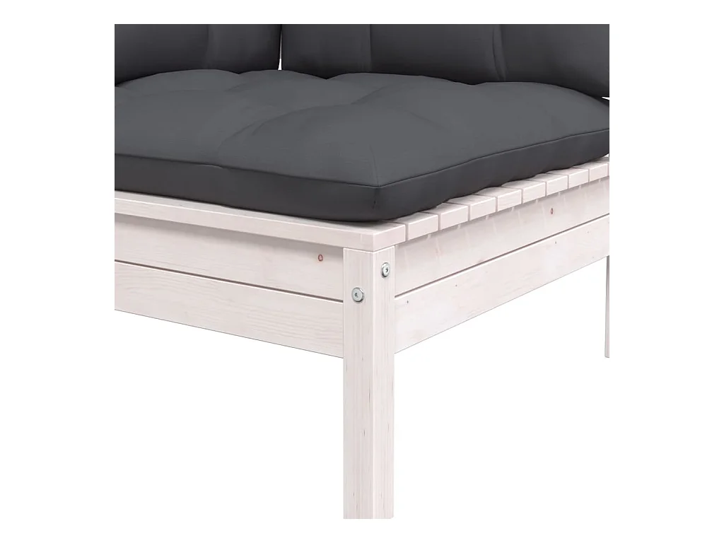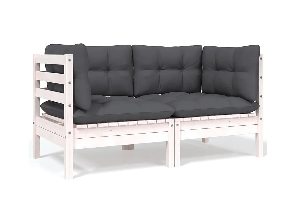 Canapé 2 places de jardin et coussins Blanc Bois de pin solide FR15399