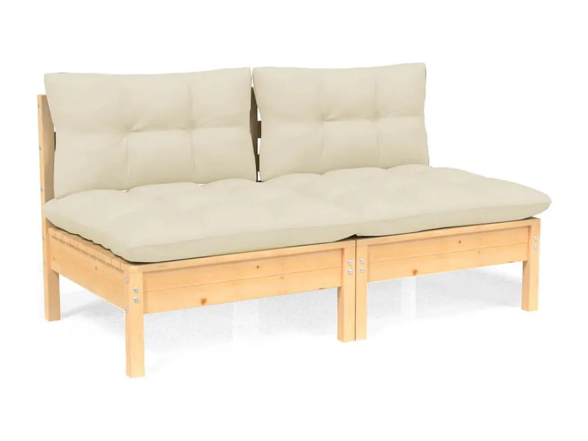 Canapés de jardin avec coussins 2pcs bois de pin massif