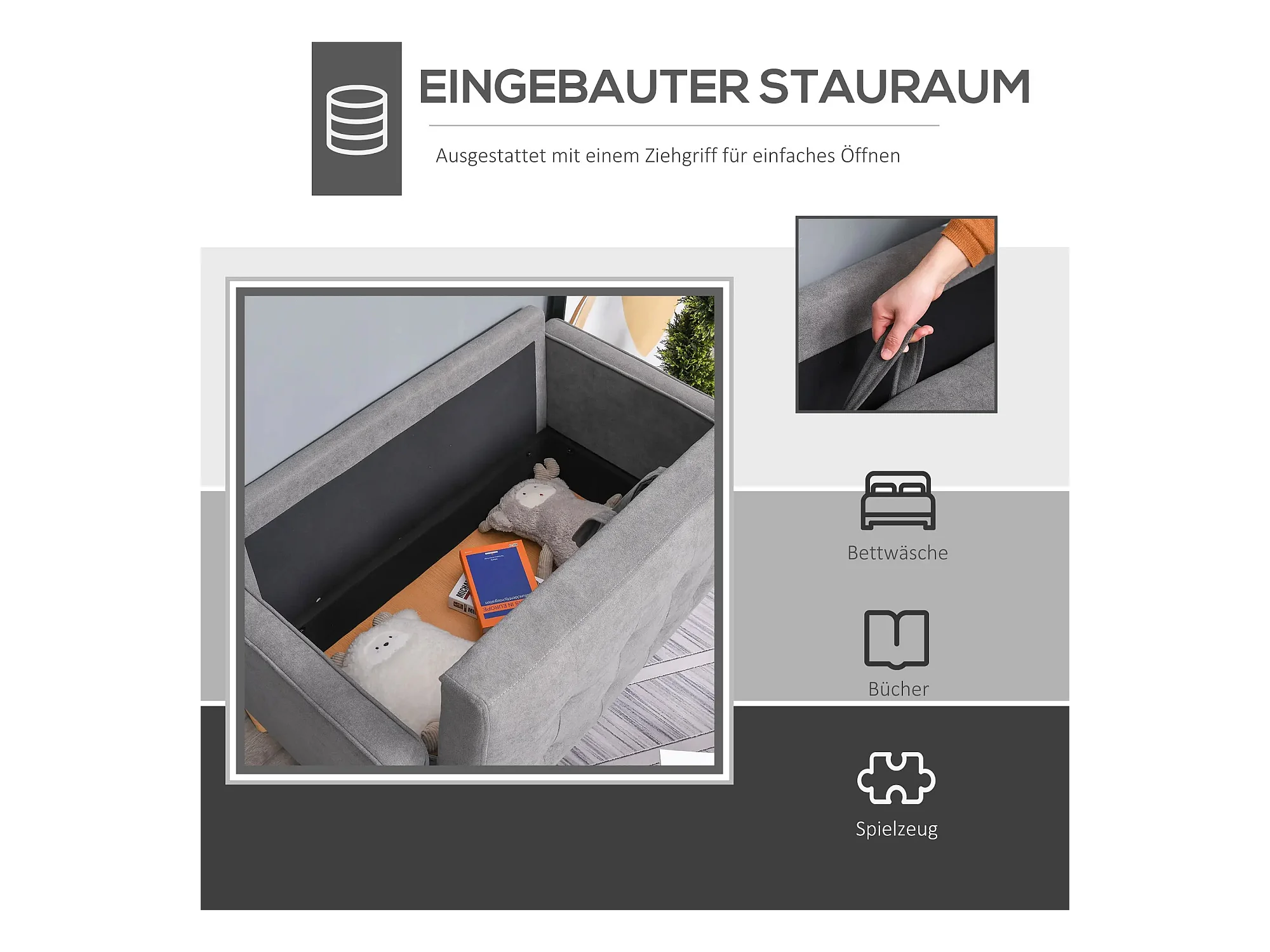 Canapé-lit 2 places, tissu lin, structure bois de caoutchouc, gris (147.5x75x85 cm)