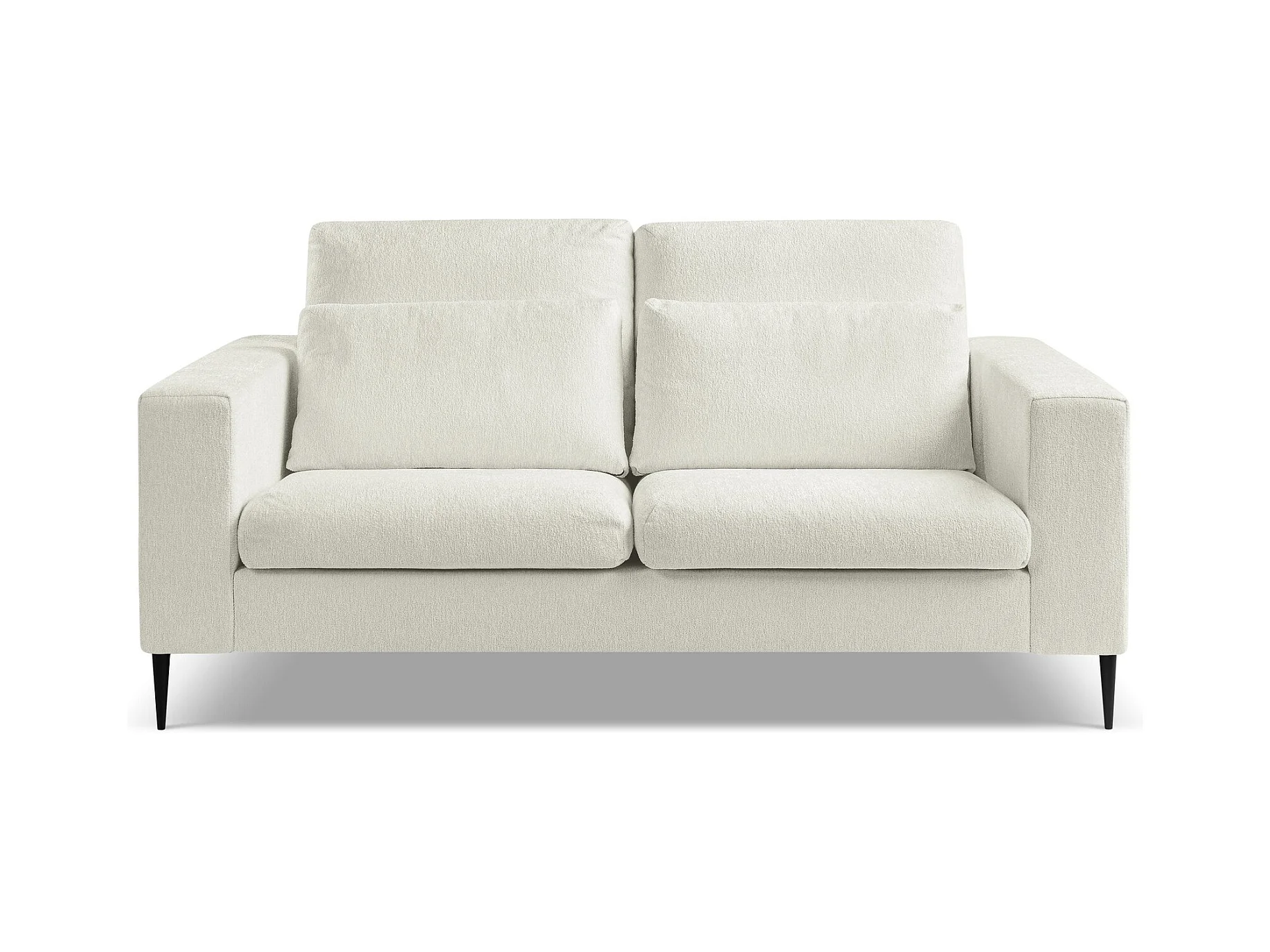 Canapé 2 places en tissu bouclette avec coussins écru