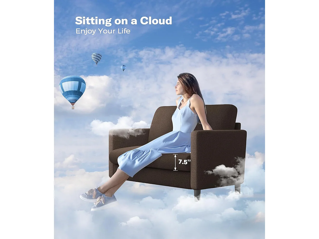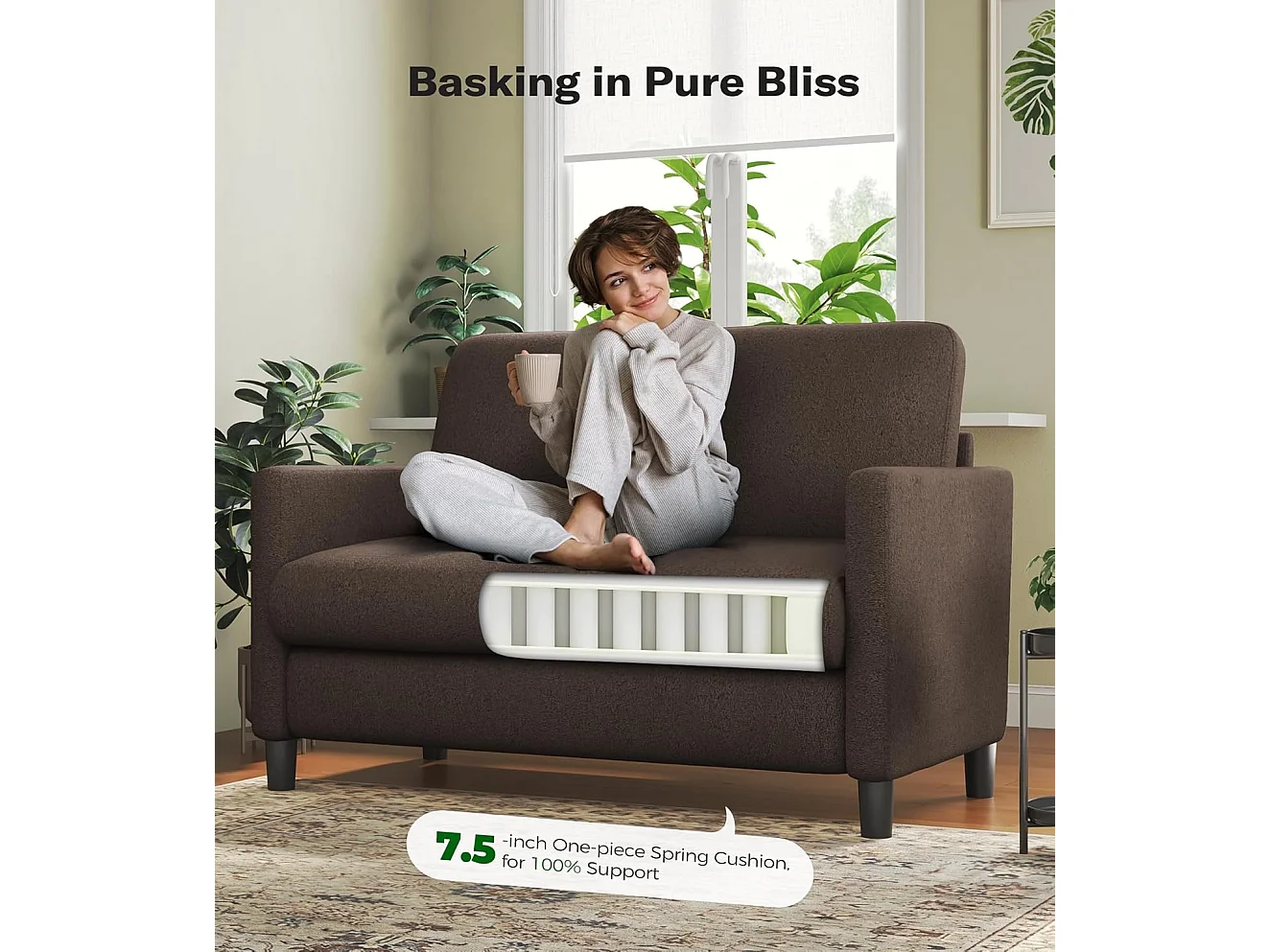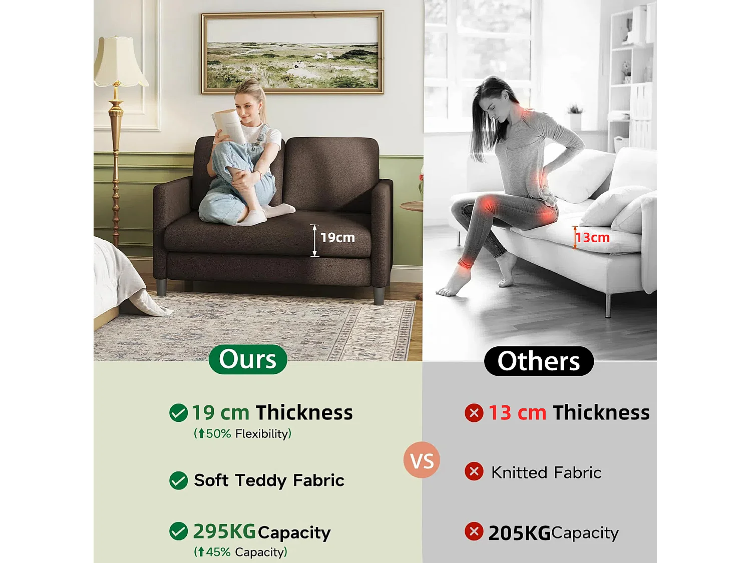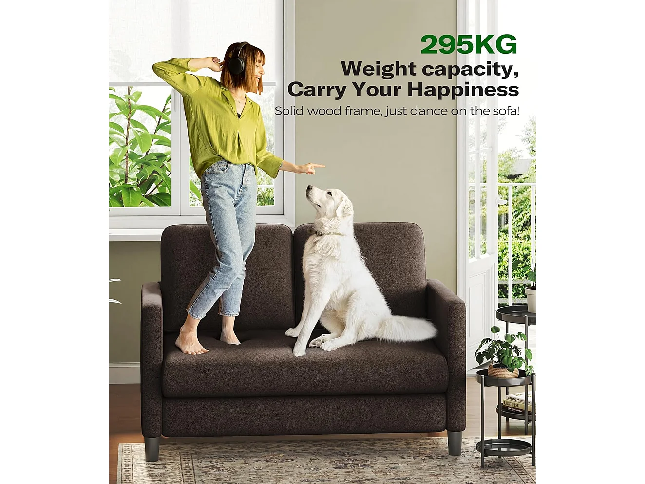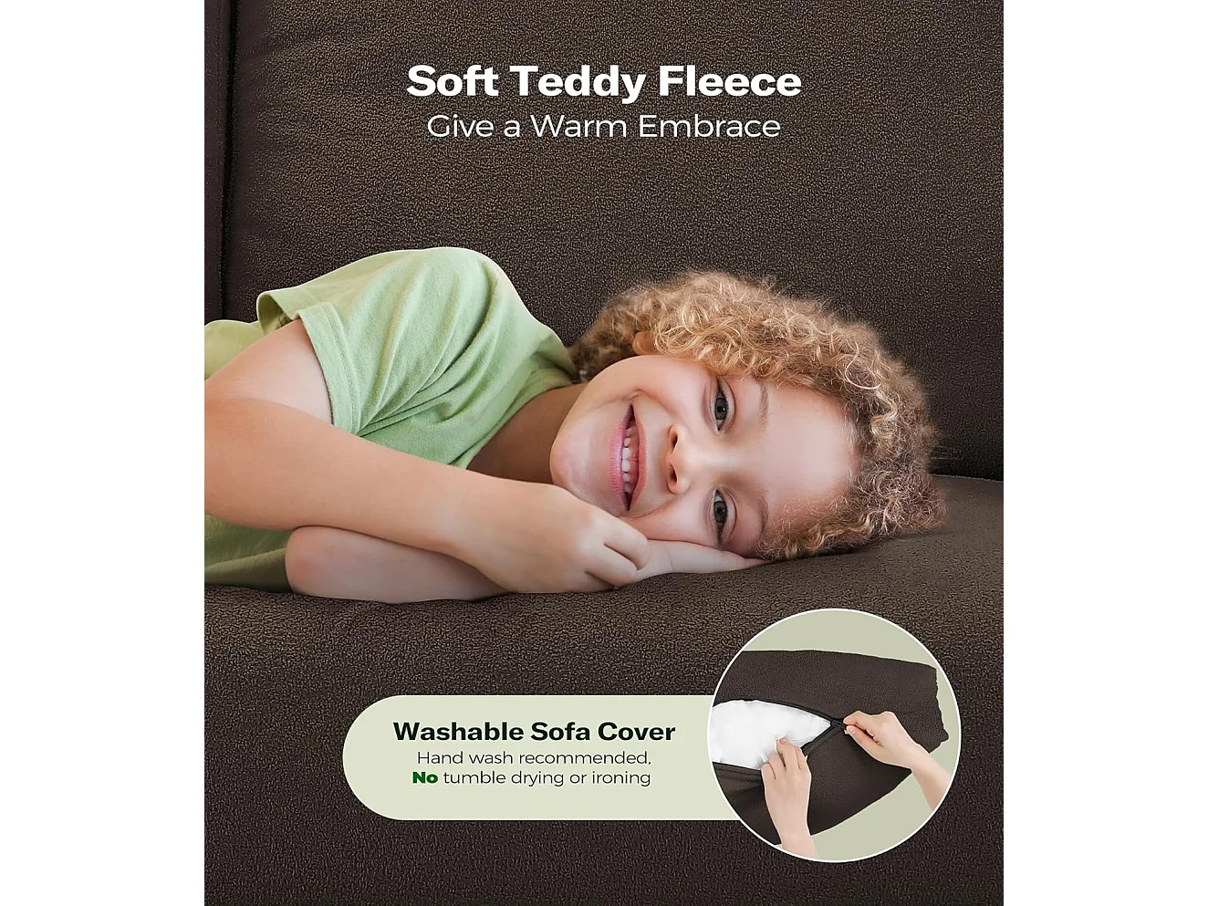 Canapé 2 places confort en Velours Teddy marron, avec assise profonde de 55cm et accoudoirs - 128x78x89cm