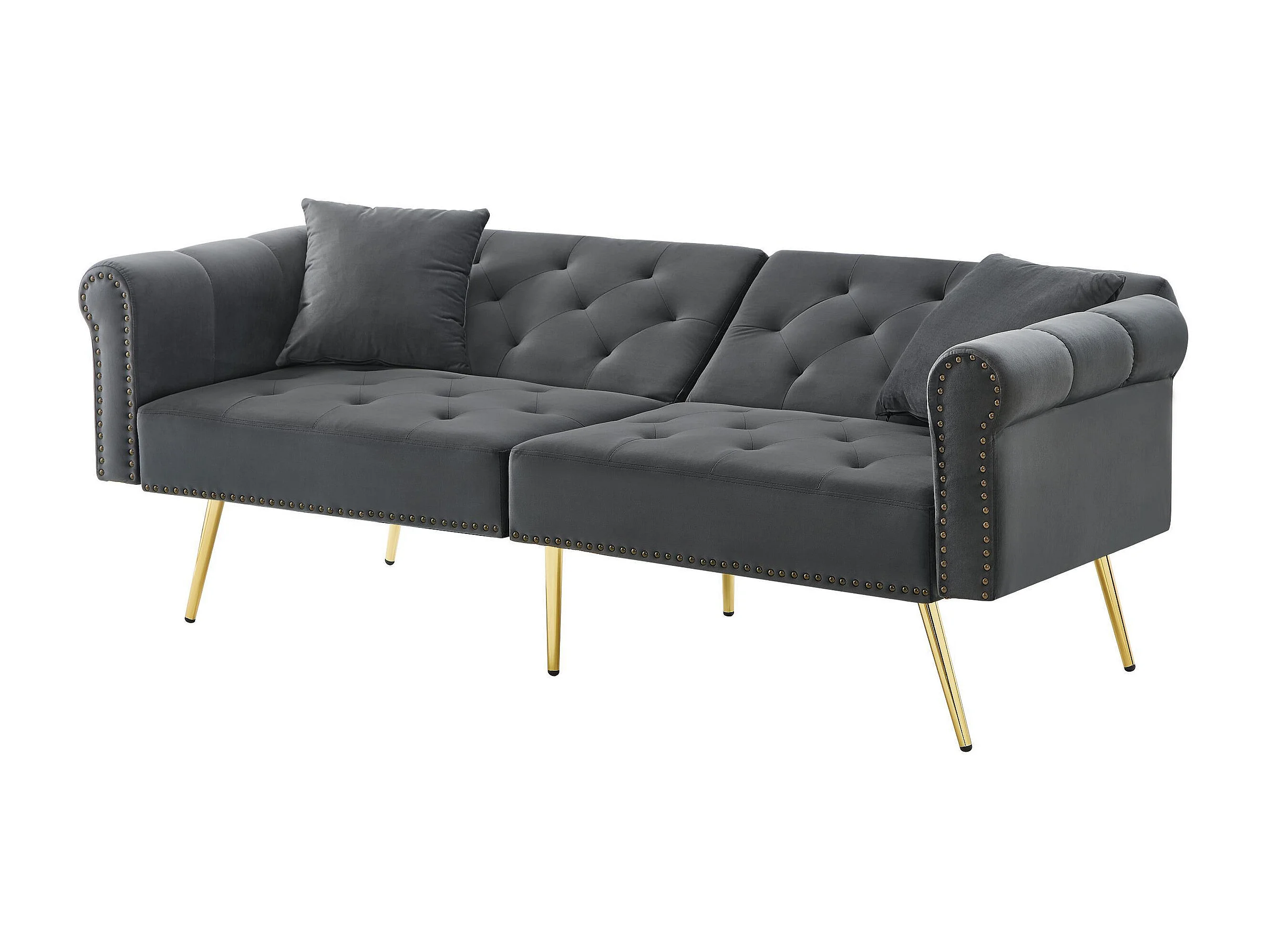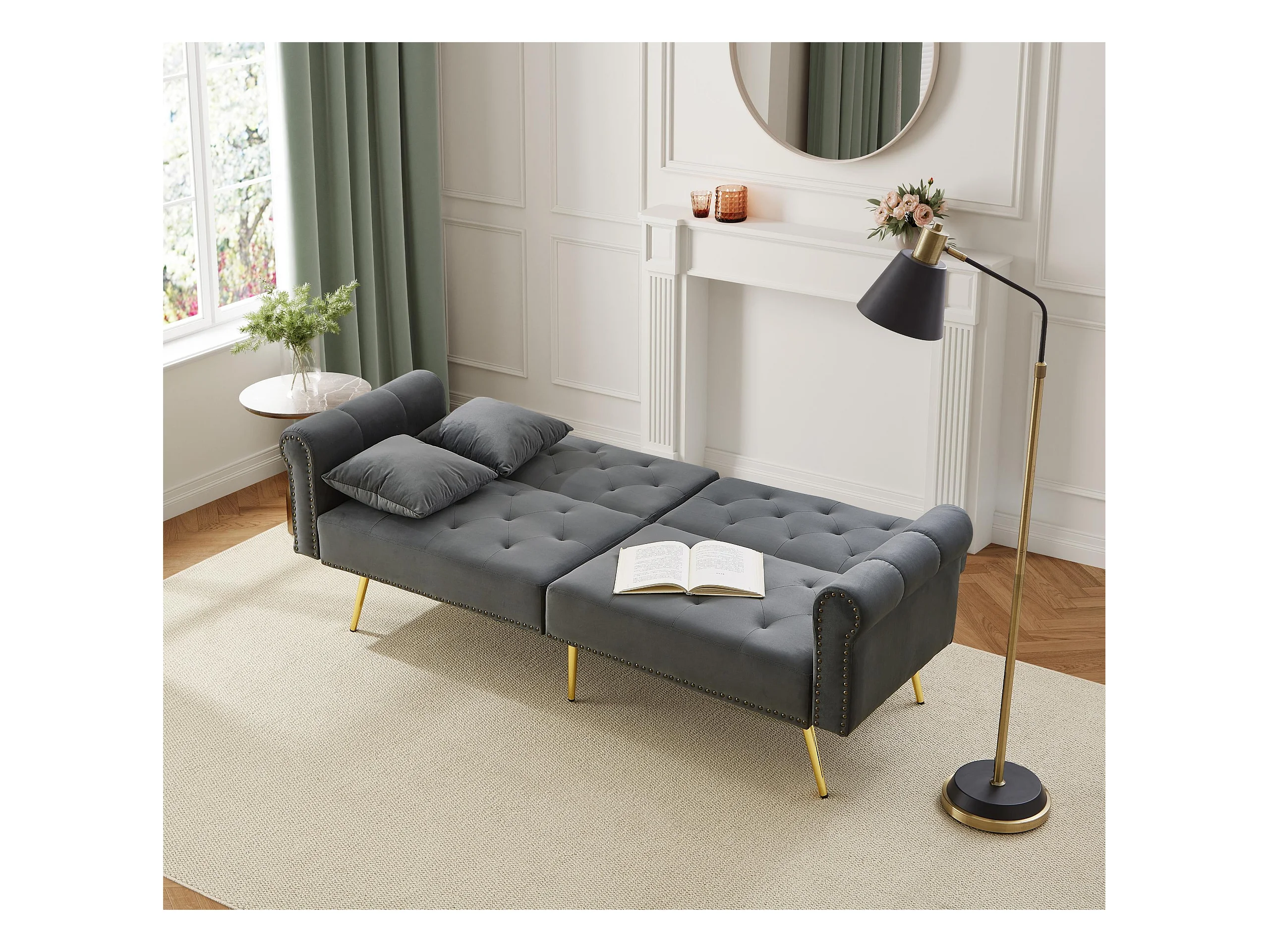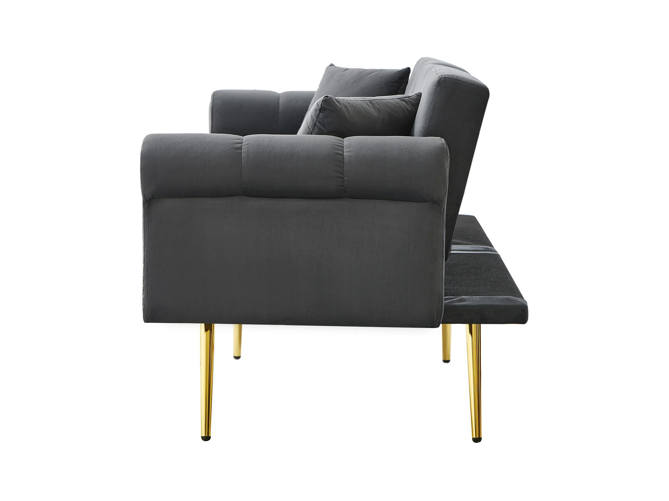 Canape 2 places gris - Canapé avec dossier réglable et accoudoirs - 6 pieds en métal - pour salon et chambre