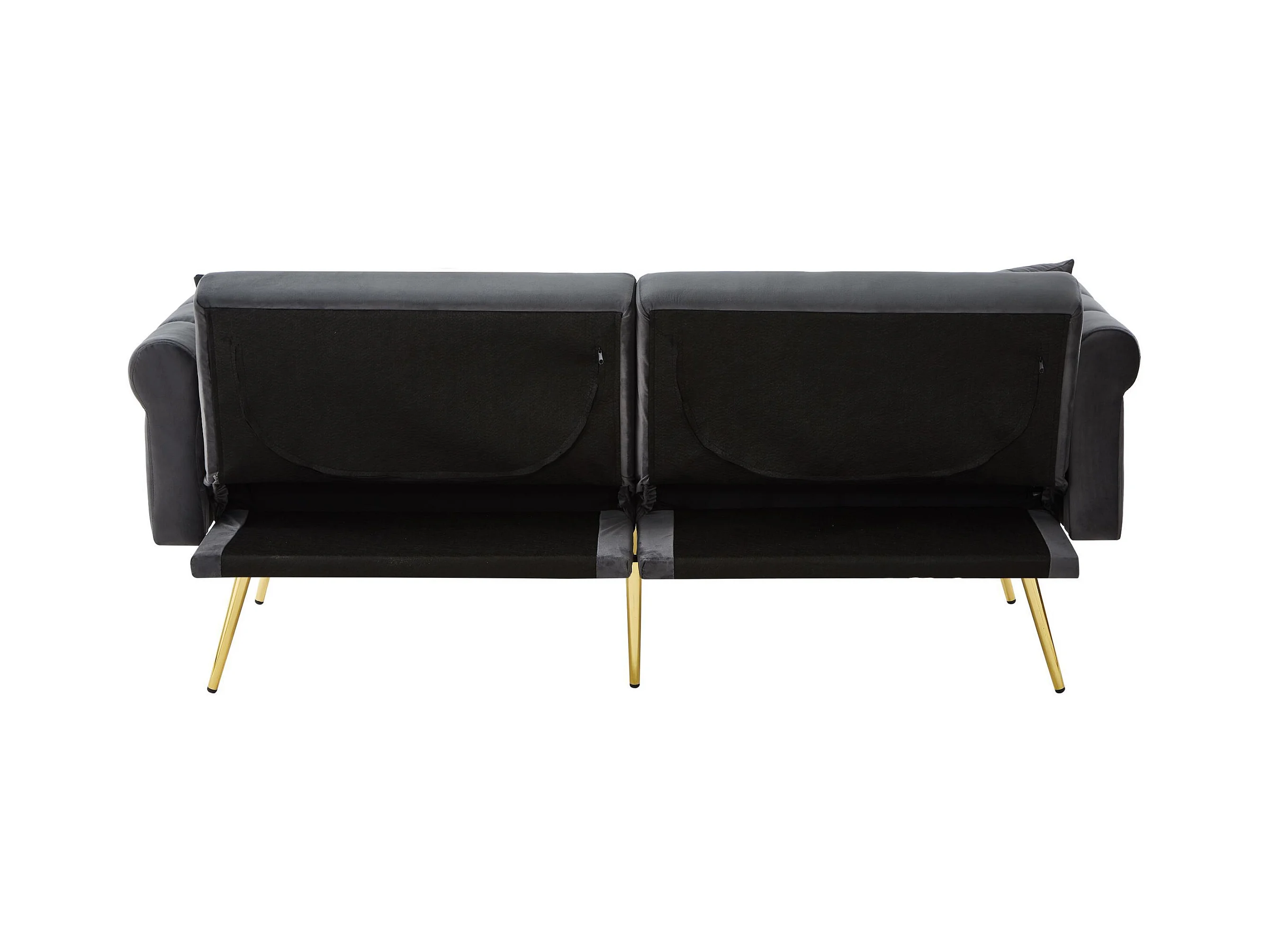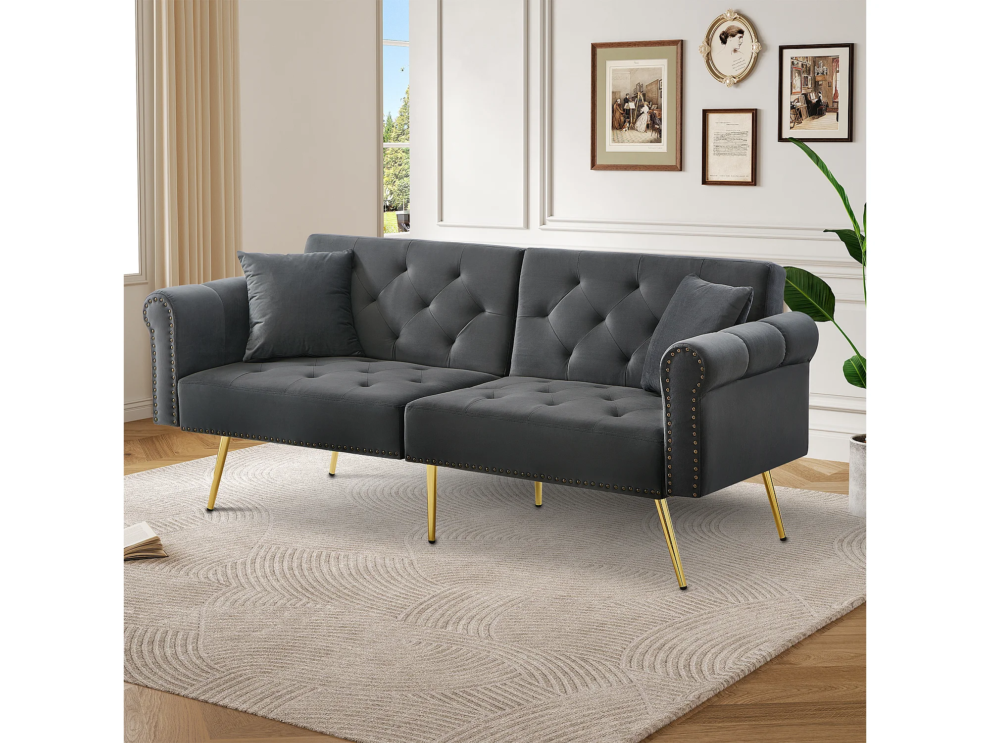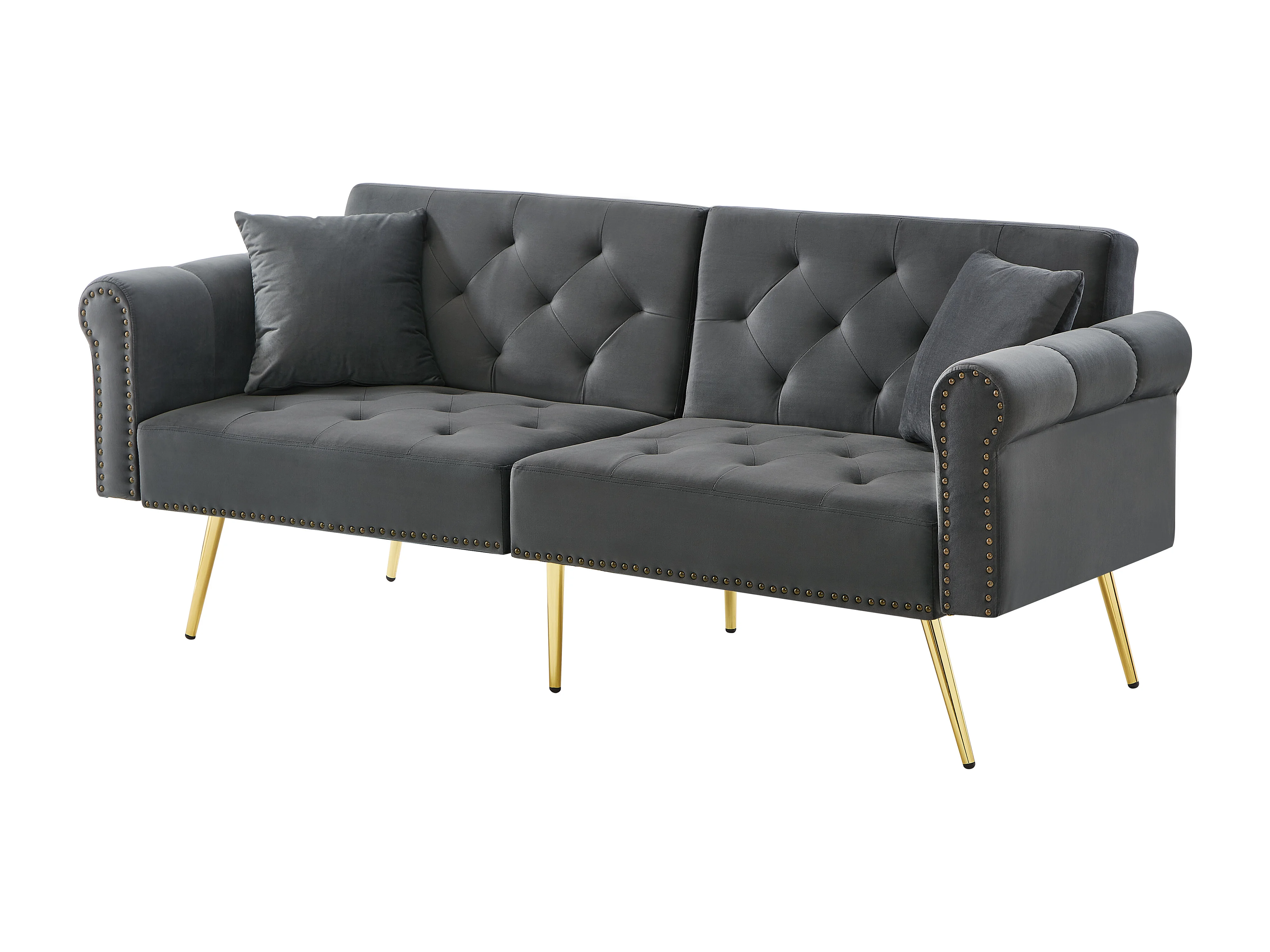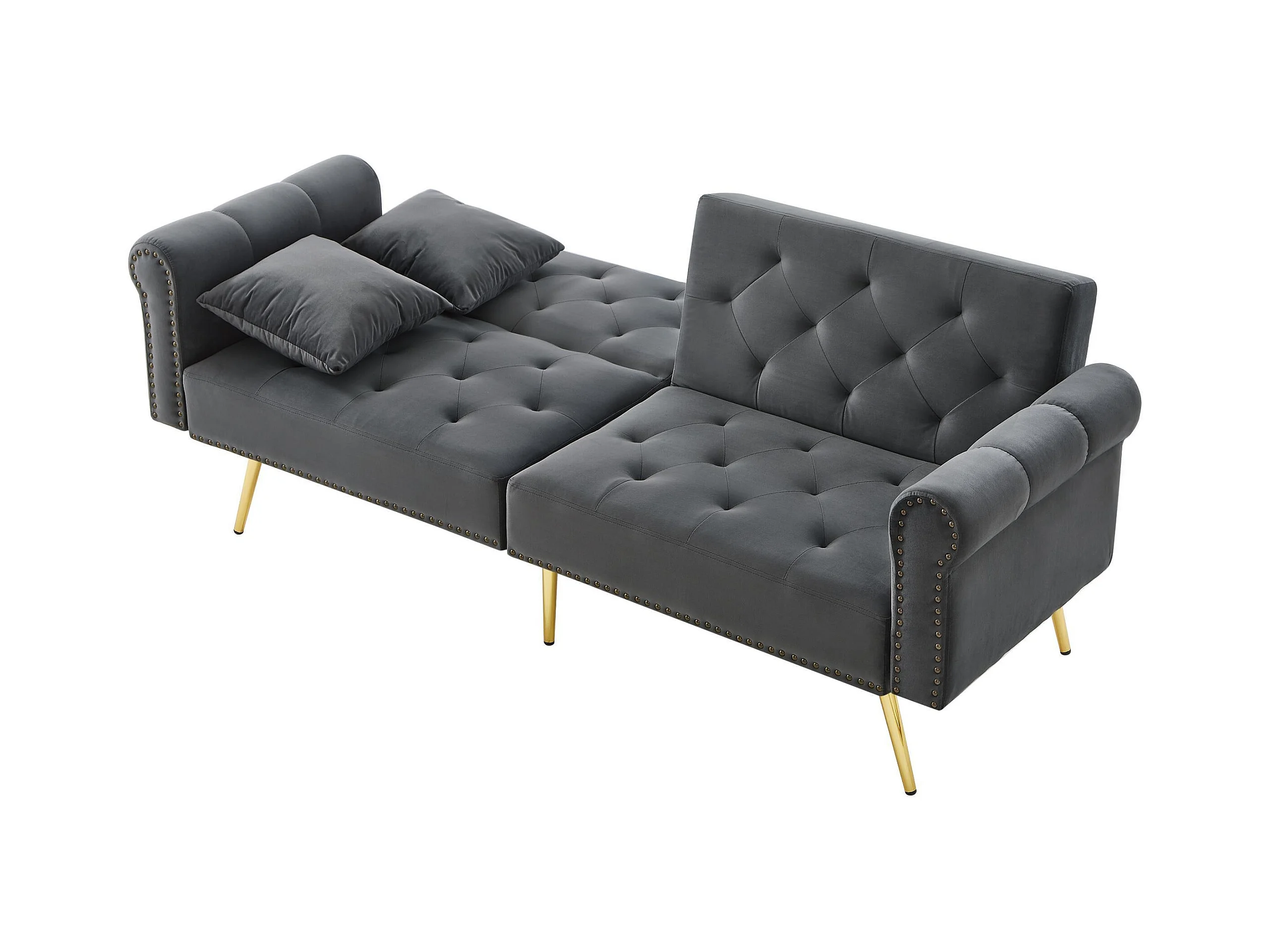 Canape 2 places gris - Canapé avec dossier réglable et accoudoirs - 6 pieds en métal - pour salon et chambre