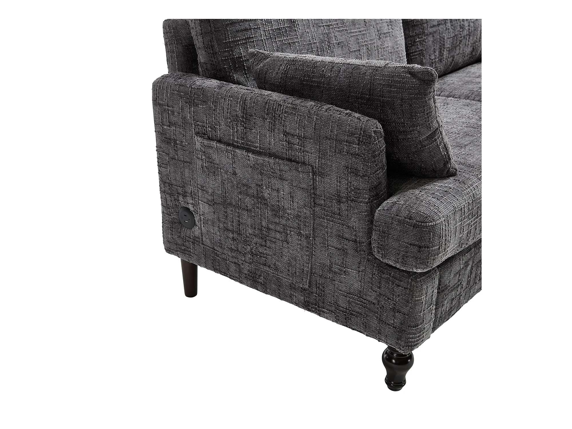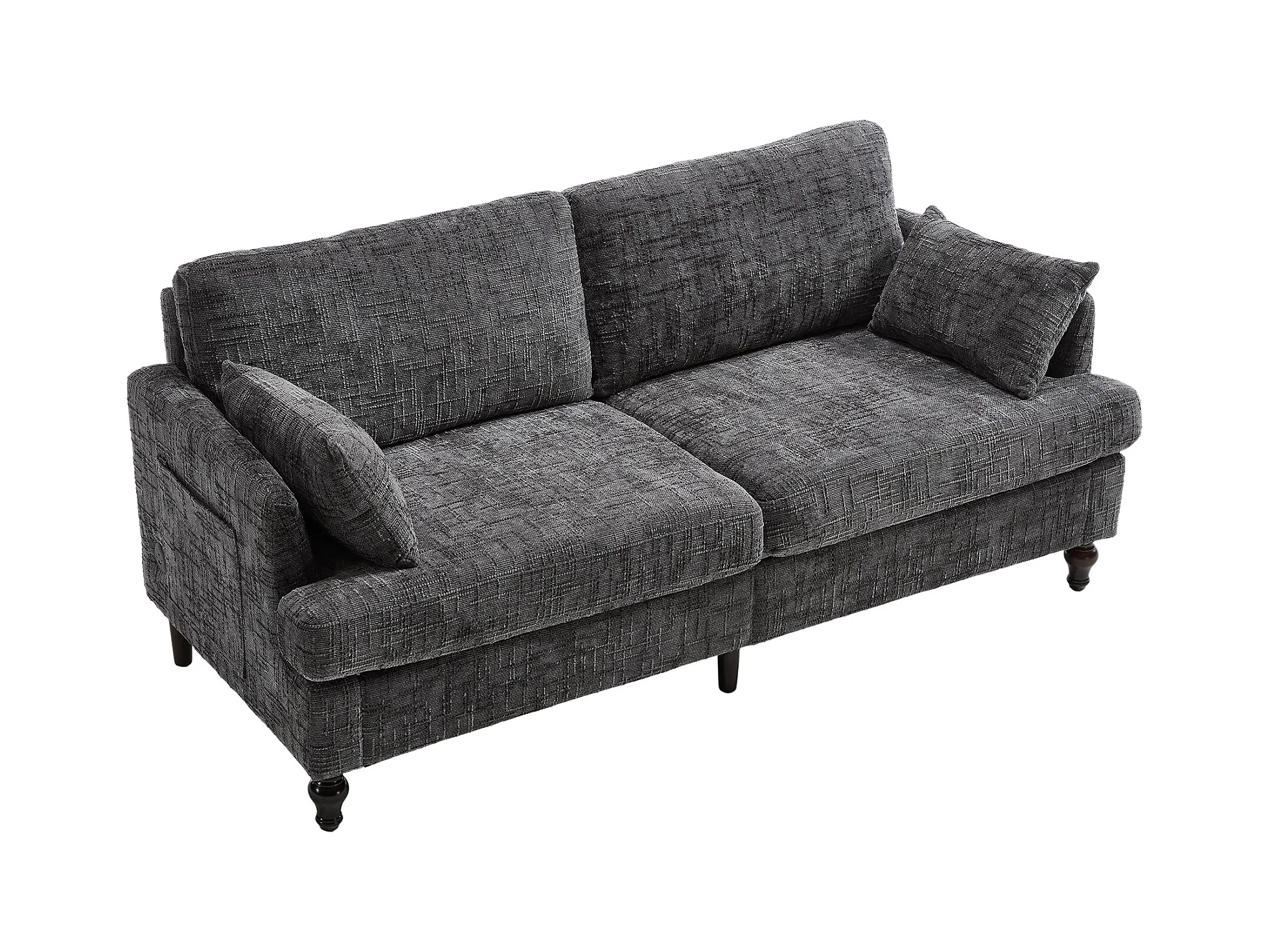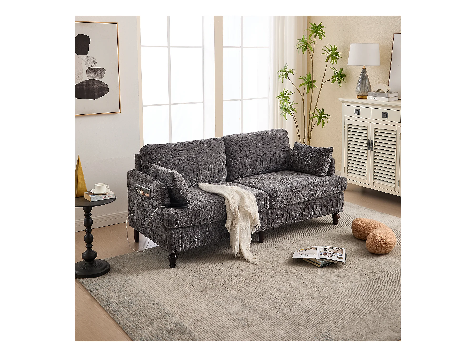 Canapé de salon 2 place en tissu chenille, Canapé moderne du milieu du siècle, avec sac de rangement, 178x75x87cm, Gris