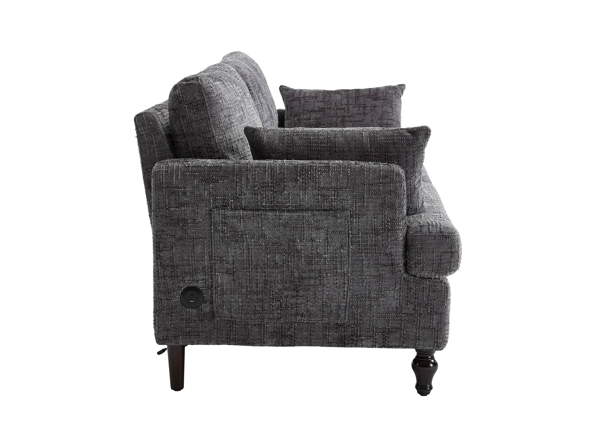 Canapé 2 places gris en chenille - Canapé droit avec rangement et éclairage LED - port de charge USB et pieds en bois