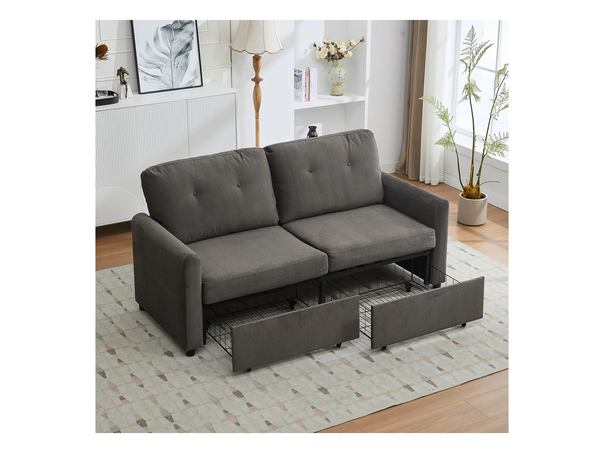 Canapé 2 places en tissu gris clair avec 2 tiroirs de rangement - Style moderne