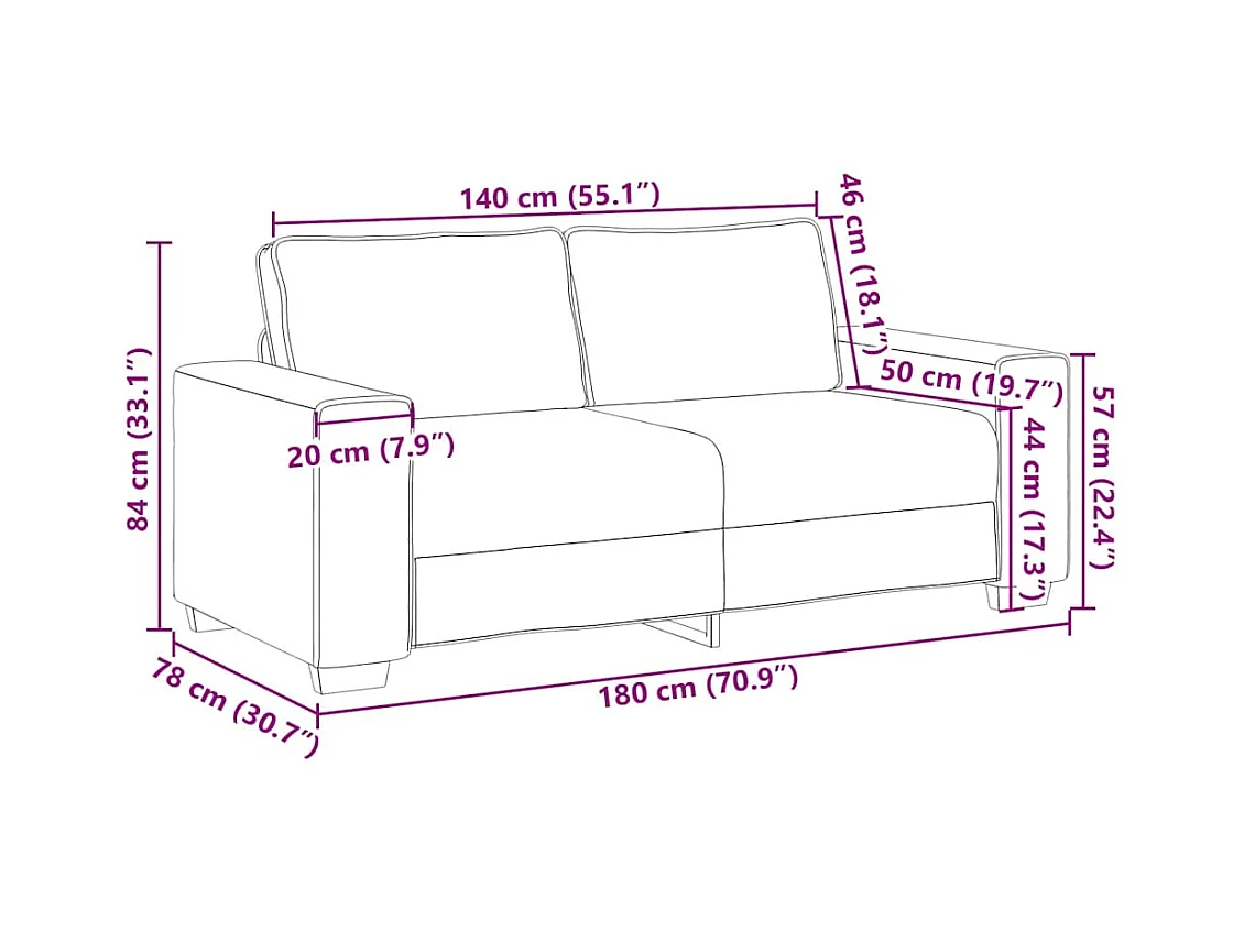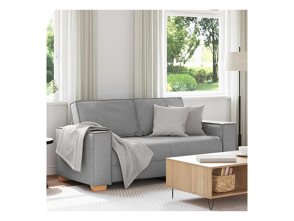 Sofa à 2 places avec accoudoirs Gris foncé Acier et tissu