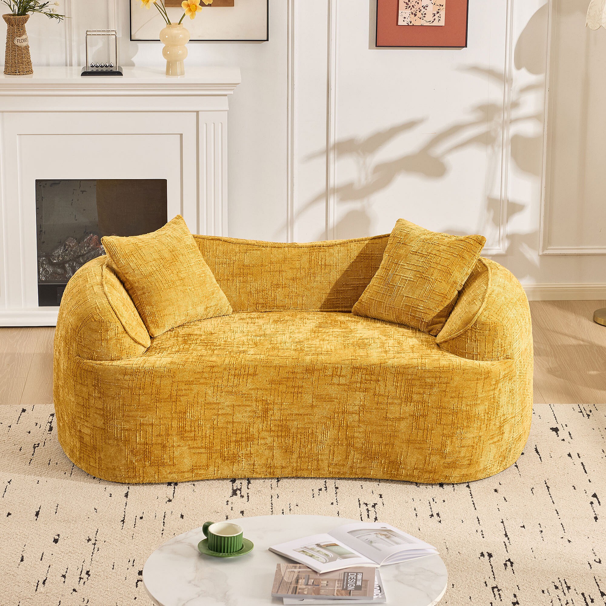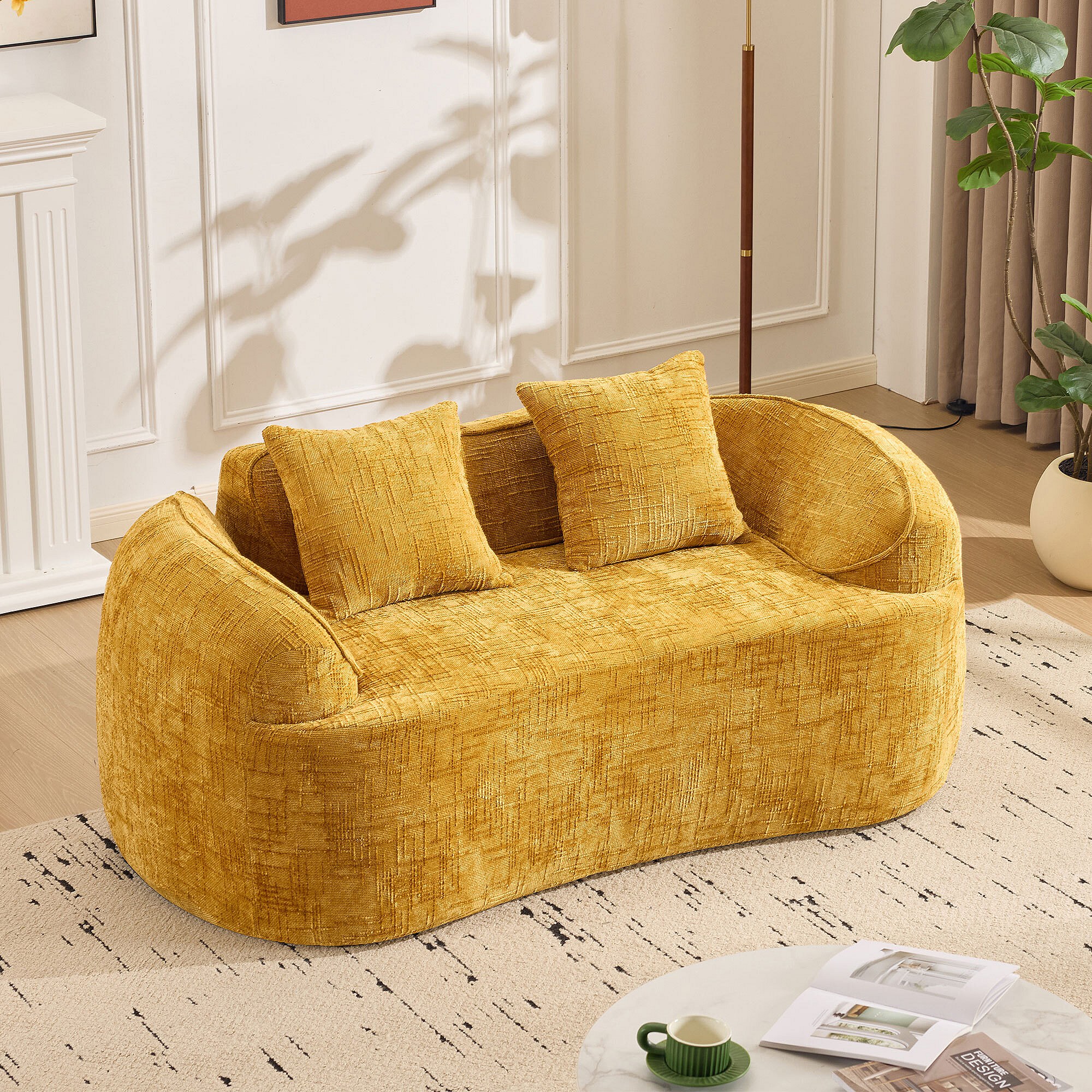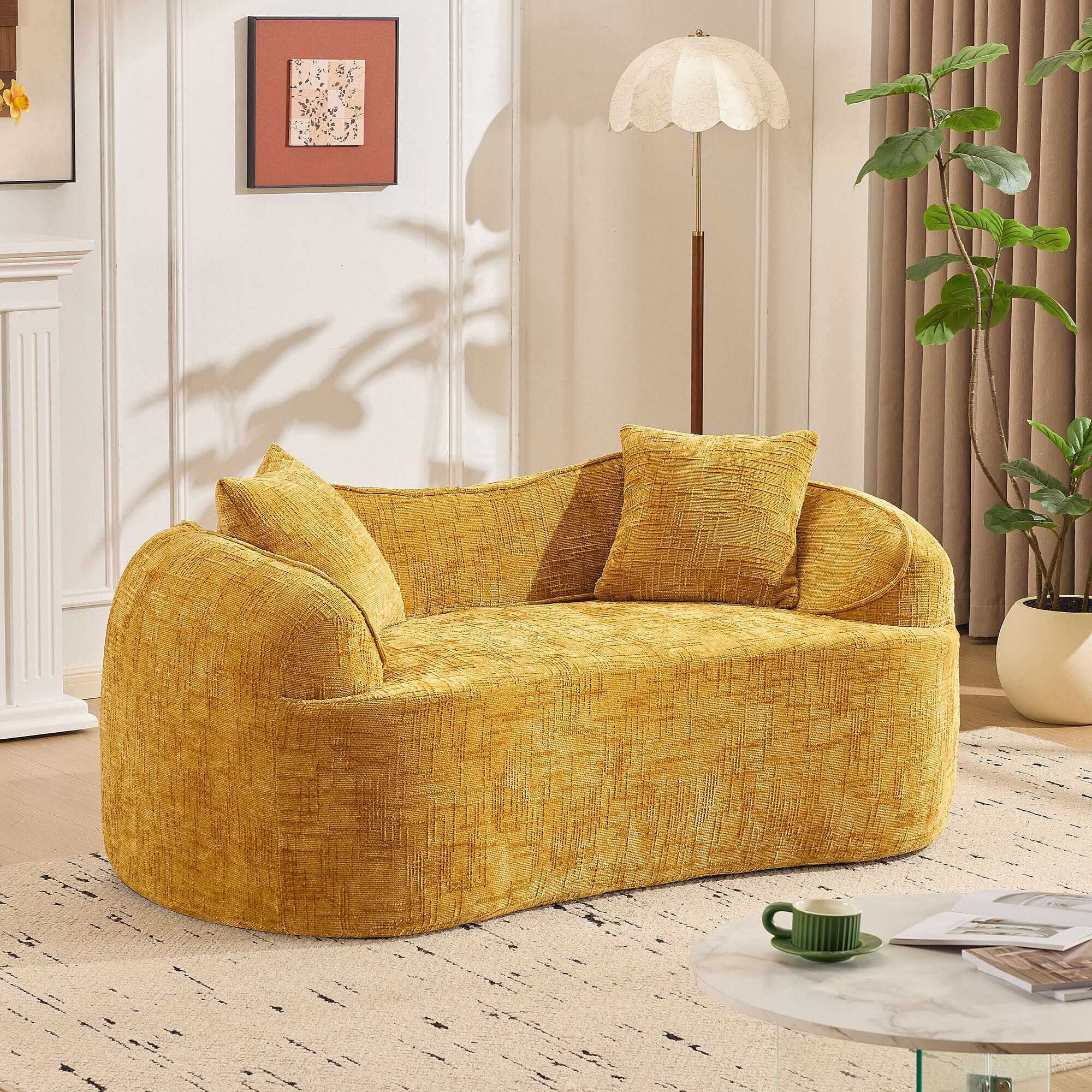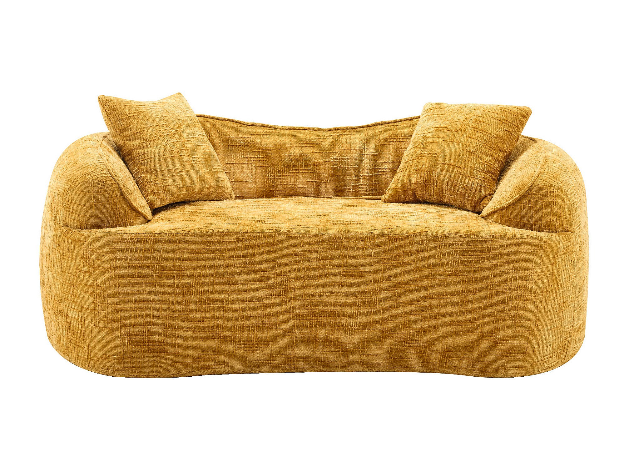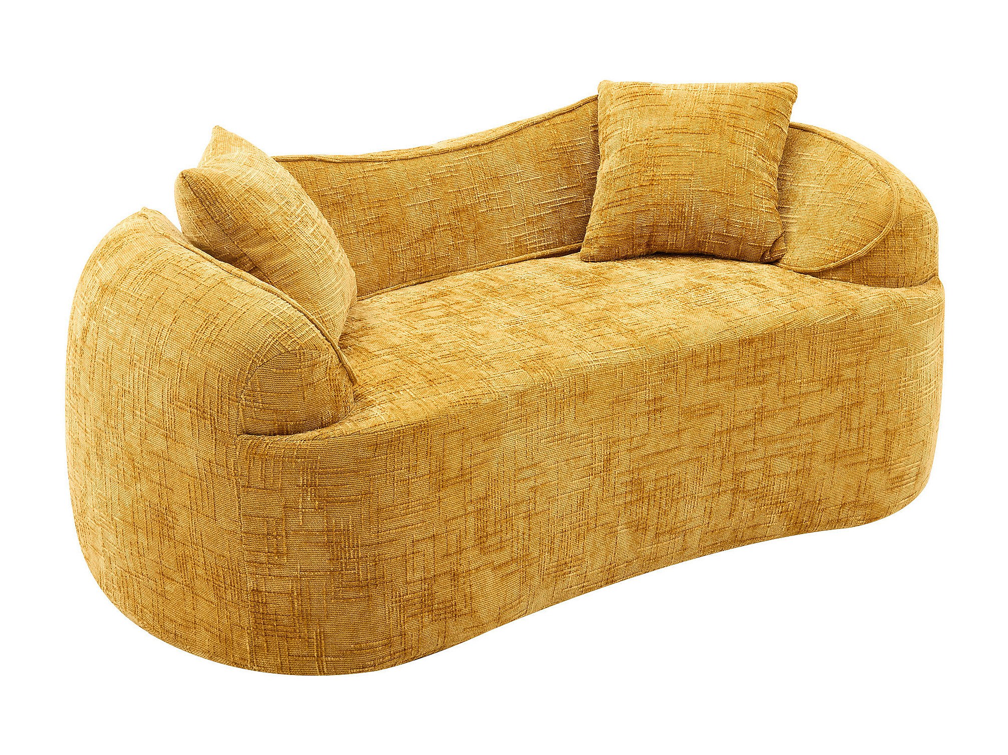 Canapé 2 places jaune - Canapé droit avec 2 coussins et accoudoirs - chenille