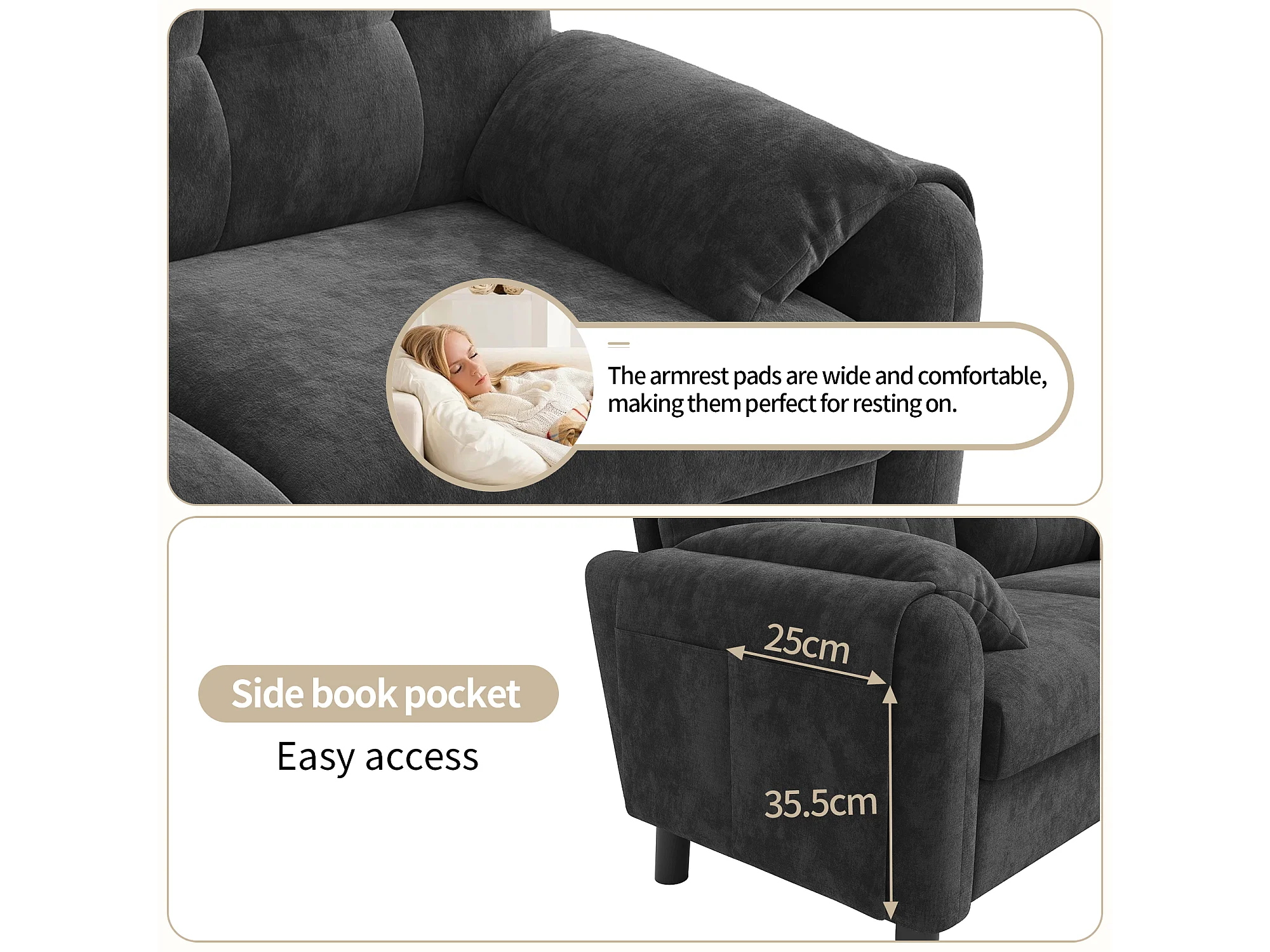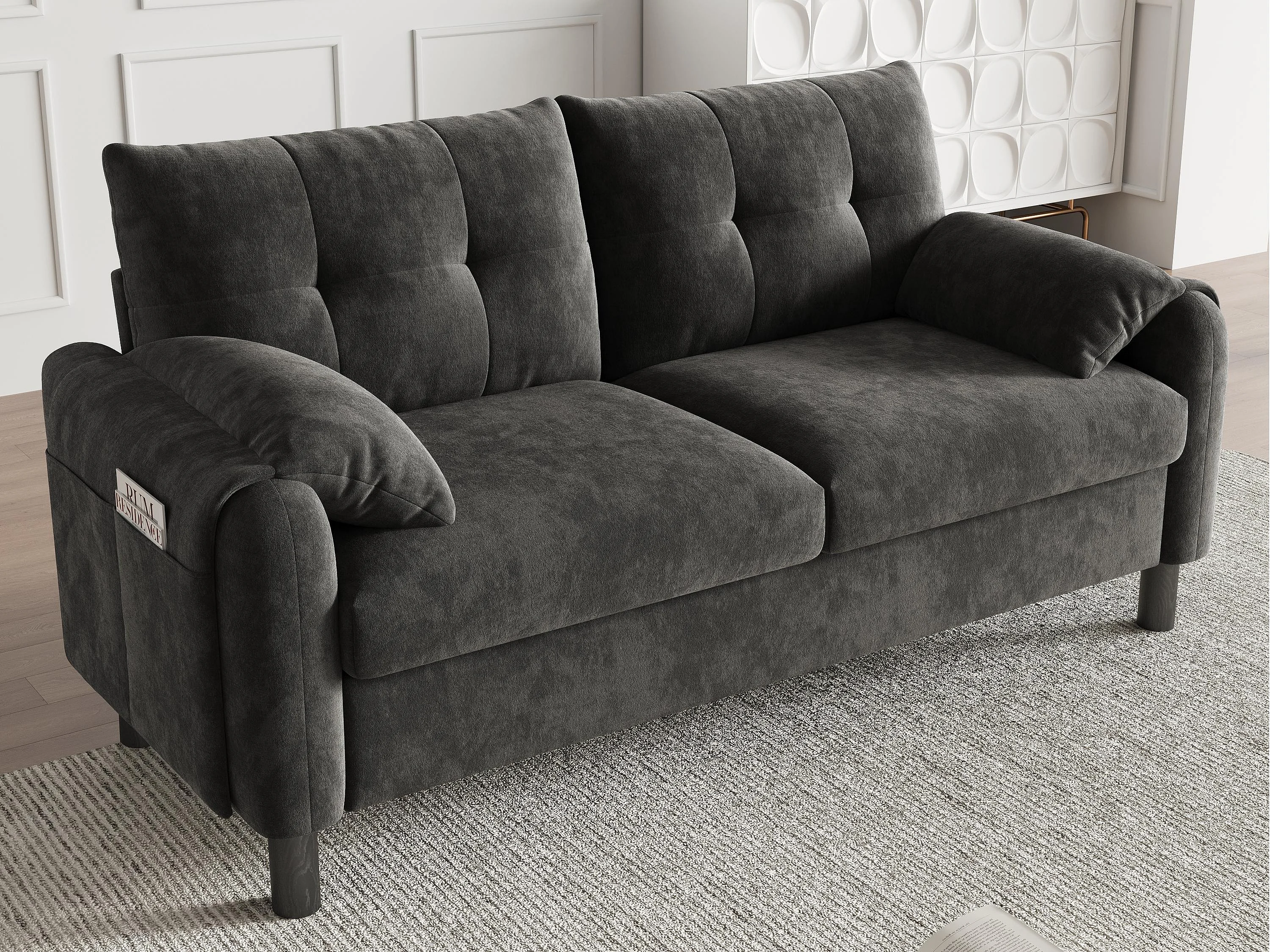 Canapé 2 places moderne 158x80x88,5cm - avec coussins épais - Tissu chenille - gris