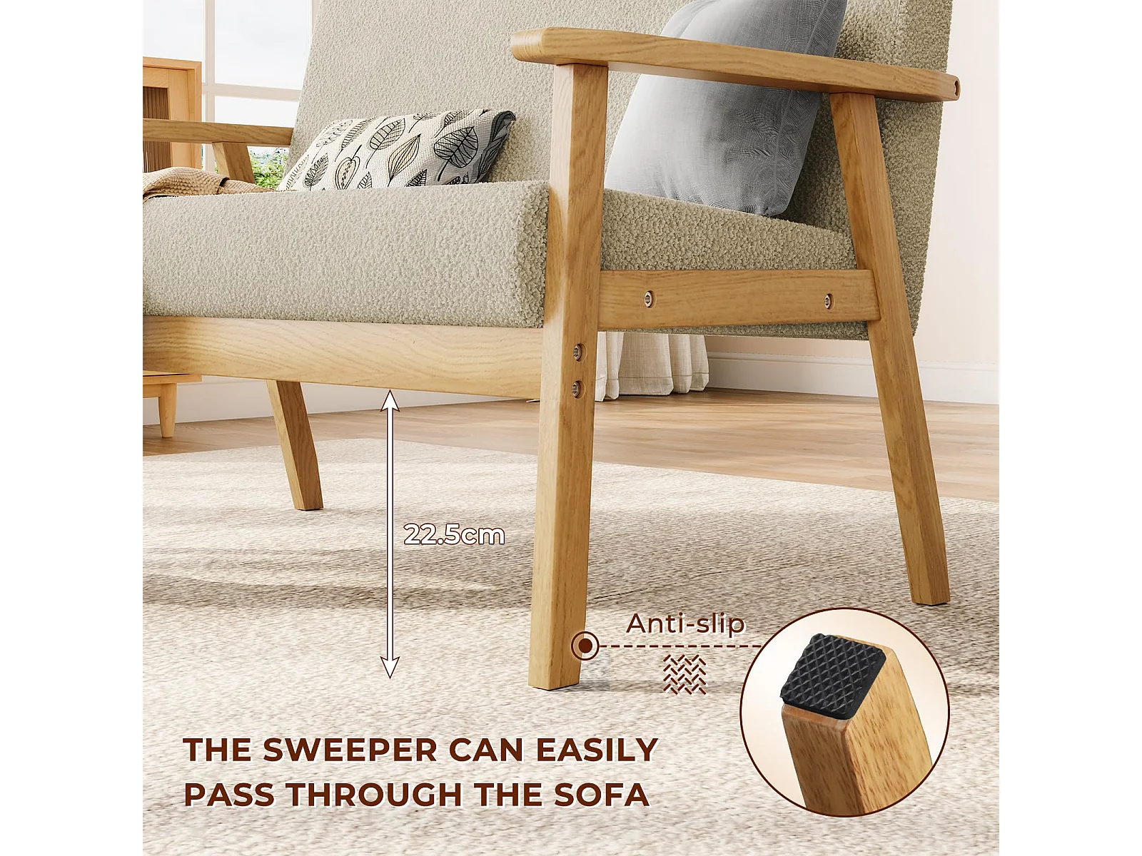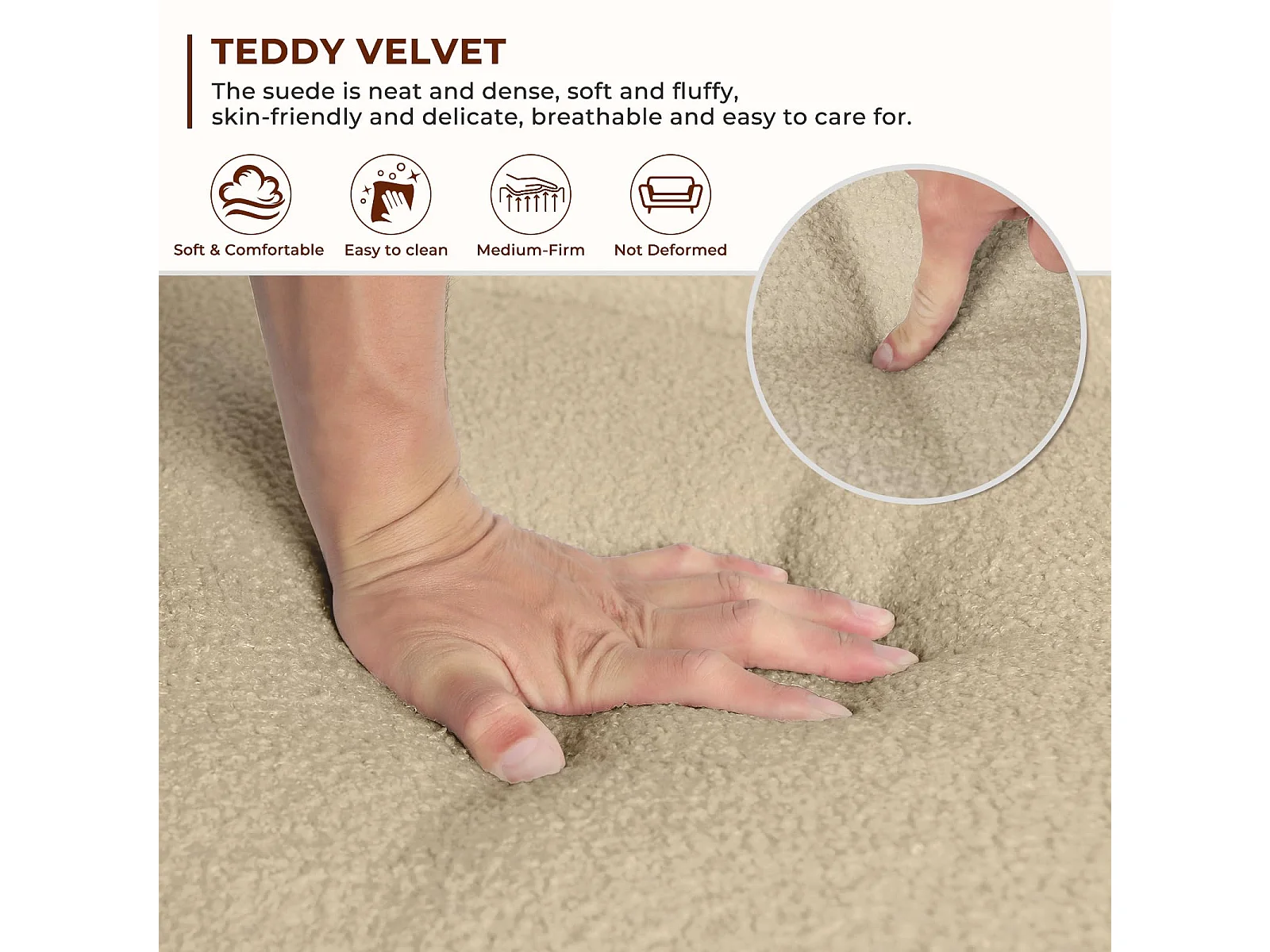 Canapé 2 Places, Moderne et scandinave, canapé Double en Velours Teddy en Bois, pour Salon, Chambre à Coucher, Bureau, 107 x 60 x 77 cm, Beige