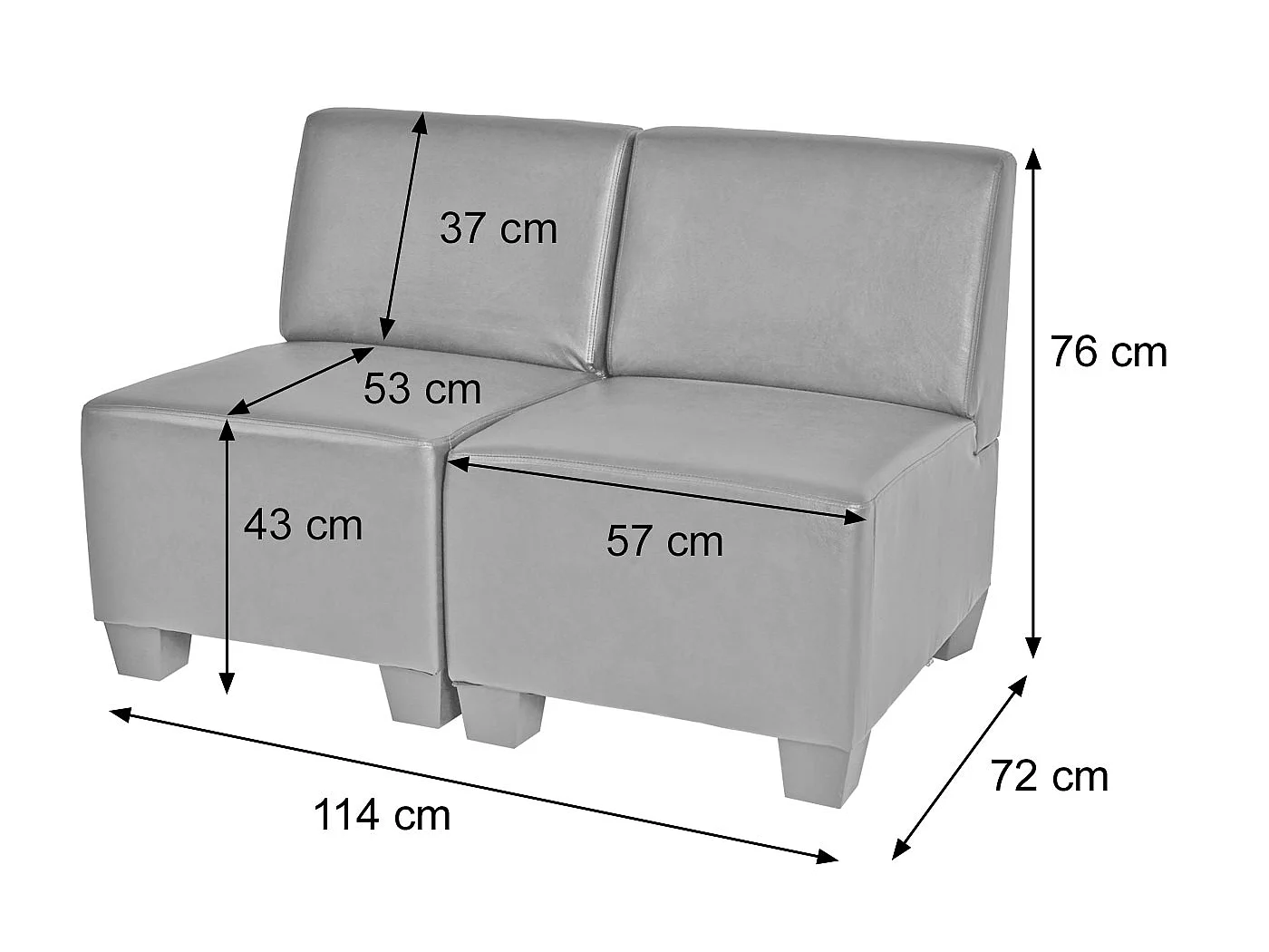 Canapé 2 places Moncalieri, gris foncé, sans accoudoirs